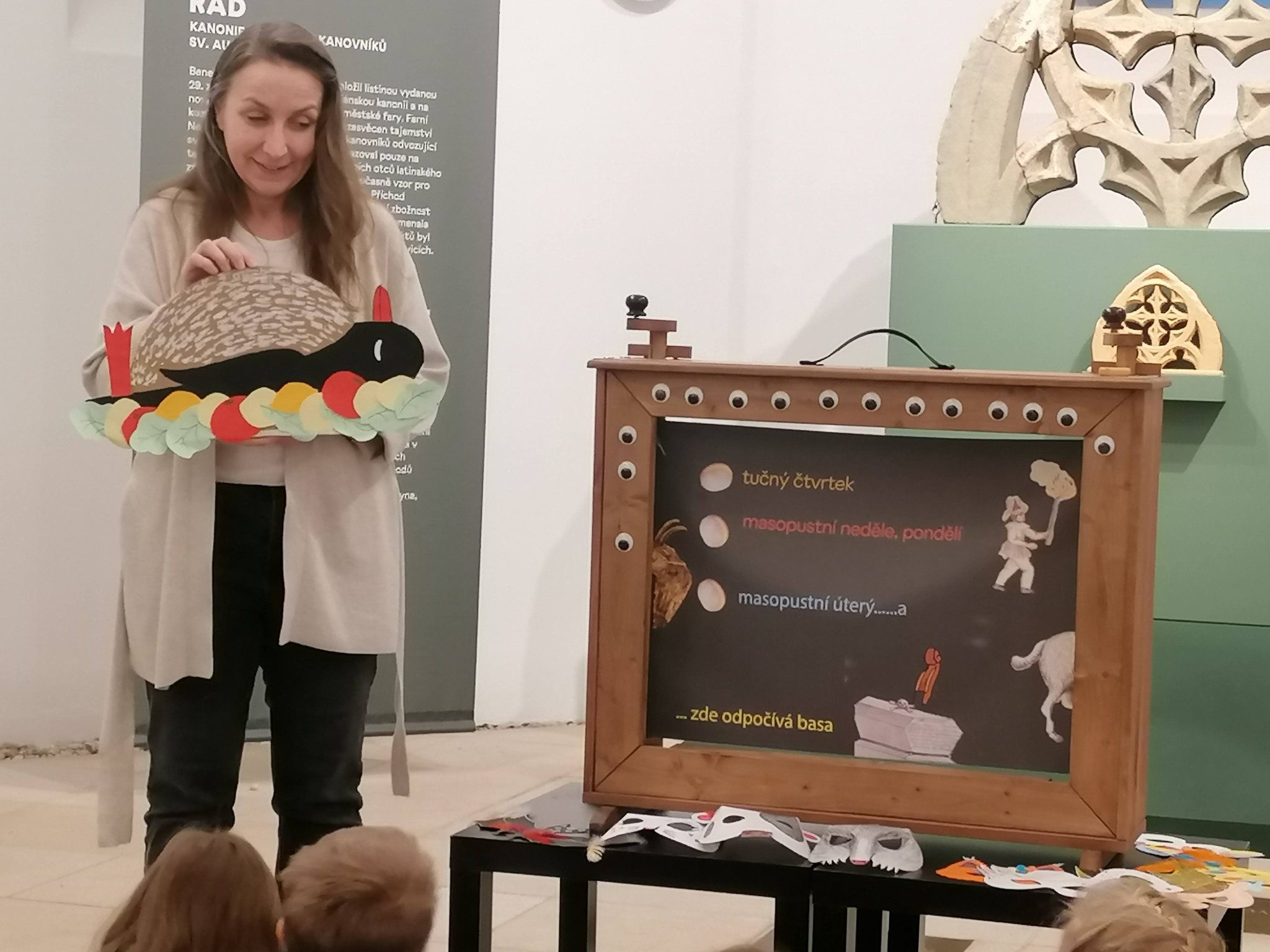 Během programu se děti hravou a srozumitelnou formou dozvěděly, co je to masopust a jak se slavil ve Fulneku v dřívějších dobách. Společně si představily tradiční hudební nástroje a masopustní masky a některé z nich si dokonce mohly samy vyzkoušet.