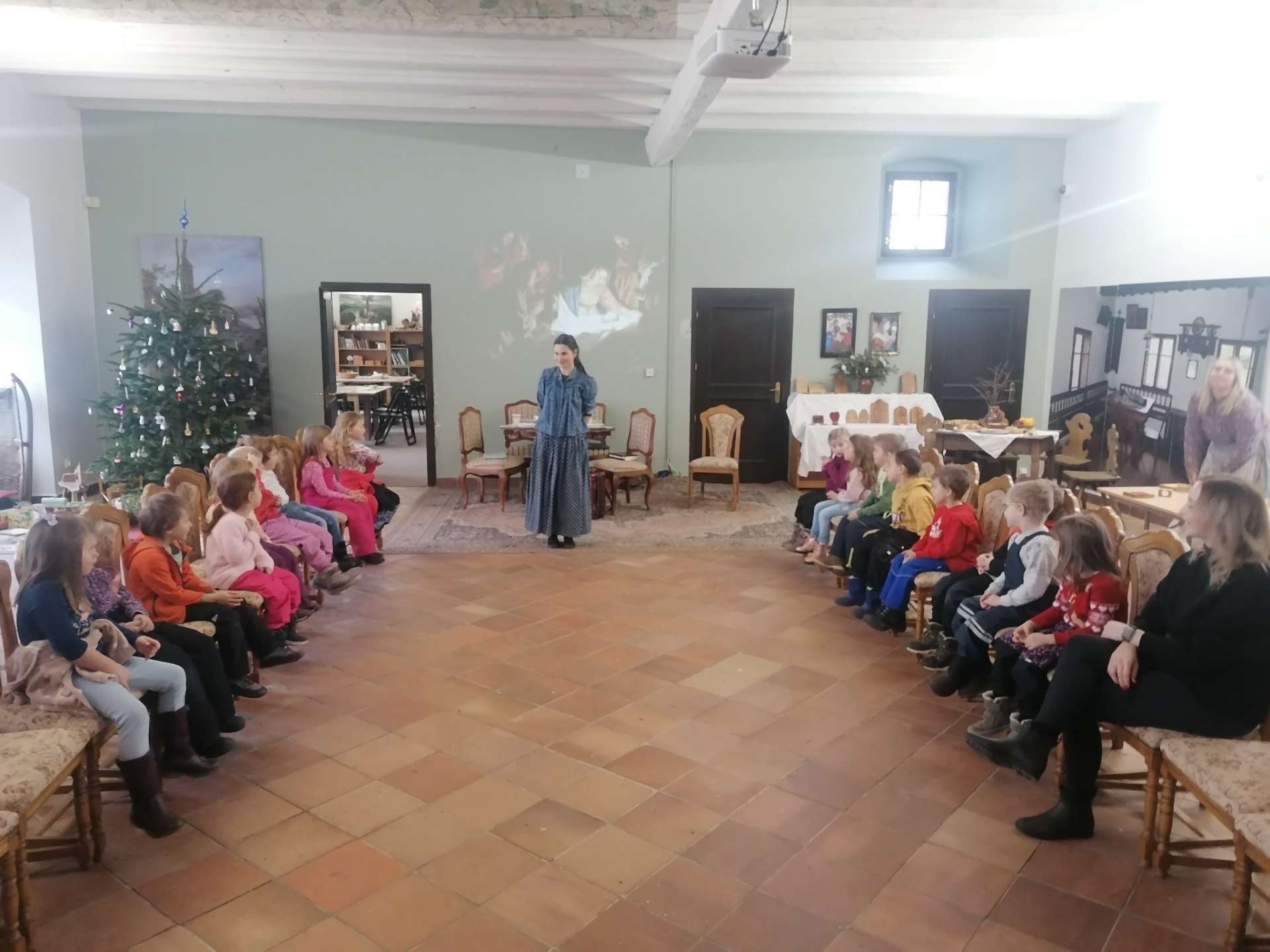 Na Žerotínském zámku v Novém Jičíně byl pro děti ze třídy Hvězdiček připraven interaktivní edukační program s názvem „Vánoce ve městě“. Program dětem poutavou formou přiblížil adventní zvyky a vánoční tradice našich prarodičů a seznámil je s tím, jak se Vánoce slavily v dřívějších dobách. Děti se dozvěděly, jak vznikaly tradiční vánoční ozdoby a samy si mohly vyzkoušet výrobu voskových ozdob, vánočních baněk i perníčků. Nechyběl ani zpěv koled s tóny akordeónu, který dotvářel příjemnou sváteční atmosféru.
