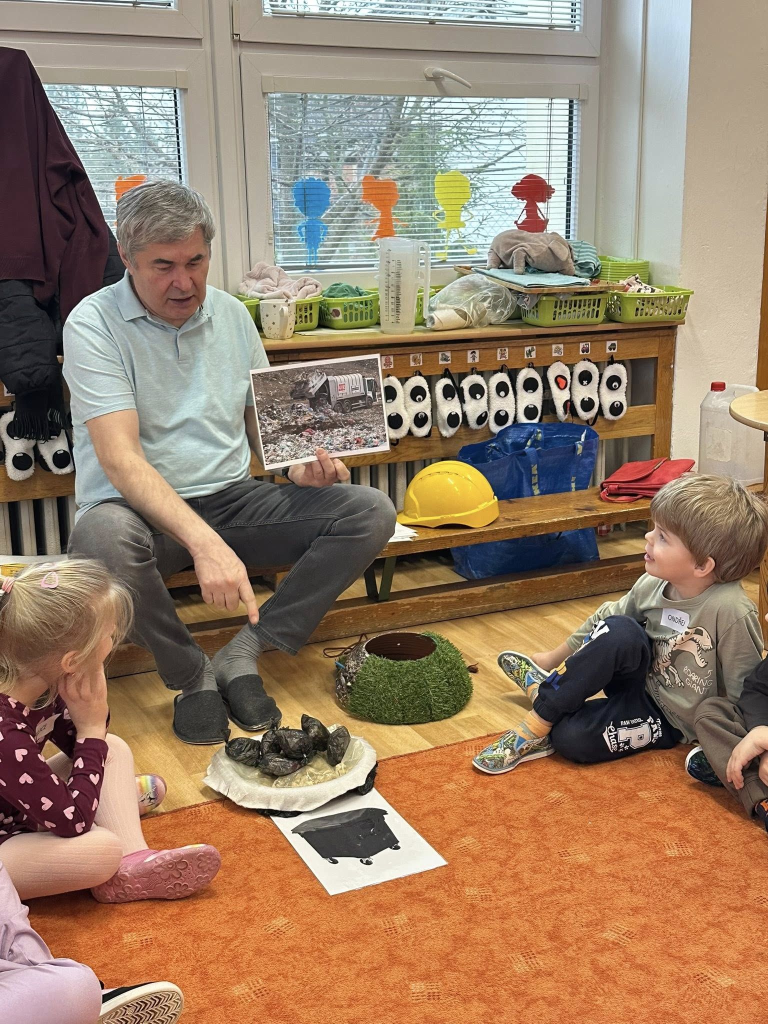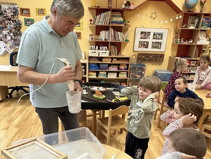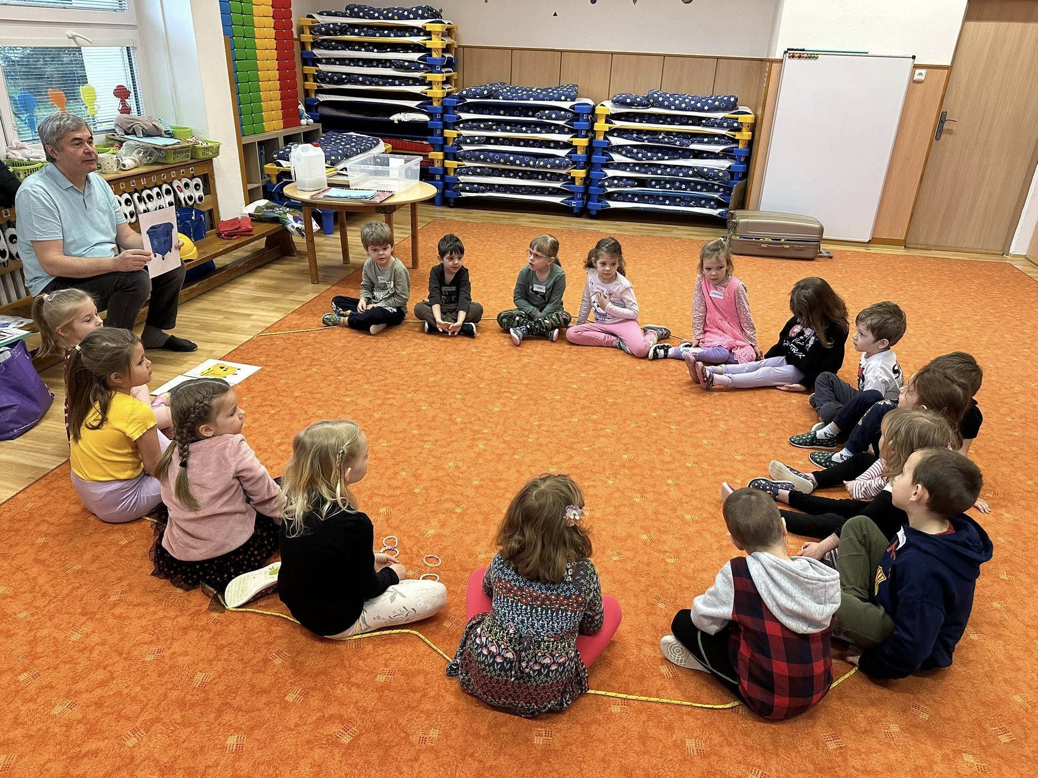 Děti ze třídy Hvězdiček se zúčastnily projektového dne v rámci programu Malá technická univerzita, kde se staly malými zpracovateli odpadů. Společně zjišťovaly, co se děje se směsným odpadem a kam po vyhození skutečně putuje. Děti si prakticky vyzkoušely založení povolené skládky a seznámily se s tím, co znamená její odvětrání a izolace a k čemu tato opatření slouží. Povídaly si také o tom, co na skládku nepatří a proč je důležité správné třídění odpadu a recyklace. Velkým přínosem byla praktická ukázka recyklace papíru, díky které si děti mohly celý proces lépe představit a samy si vyzkoušet, jak může starý papír získat nový život. Závěrem proběhla společná reflexe pedagoga a odborníka, kteří zhodnotili průběh projektového dne, použité metody i jejich přínos pro děti. Program byl pro děti velmi přínosný, názorný a podporoval jejich environmentální myšlení.