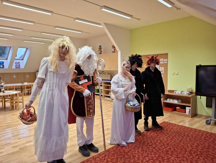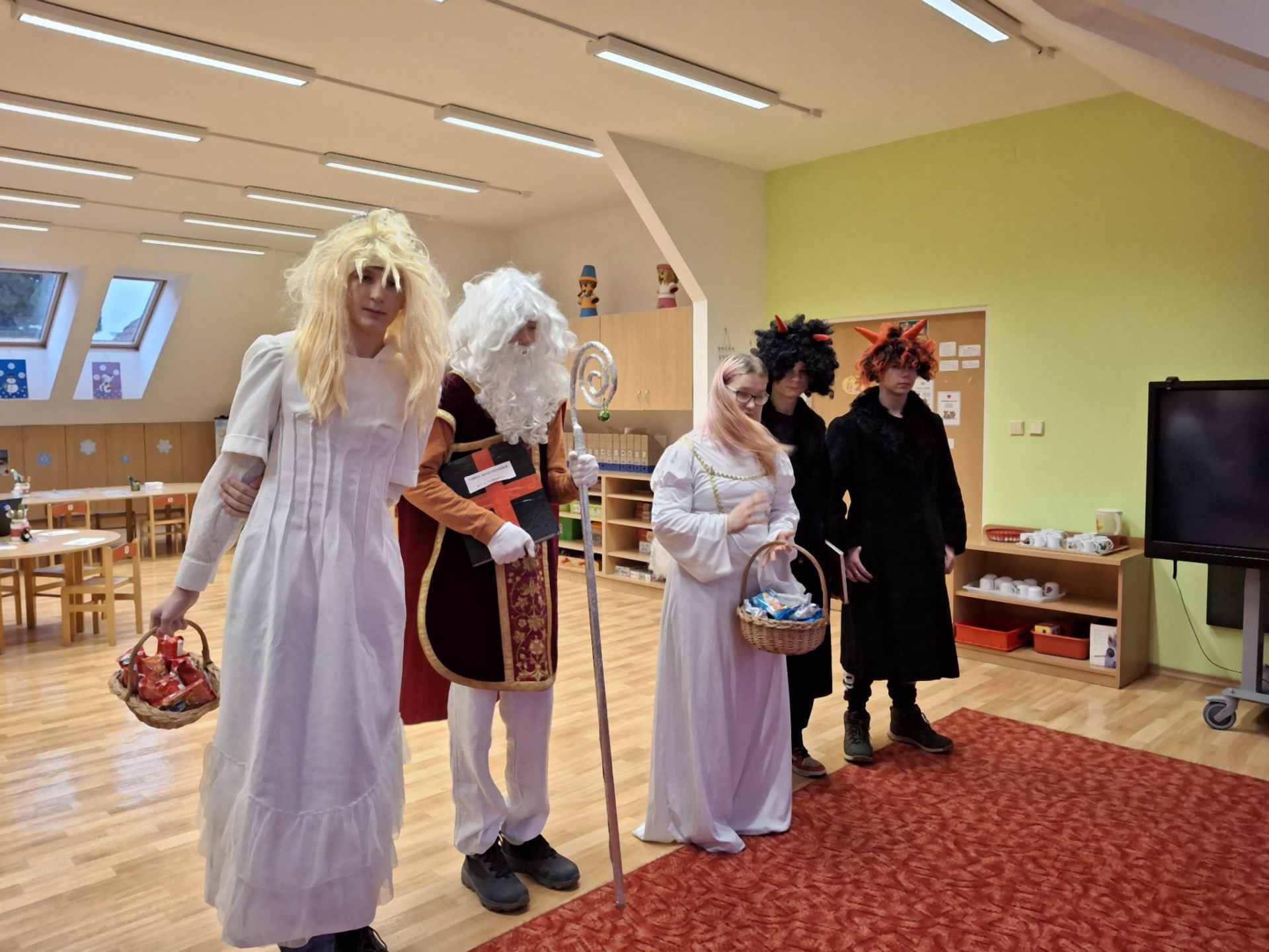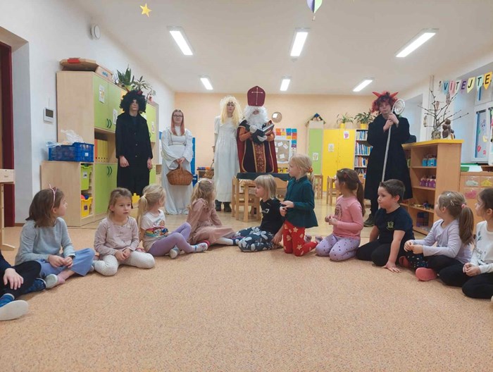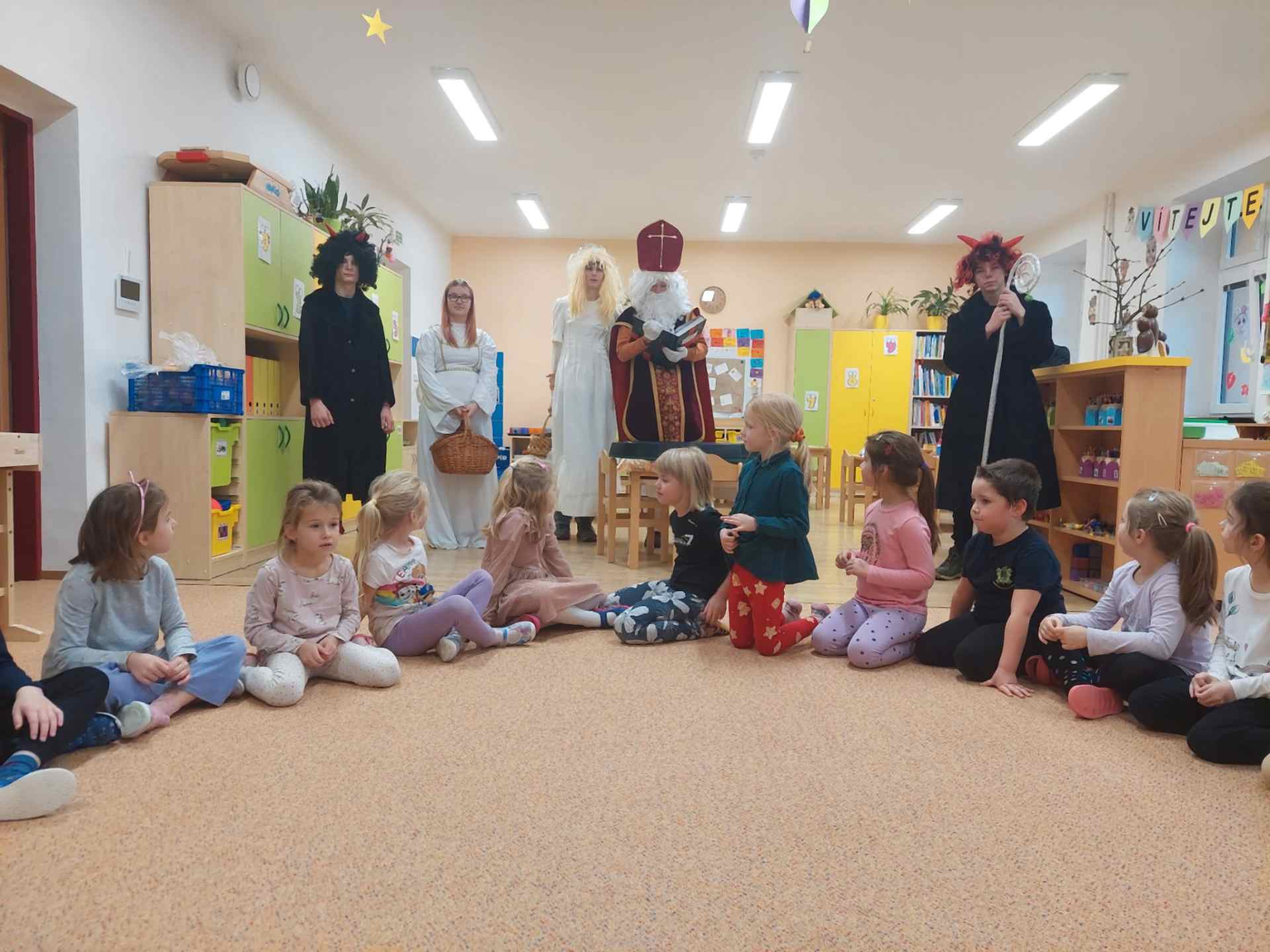 Opět po roce zavítal do naší školky Mikuláš a spolu s ním také jeho tradiční družina. Hodní andělé a trošku strašidelnější, ale přesto dobře známí čerti. Děti už od rána netrpělivě vyhlížely, kdy se tajemná návštěva objeví, a ve chvíli, kdy Mikuláš vstoupil do třídy s velkou čepicí a knihou dobrých skutků, bylo v očích všech vidět trocho i u někoho více strachu.