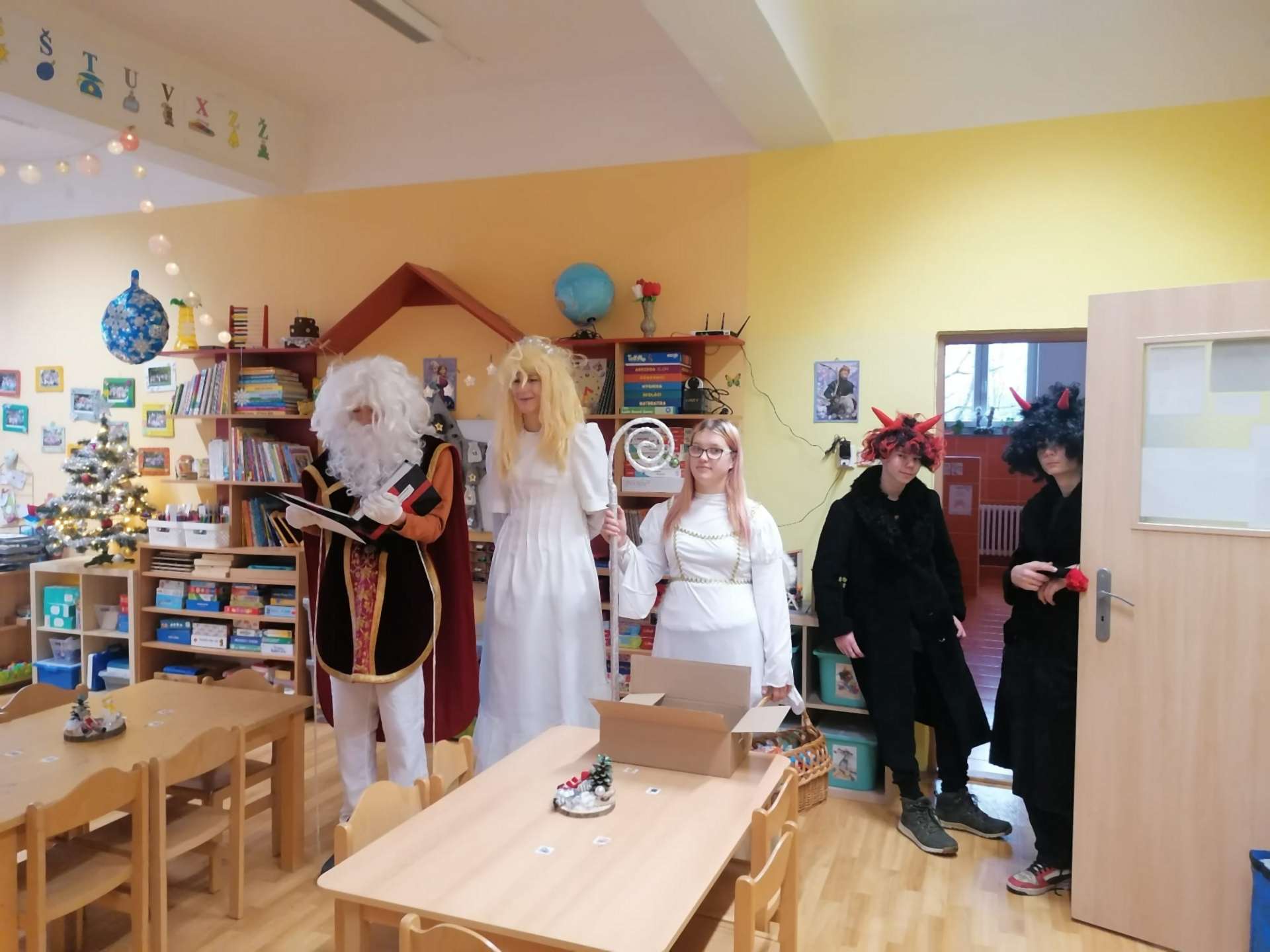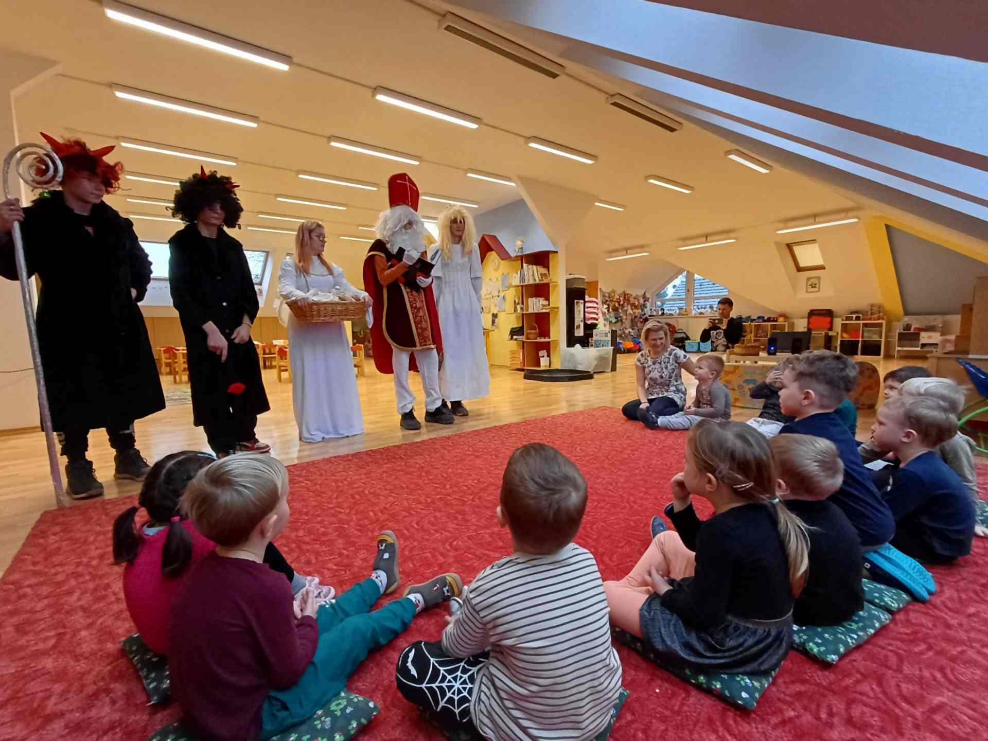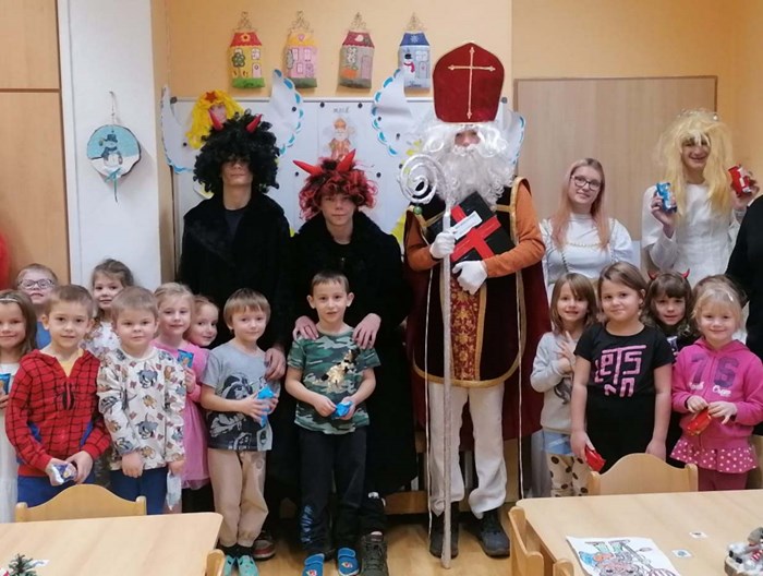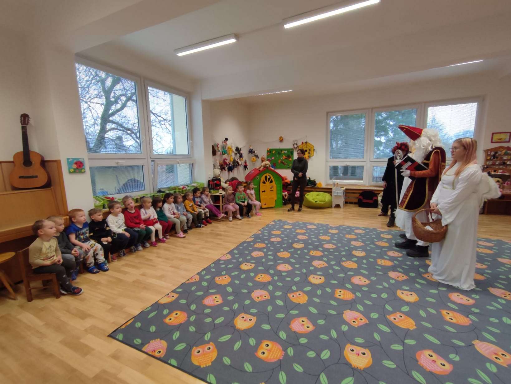 Opět po roce zavítal do naší školky Mikuláš a spolu s ním také jeho tradiční družina. Hodní andělé a trošku strašidelnější, ale přesto dobře známí čerti. Děti už od rána netrpělivě vyhlížely, kdy se tajemná návštěva objeví, a ve chvíli, kdy Mikuláš vstoupil do třídy s velkou čepicí a knihou dobrých skutků, bylo v očích všech vidět trocho i u někoho více strachu.