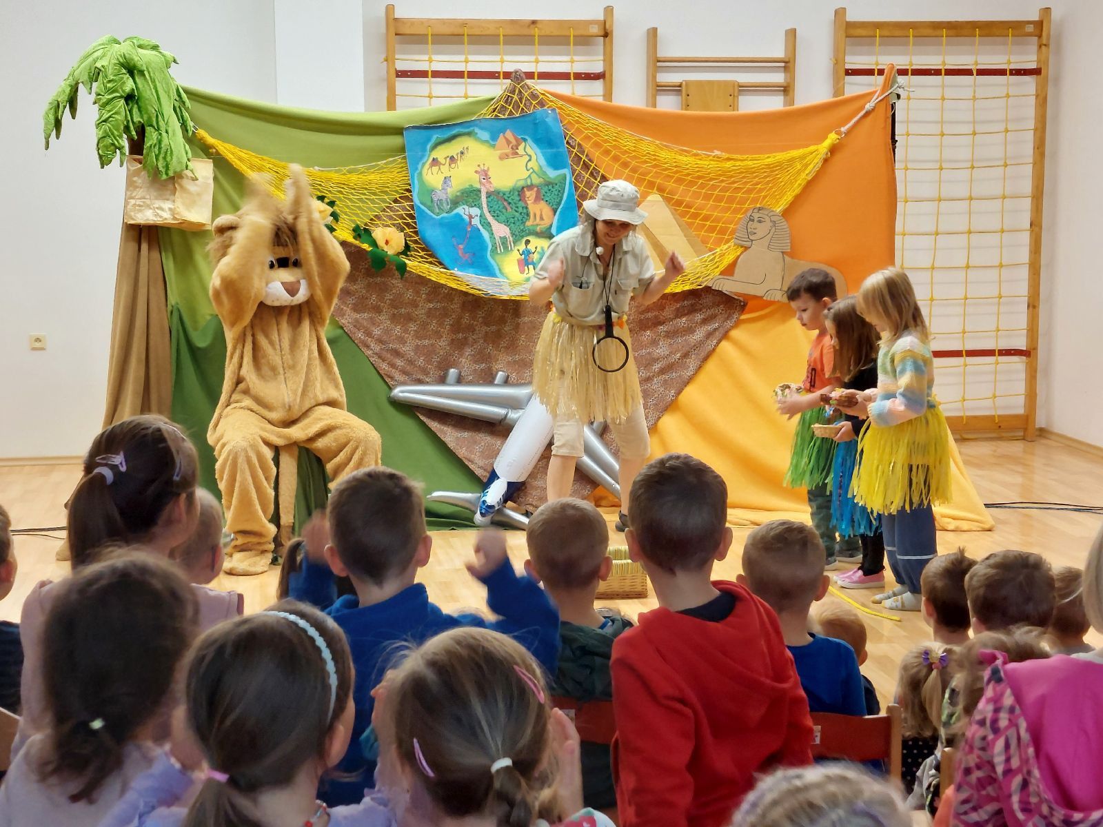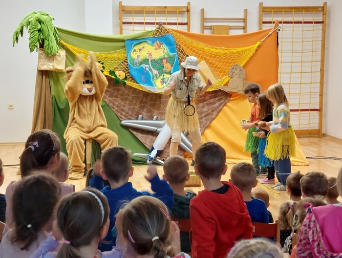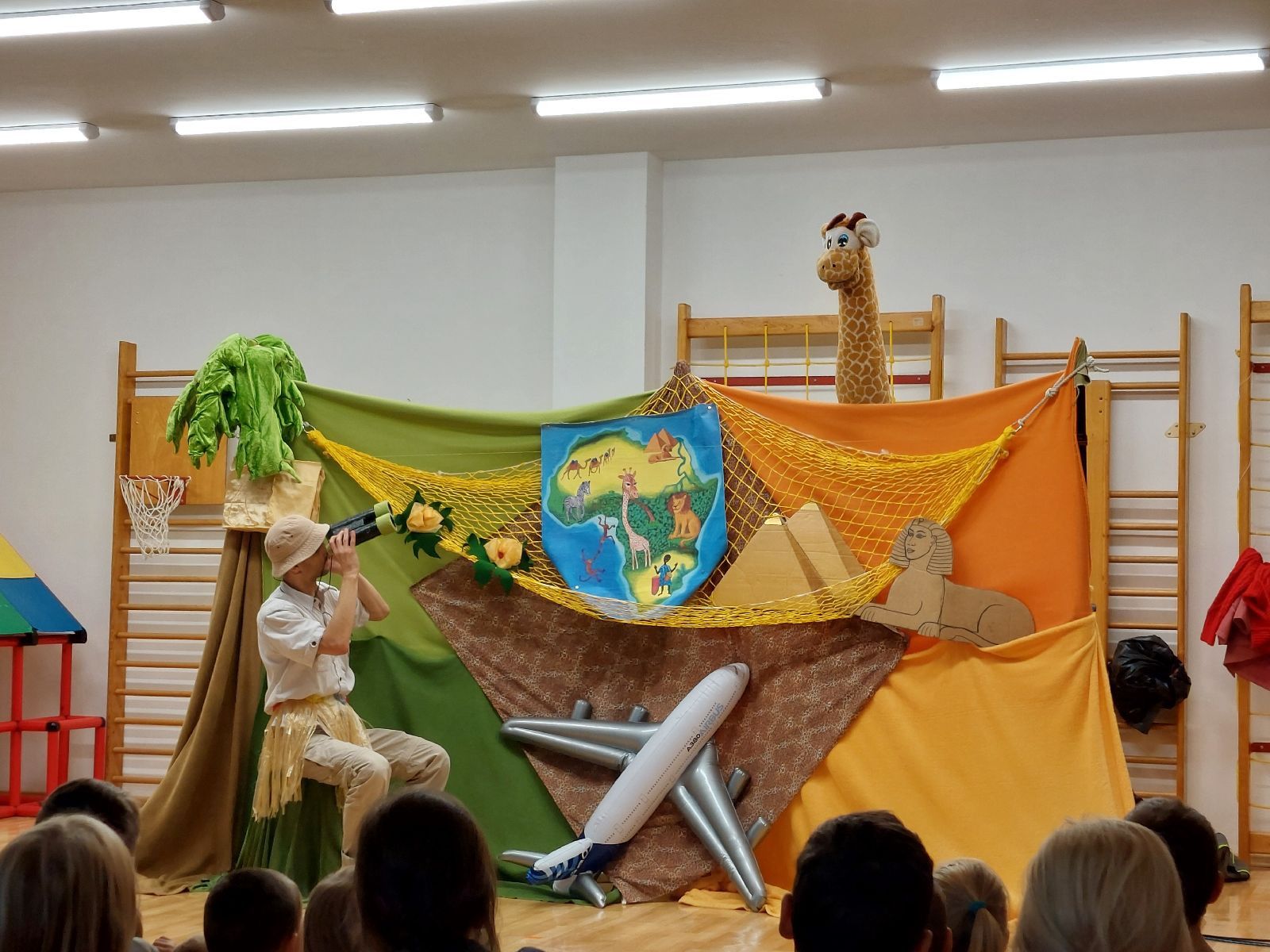 Držte si čepice, čeká nás dobrodružství v Africe. S divadlem Letadlo jsme se vypravili do afrického pralesa i na písečnou poušť. Zažili jsme legraci s lvem, žirafou i zebrou. Viděli jsme dovádět opice a tancovat domorodé černoušky a naučili jsme se rozveselit, každého, kdo je smutný. V pořádku jsme se vrátili zase k nám do suchdolské školky.