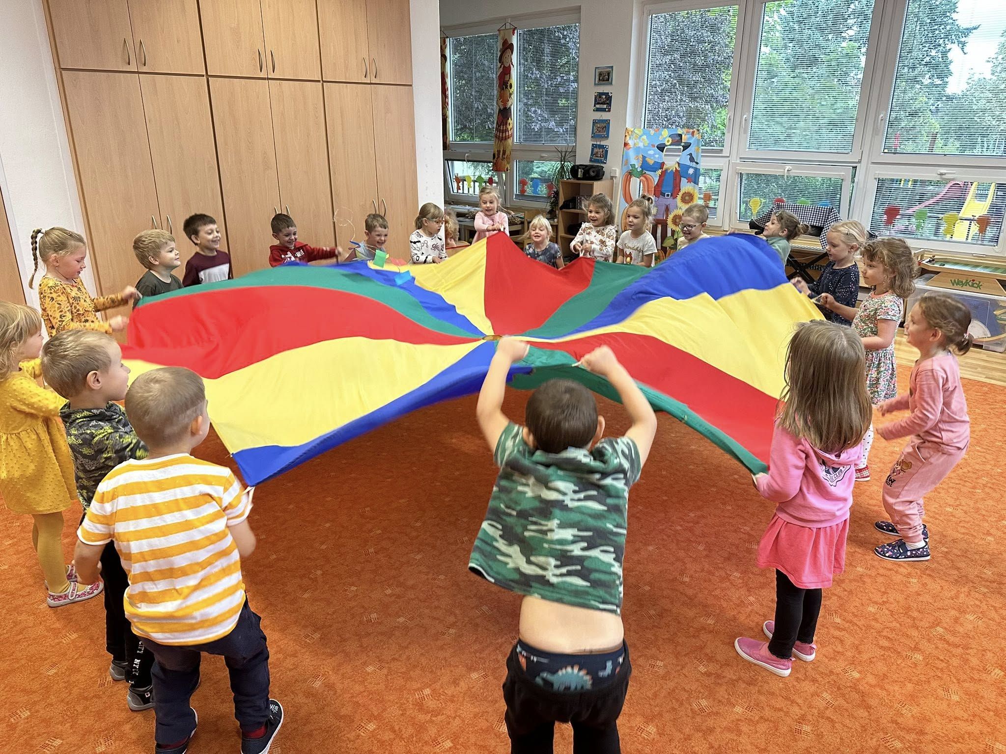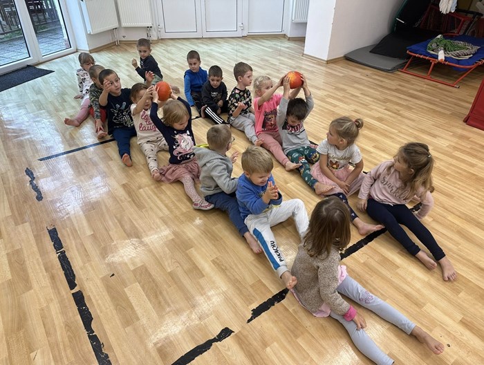 V tělocvičně jsme si pravidelně společně zacvičili, protáhli tělo a zahráli si pohybové hry. V