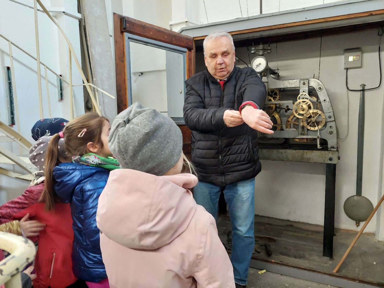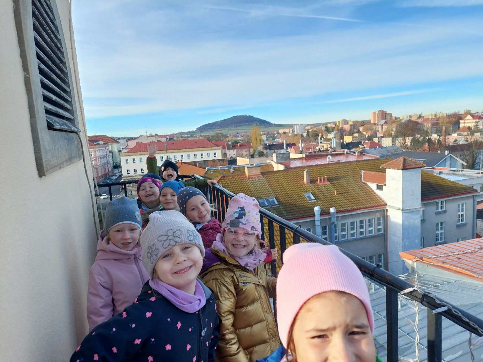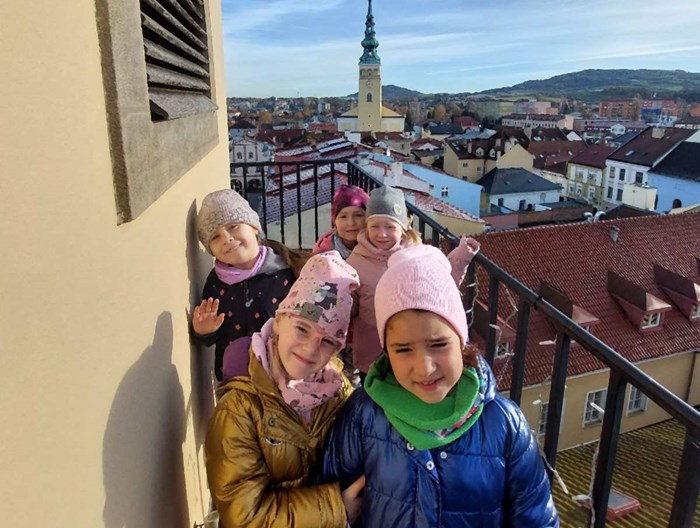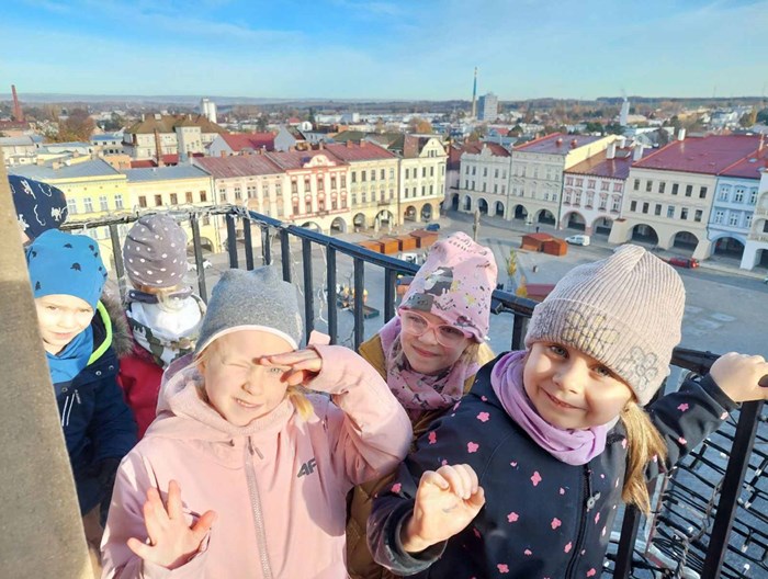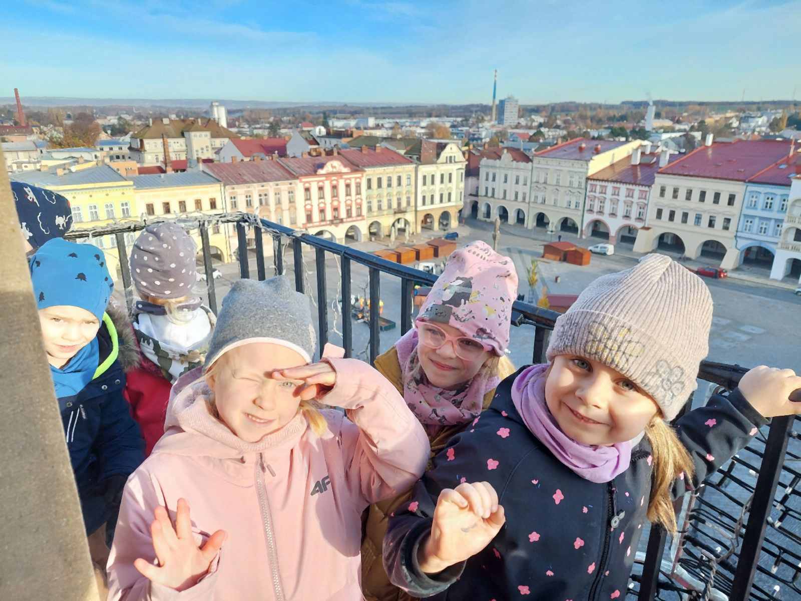 Děti ze třídy Soviček se vydaly na výlet do města Nový Jičín. Po příjezdu zamířily rovnou na radniční věž. Cesta nahoru byla dlouhá a plná schodů, ale děti to nevzdaly a statečně stoupaly až na samotný vrchol. A když tam dorazily, otevřel se jim nádherný výhled na celé město. Střechy, věžičky, náměstí i okolní kopce. Z výšky to všechno vypadalo jako z pohádky.
