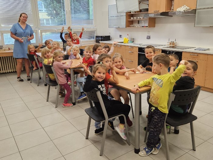 Dopoledne ve školce jsme si zpříjemnili pečením štrúdlů. Děti si do školky přinesly jablíčka a listové těsto. Ráno jsme jablíčka loupali, poté je krájeli, připravili jsme si těsta, na které jsme dali pokrájená jablíčka, cukr, skořici a někteří rozinky, vše zabalili, potřeli vajíčkem a šup s tím do trouby. Mňam, to byla dobrota, která všem chutnala tak moc, že si chodili přidávat. Děti se při tom naučily, jak zacházet se škrabkou a nožem a jak zvládnout postup přípravy. Byly moc šikovné a sladká odměna jim určitě stála za tu námahu.