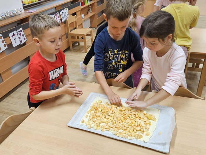 Dopoledne ve školce jsme si zpříjemnili pečením štrúdlů.
