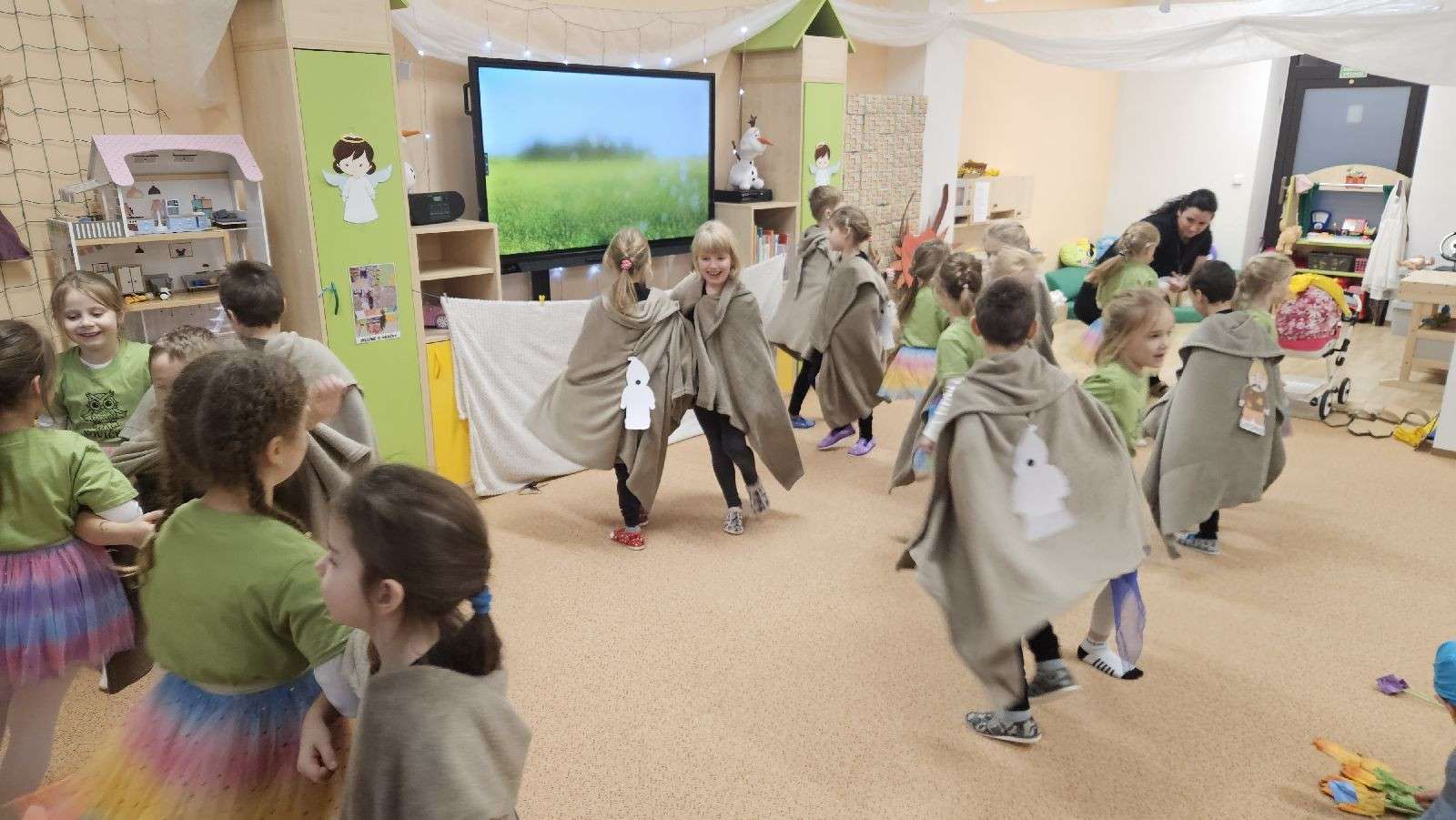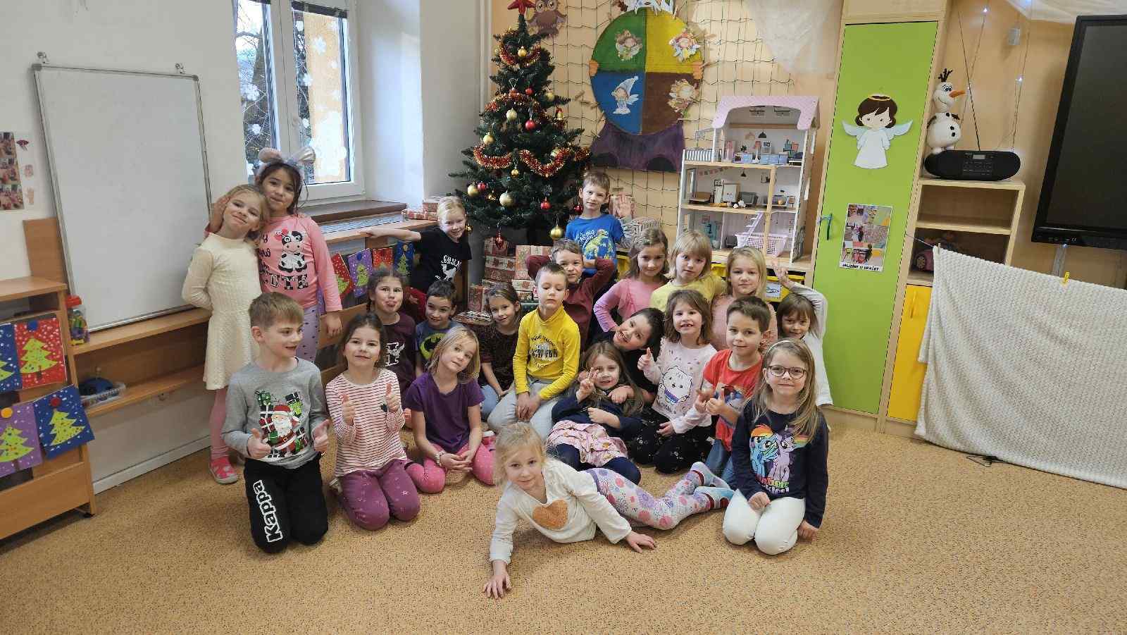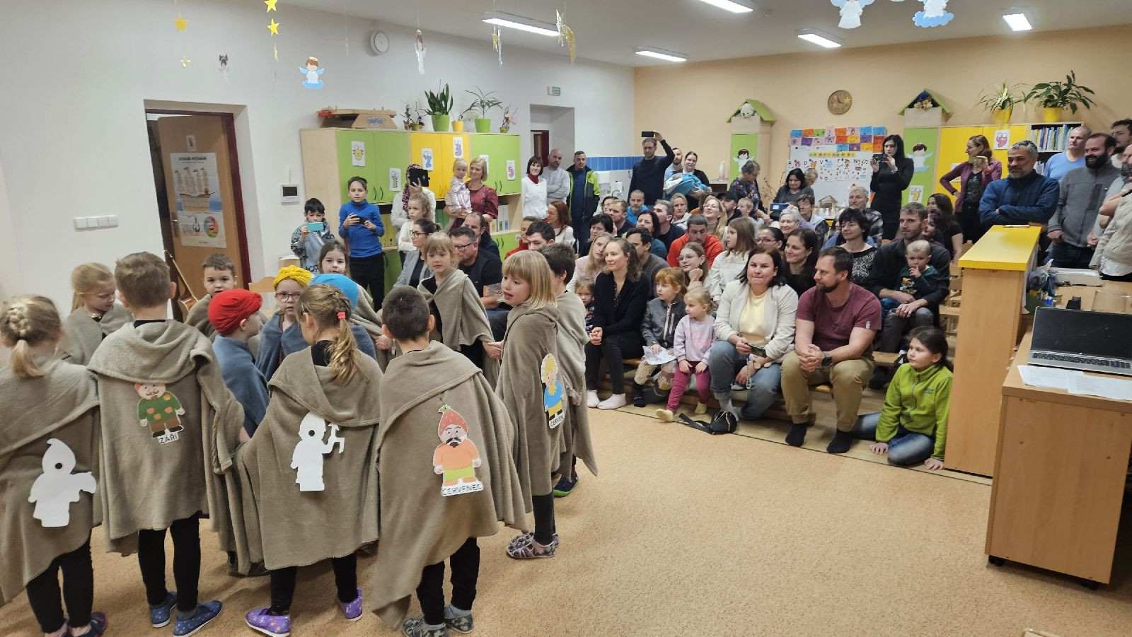 Po tomto krásném vystoupení následoval společný okamžik radosti, kdy děti spolu s rodiči zhlédly nafocenou prezentaci vánočních skřítků. Děti se do skřítků převlékly a při focení vznikly veselé a humorné kreace, které vyvolaly hromadný smích a uvolněnou atmosféru. Předaly svá přáníčka i baňky se svou skřítkovskou fotografií.