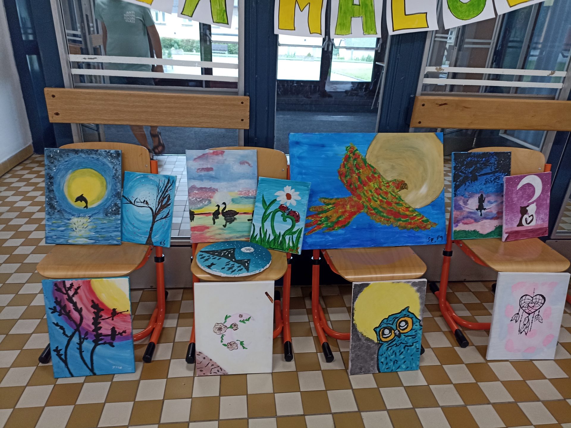 Celý rok děti ze školní družiny barvičky hodně bavily. Zaujala nás technika malby, vytvářeli jsme odstíny různých barev, malovali jsme na plátna. Akrylové barvy jsou skvělá forma pro odreagování a výtvarné i estetické cítění. Obrázky se dětem moc povedly a výstava byla perfektní zakončení našeho projektu.