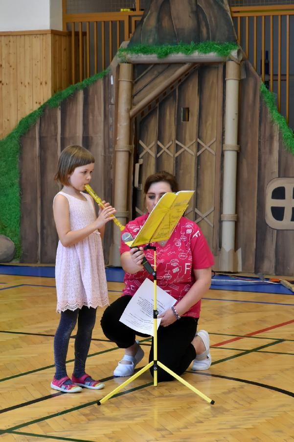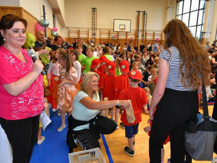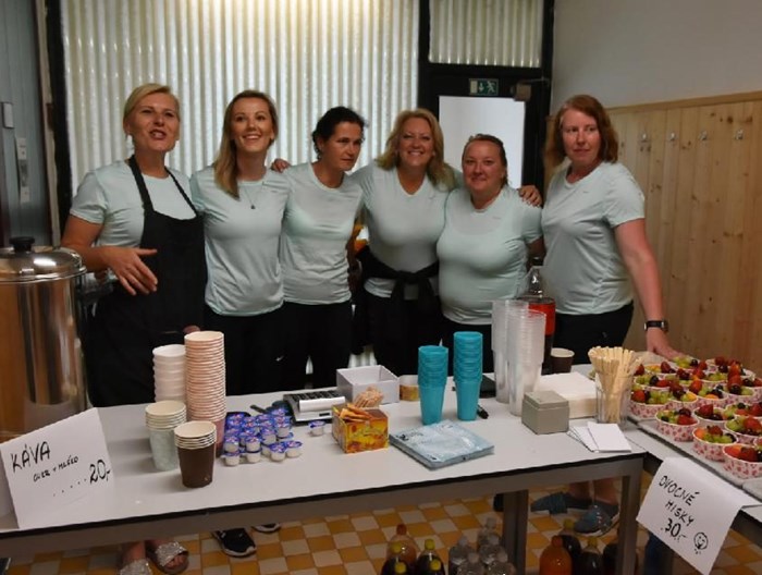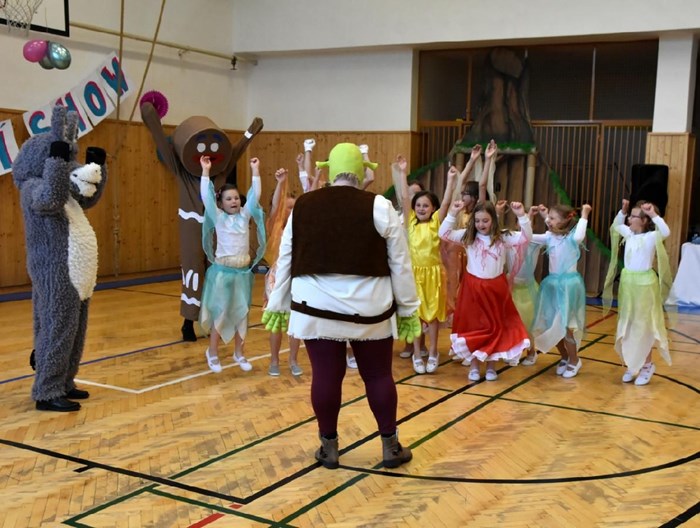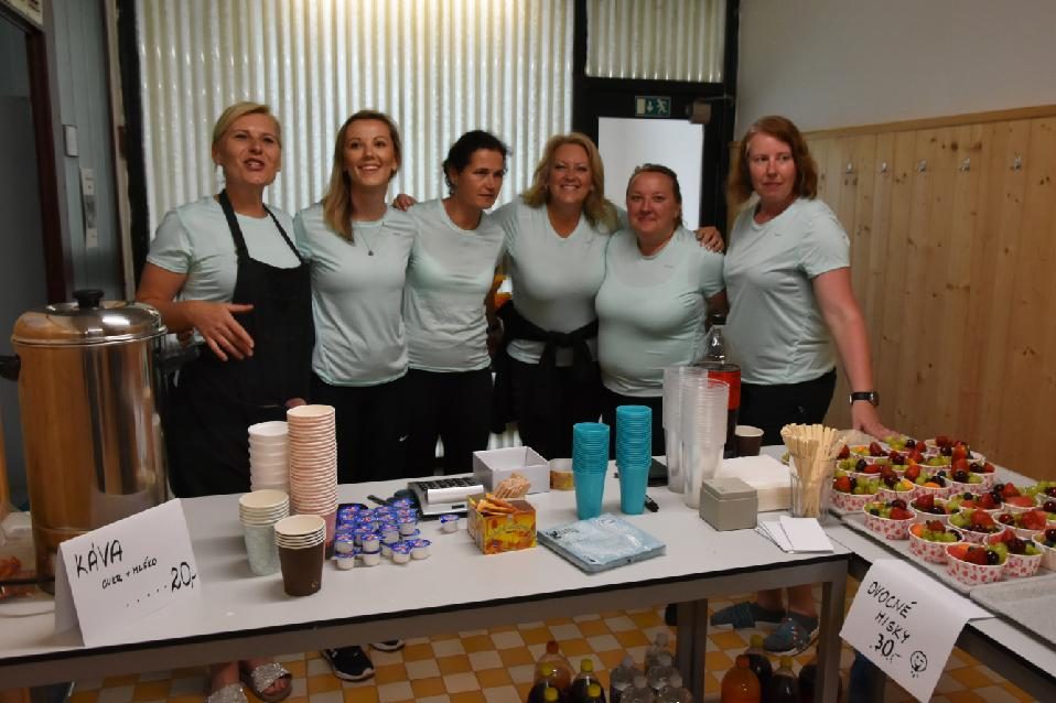 Pro všechny účinkující byl připraven moučník, který napekly naše paní kuchařky. Čekalo nás i bohaté občerstvení pro všechny: Darebné dortíky s paní Darinou Urbánkovou nám vytvořily výborné dortové nanuky-lízátka a donuty, dále pro nás nasmažila řízečky paní učitelka Katka Mariánková a osvěžující ovocné misky připravily paní učitelky s p. uč. Vendulou Večerkovou. Velké poděkování patří naší moderátorce Lence Martinkové, která s přehledem provázela celým programem. Děkujeme všem kolegyním, které nám při této akci pomáhaly, je to prostě náš super tým!