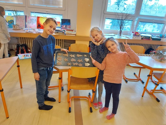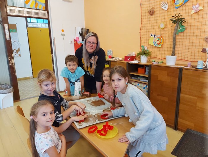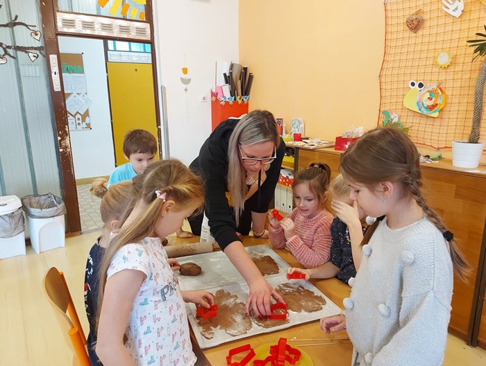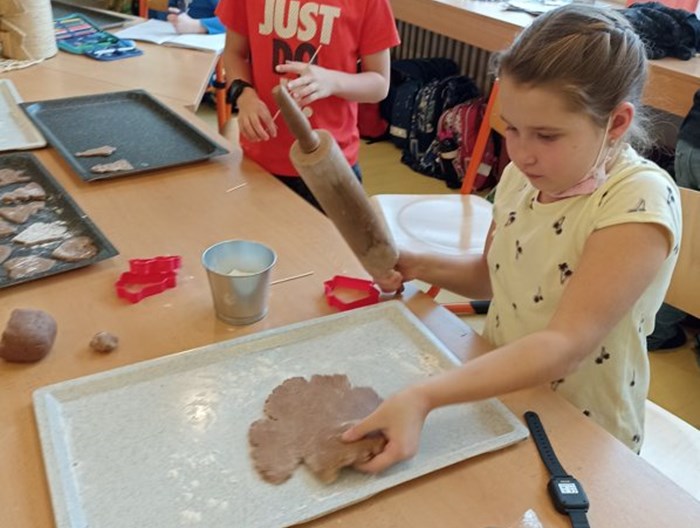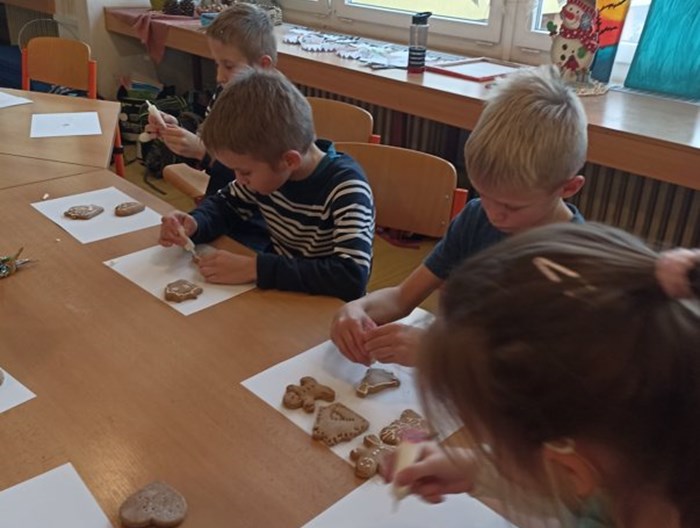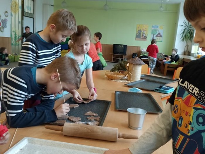 Z připraveného těsta děti pilně vykrajovaly zvonečky, stromečky, domečky, hvězdičky a další rozmanité tvary. Zdobení šlo některým dětem samo od ruky a ukázalo se, že nezdobí poprvé. Ale i ti méně zruční zapojili fantazii a vznikala krásná díla. Aktivity v kuchyni patří k oblíbeným činnostem dětí, proto si i pečení perníčků moc užily. Na závěr proběhla malá ochutnávka.
