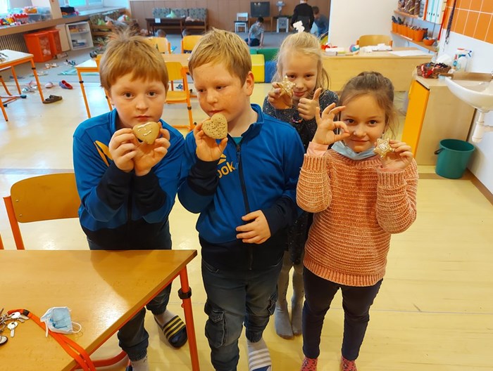 K adventní době neodmyslitelně patří pečení perníčků, a proto jsme se s dětmi pustili do práce. Všechny děti se moc těšily a hned po obědě se proměnily v malé cukráře a pekaře.