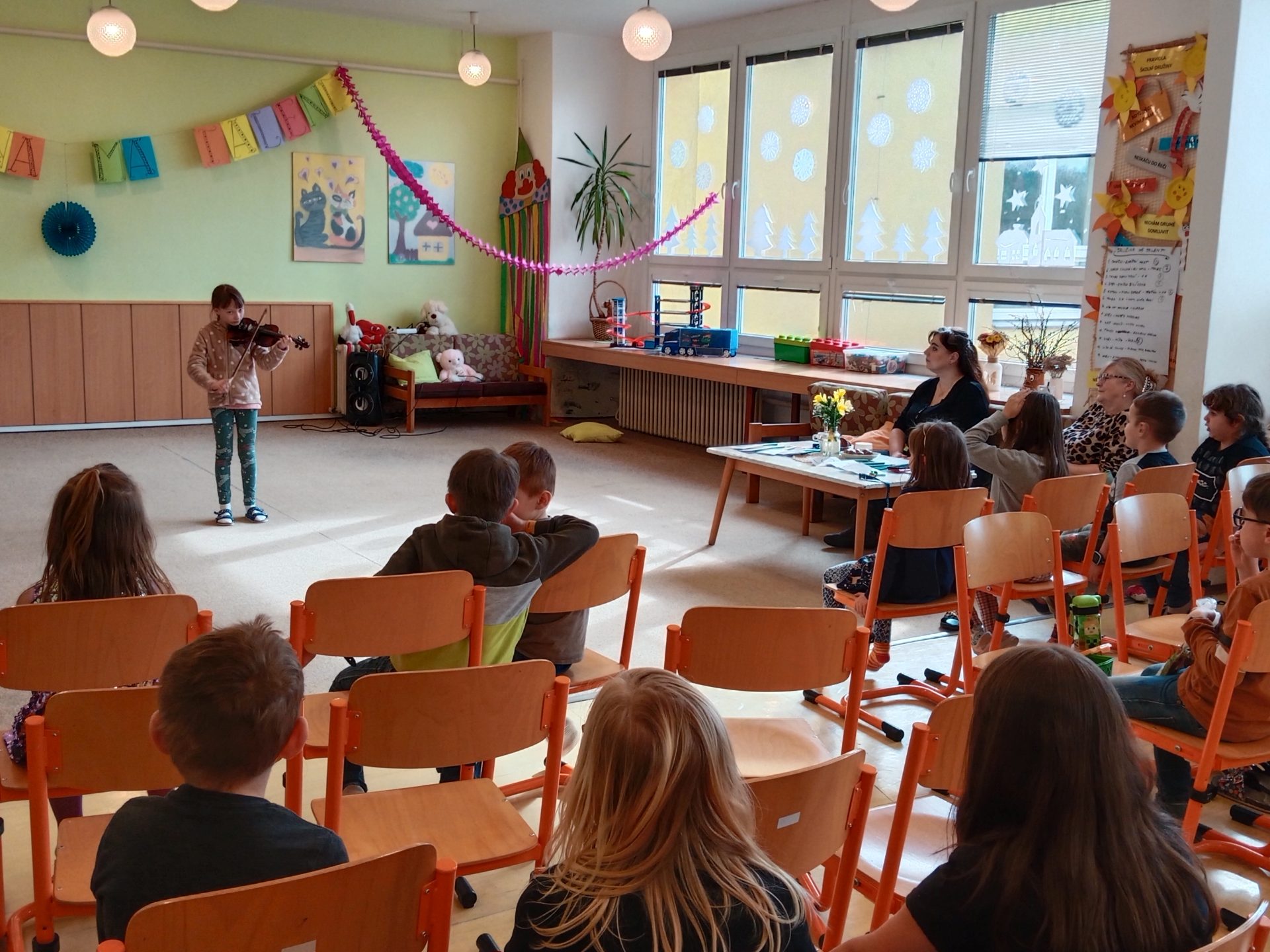 V pondělí 6. 3. 2023 jsme ve školní družině I. a II. pořádali soutěž „Družina má talent“. Za skvělé atmosféry nám děti předvedly svá vystoupení: tanec, zpěv, povídání o vesmíru, hru na housle. Naše děti mají opravdu talent, odvahu a cit pro hudbu. Vybrat jednoho nejlepšího bylo pro nás, paní vychovatelky, opravdu těžké. Proto jsme si pozvaly hvězdnou porotu. Tímto moc děkujeme p. Mgr. Lence Martinkové a Mgr. Janě Šlapkové za skvělé bodování a nestranný pohled na naše talenty. Byli jste skvělí! Nakoukněte pod pokličku dění. Parta nadšených talentů.