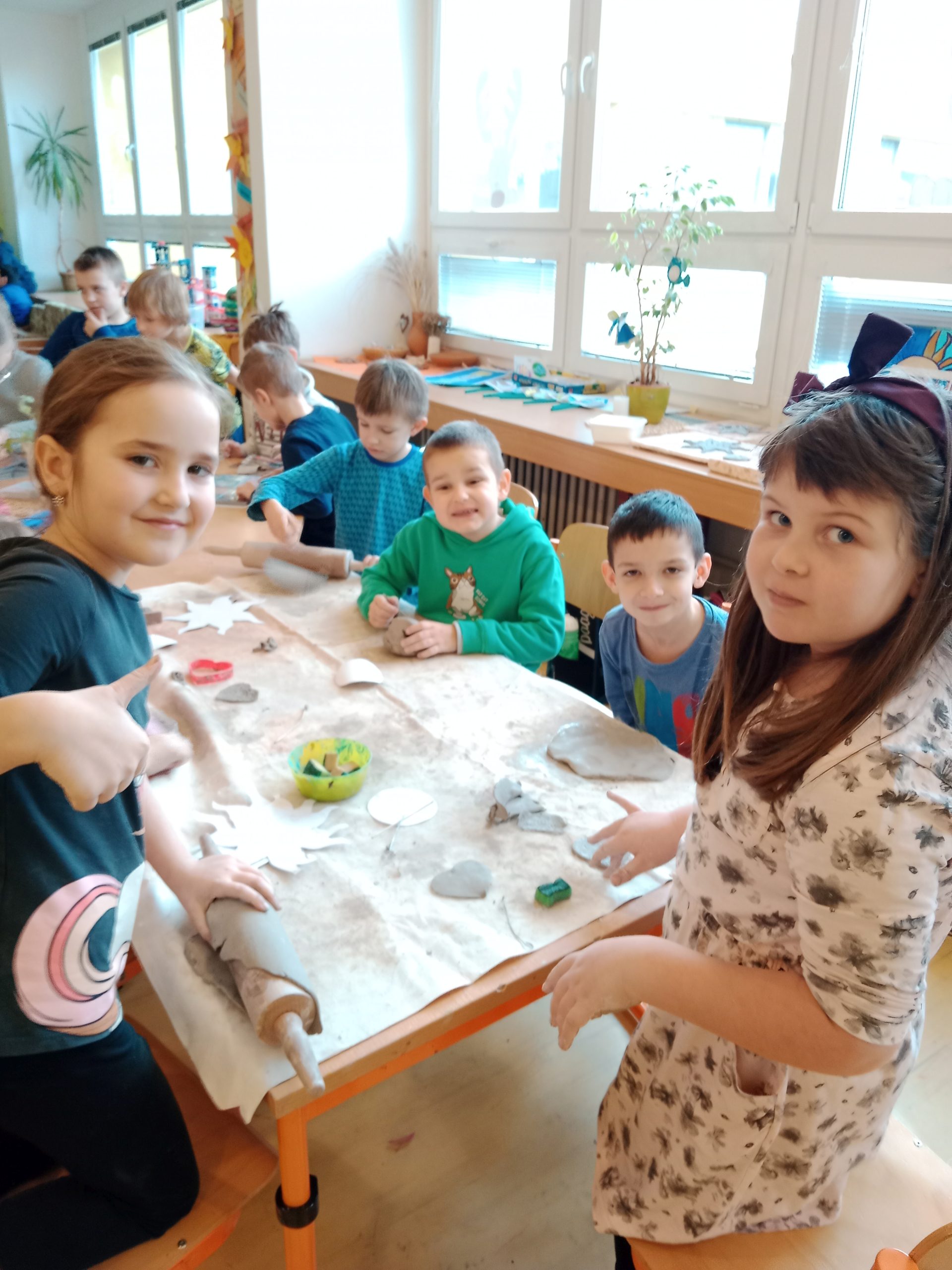 Celý leden a únor jsme netrpělivě vyhlíželi sněhovou nadílku. Bohužel, sněhu bylo málo, a tak jsme si čas krátili různými aktivitami. Děti pracovaly se suchými pastely nebo pro změnu tvořily s keramickou hlínou, také se orientovaly ve čtvercové síti. Na koberci všichni drobně soutěžili a sportovali, strečink při hudbě nesměl chybět. Stavěli hřiště pro POKEMONY a doplňovali pracovní listy.