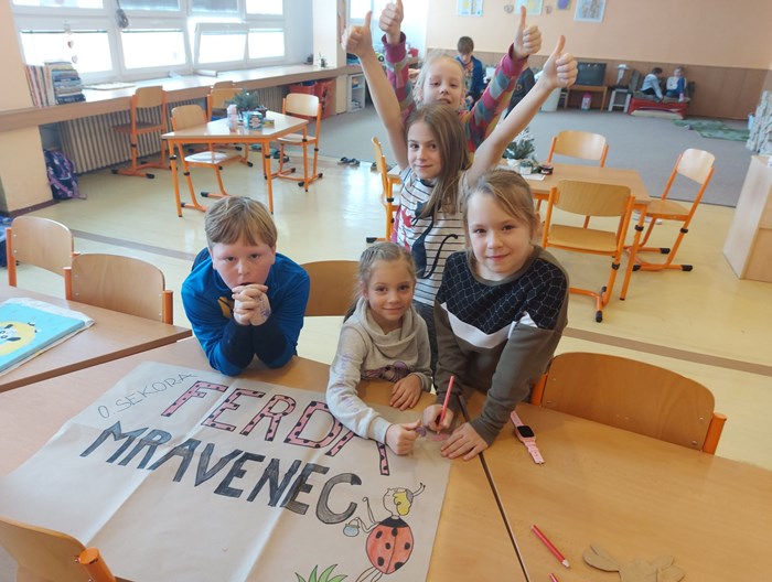 K pravidelným činnostem ve školní družině patří četba. V tomto období jsme si s dětmi vybrali knihu „Ferda Mravenec“ od Ondřeje Sekory. Četbou pohádek, povídek, příběhů společně rozvíjíme vyjadřovací schopnosti, pozornost, paměť, představivost a fantazii. Výtvarnou činnost s Ferdou jsme ukončili společnou nástěnkou.