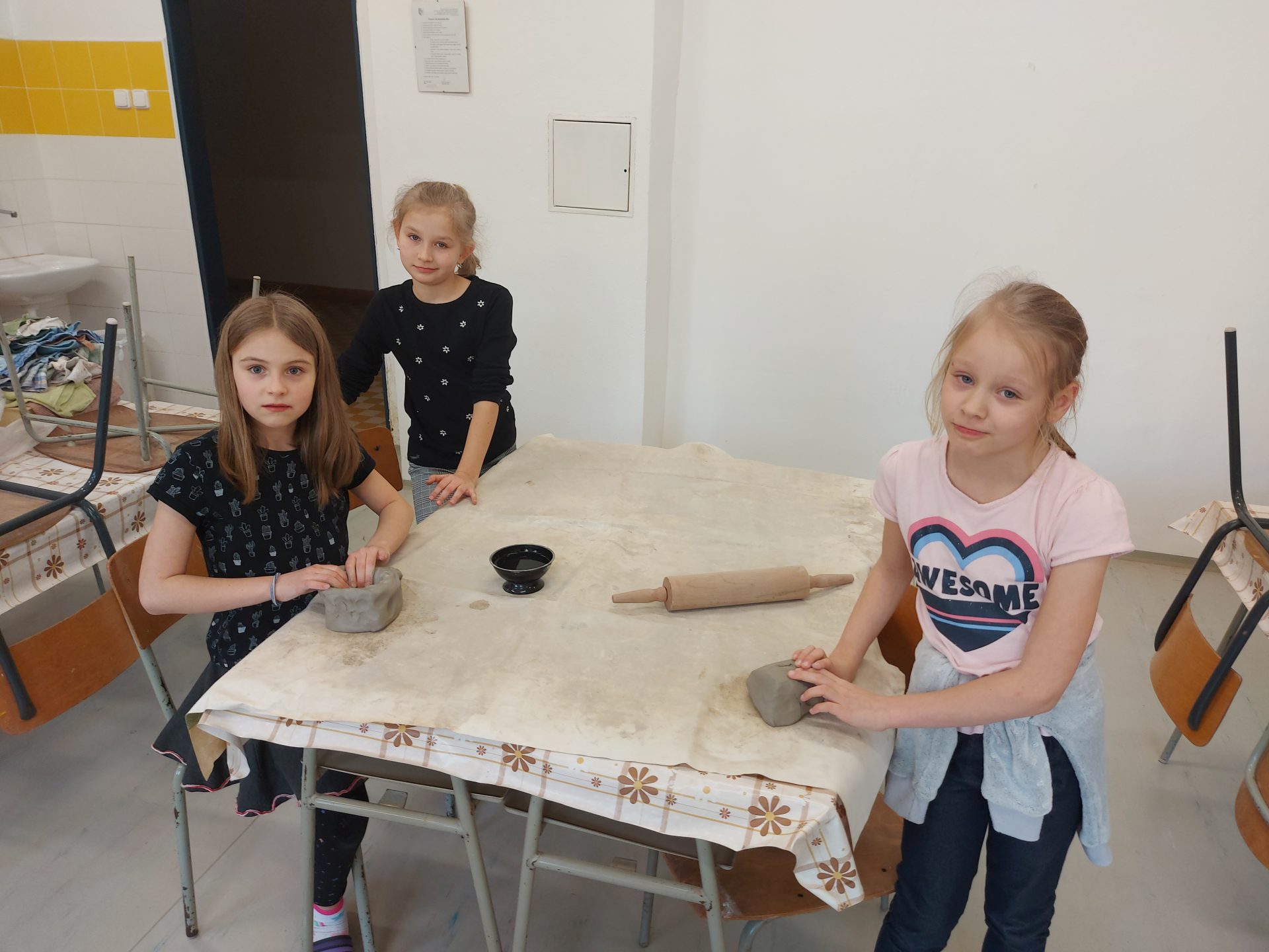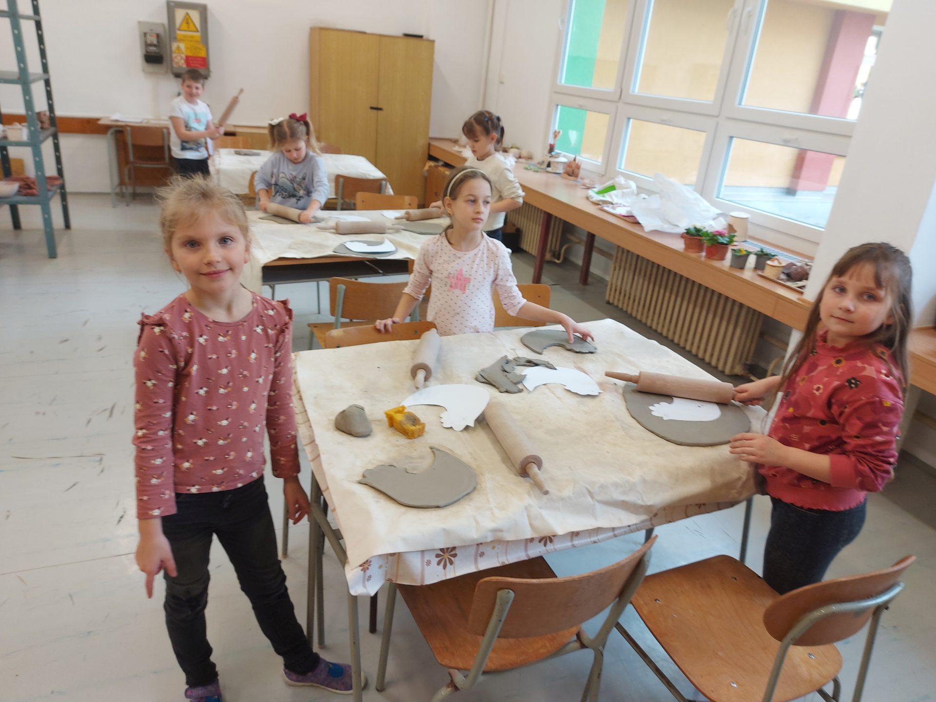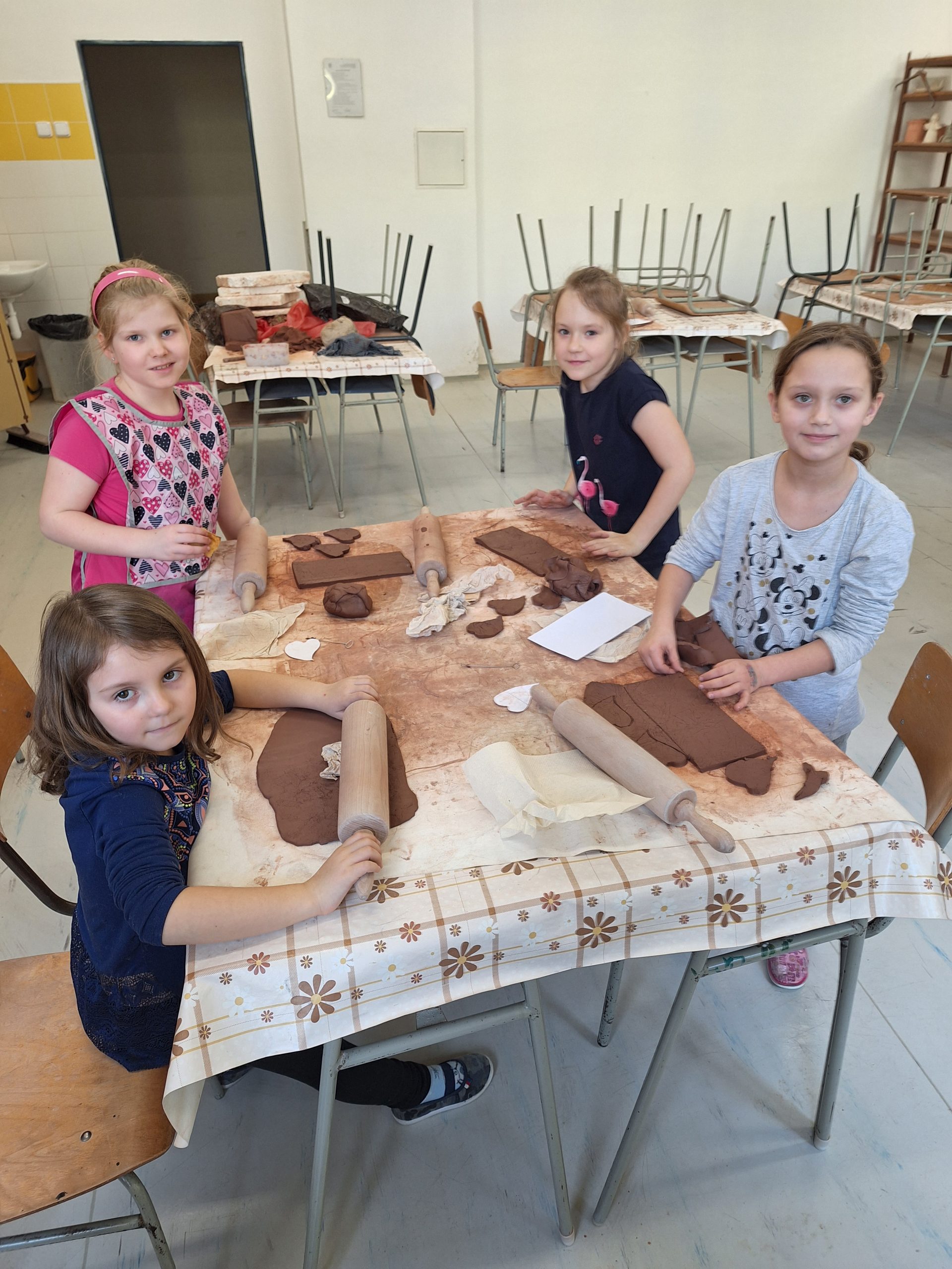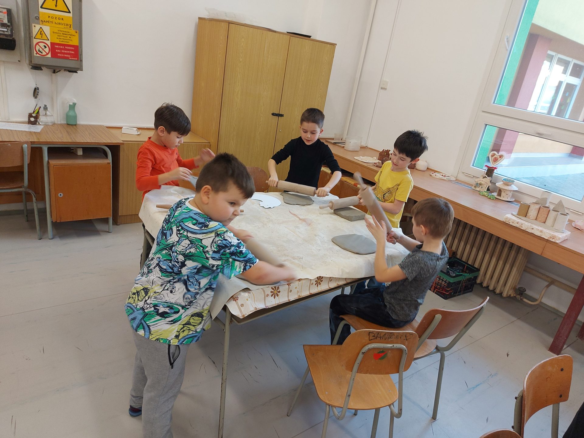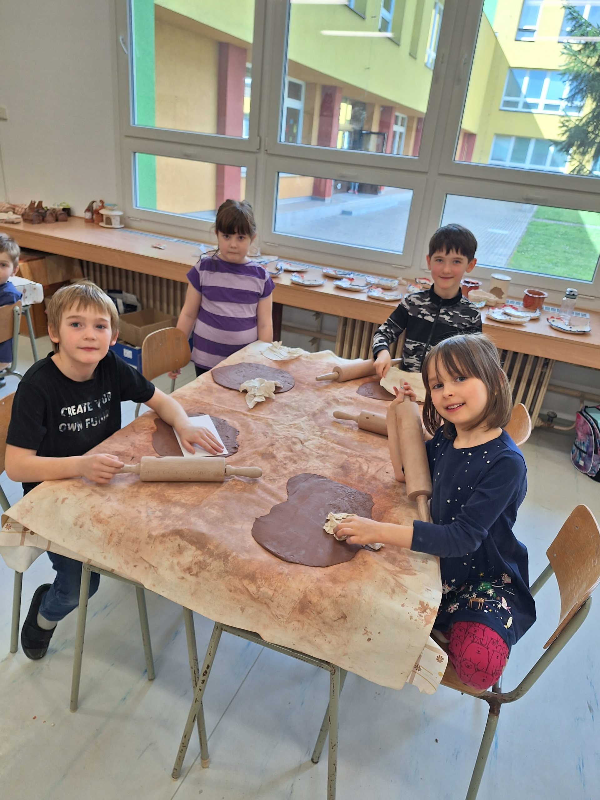 Práce s keramickou hlínou a glazurami nám opravdu jde a je to pro nás relax a zábava! Máme napilno. Vyrábíme, válíme a glazurujeme. Už si klidně vyrobíme z plátu nejen misku, ale troufneme si i na vázičku a tužkovník. Protože nám společný čas rychle utíká, mrkněte na pár foteček, jak šikovní jsme.