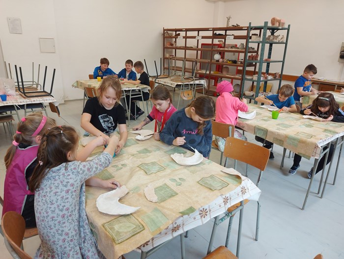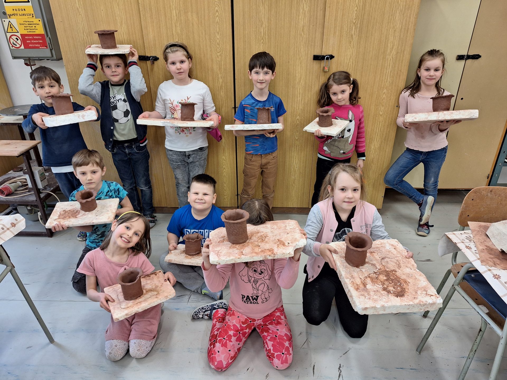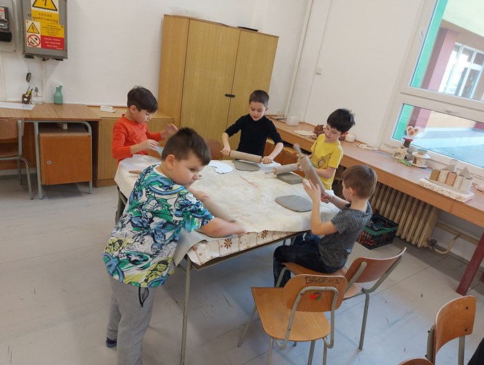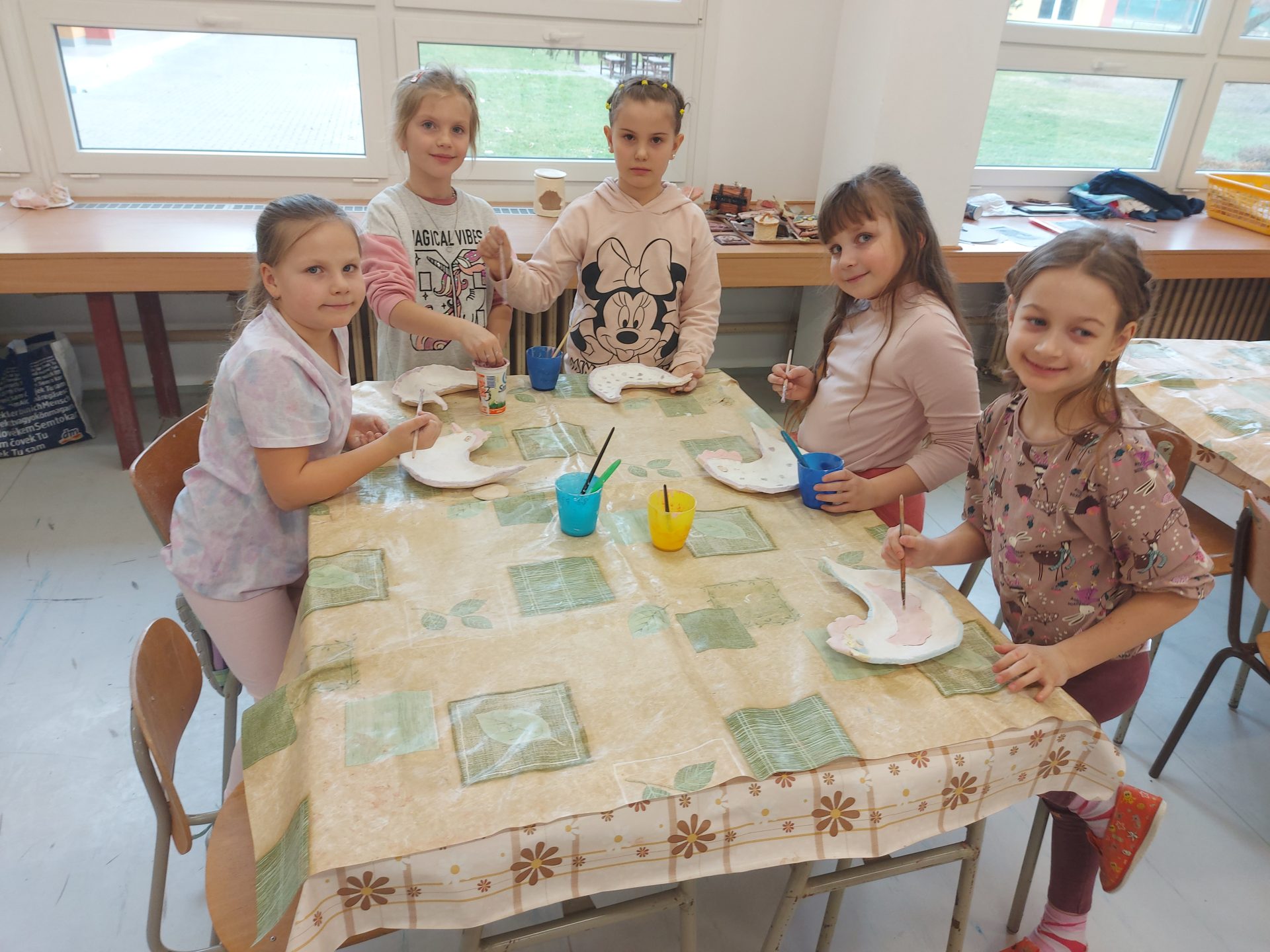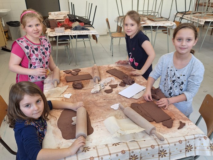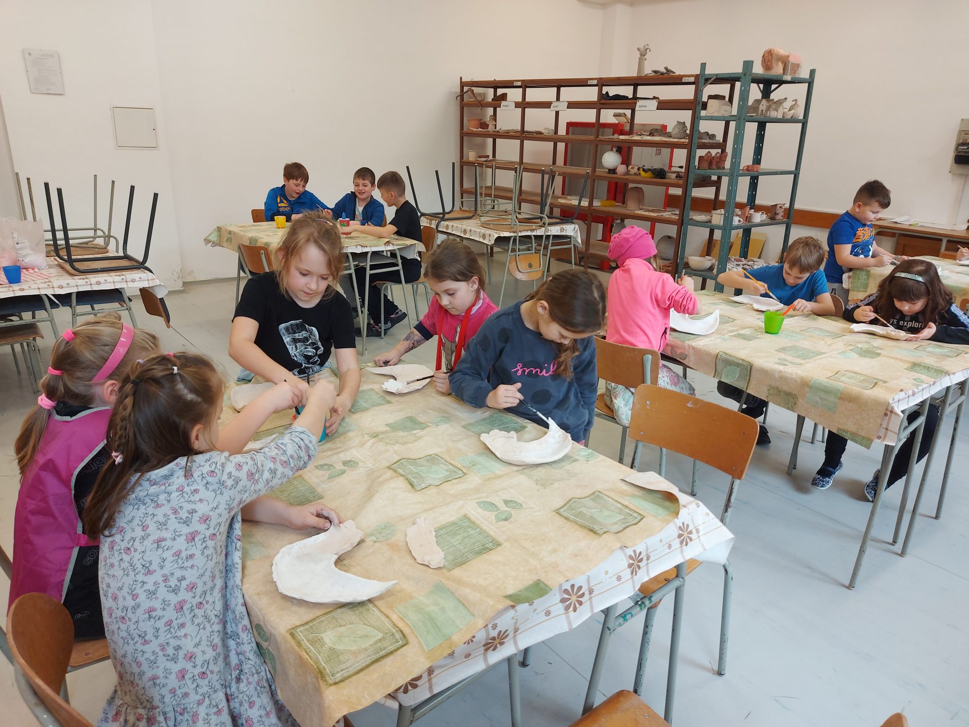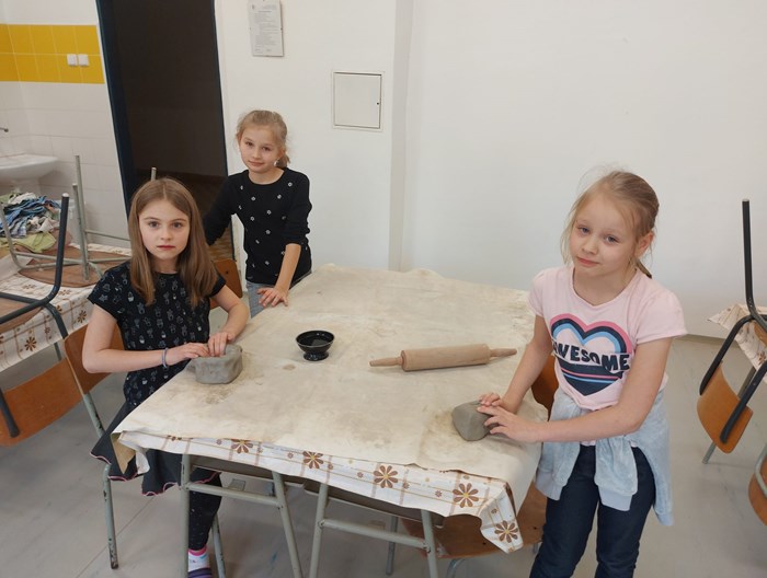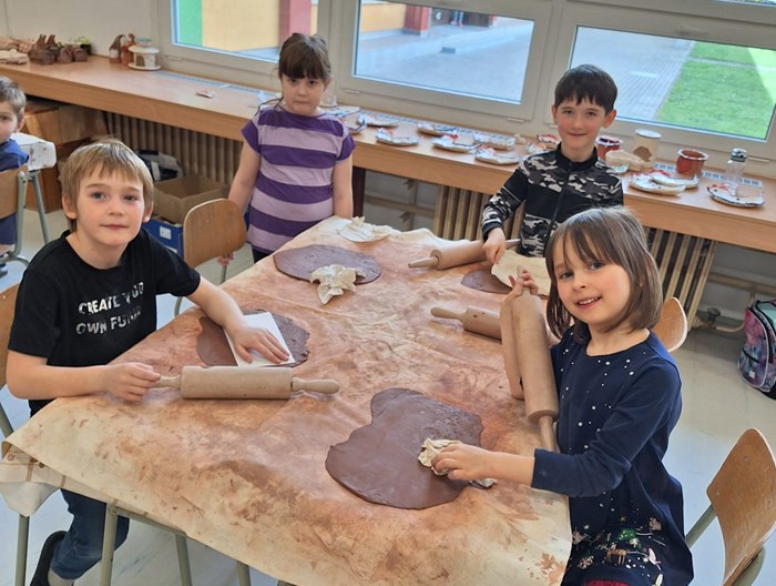 Práce s keramickou hlínou a glazurami nám opravdu jde a je to pro nás relax a zábava! Máme napilno. Vyrábíme, válíme a glazurujeme. Už si klidně vyrobíme z plátu nejen misku, ale troufneme si i na vázičku a tužkovník. Protože nám společný čas rychle utíká, mrkněte na pár foteček, jak šikovní jsme.