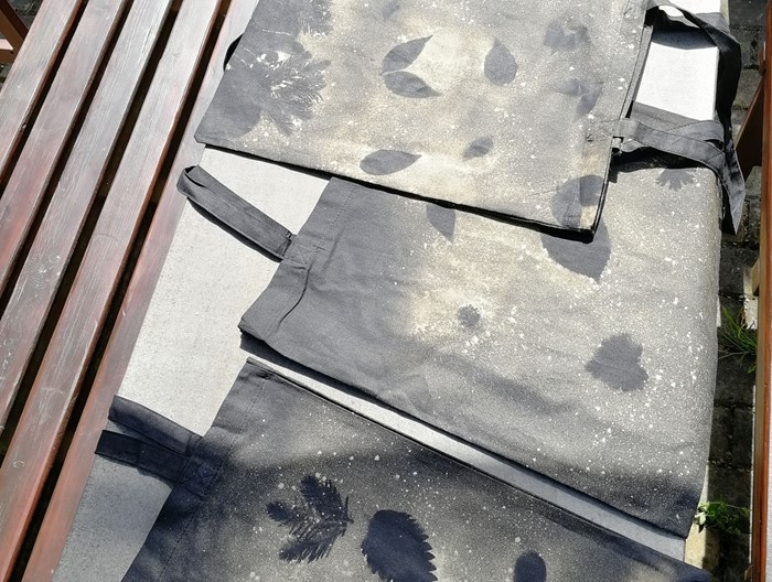 V měsíci květnu jsme s dětmi vyzkoušeli techniku savování. Každý dostal svoji látkovou tašku, kterou si nazdobil přírodním materiálem. K našemu tvoření jsme využili slunného počasí na zahradě.