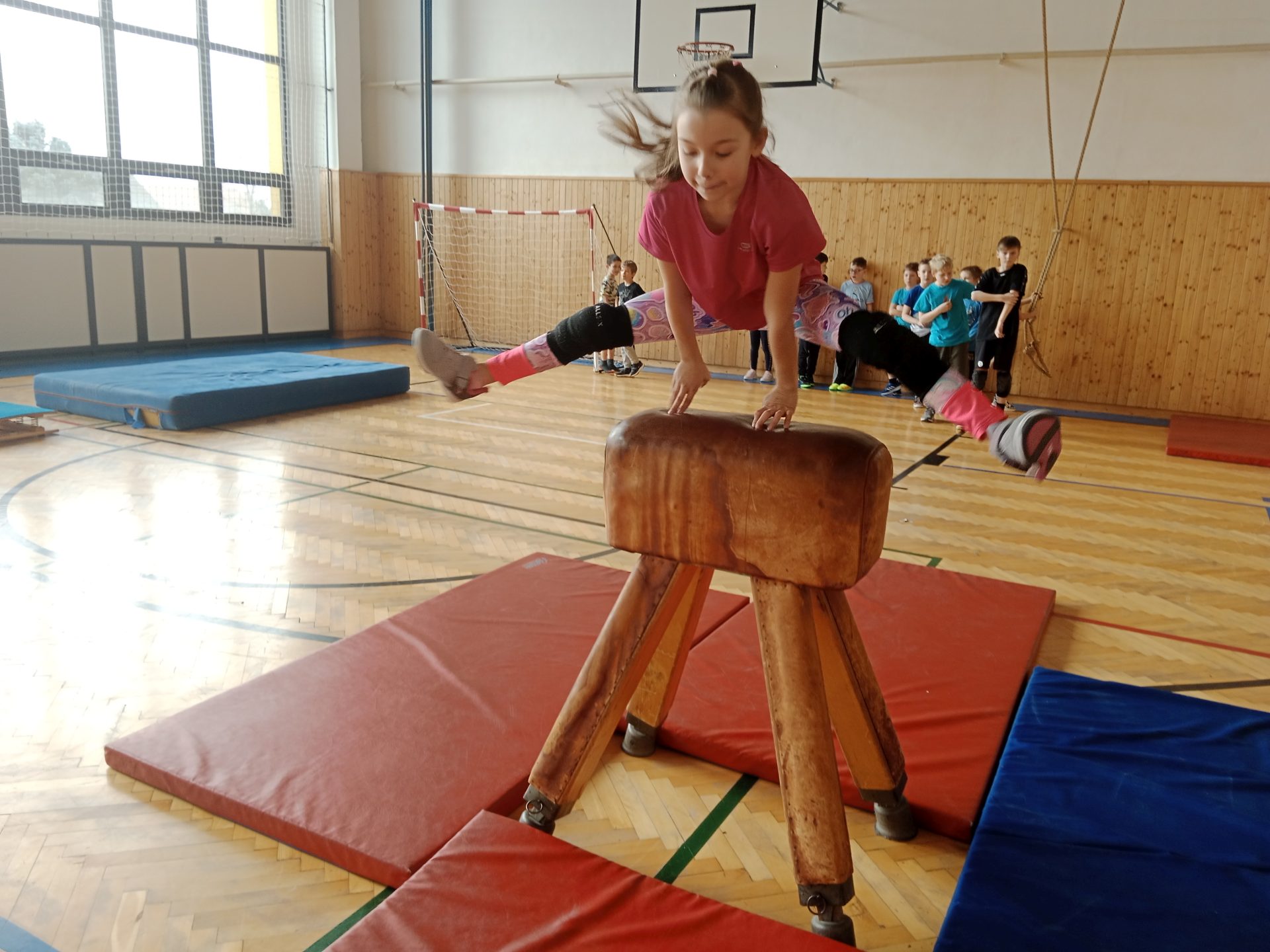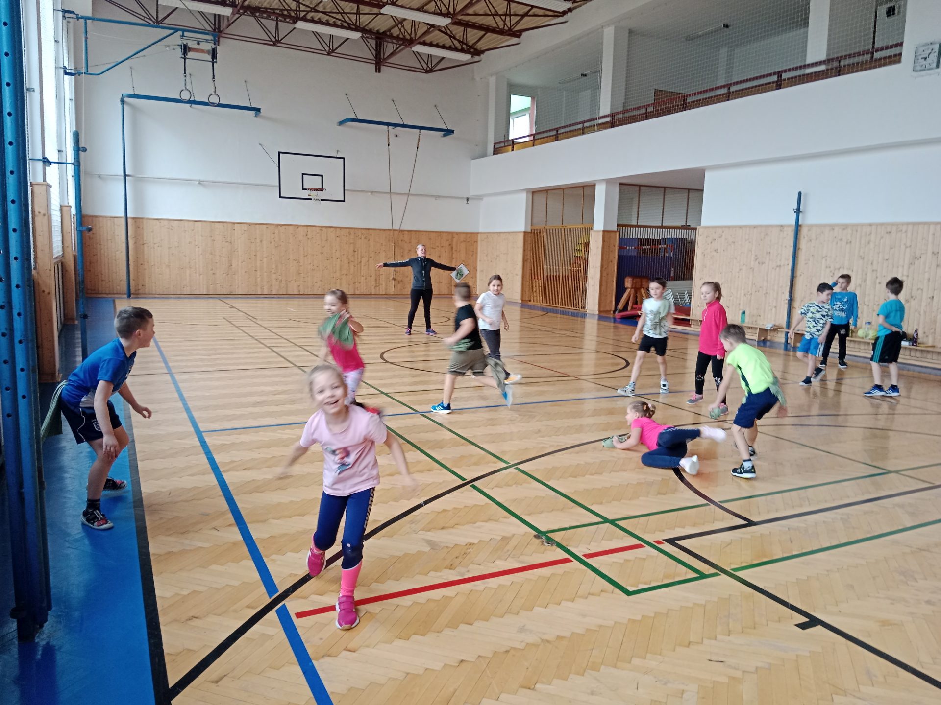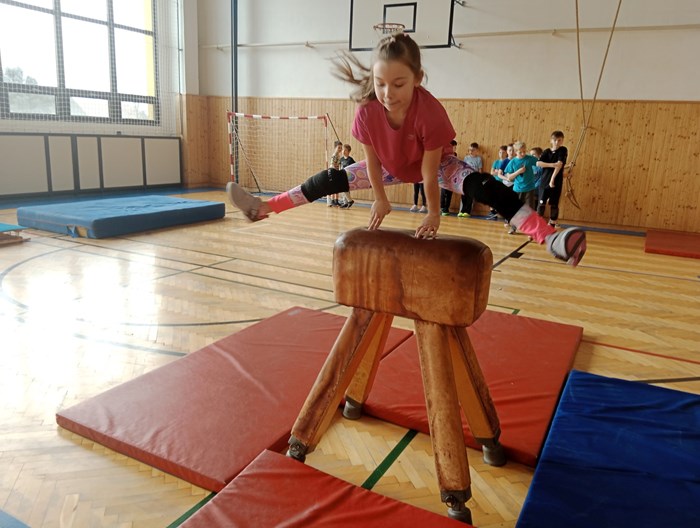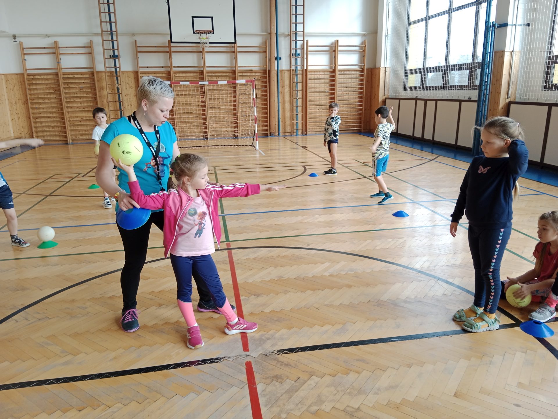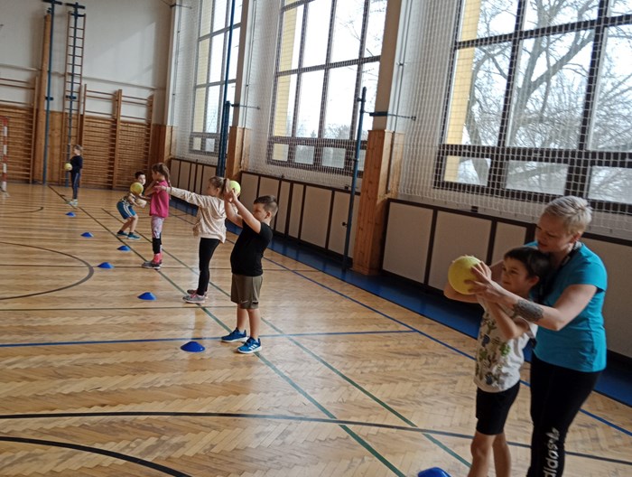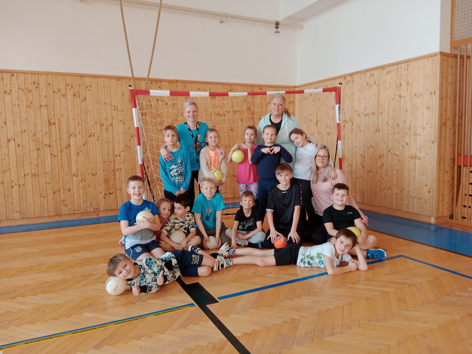 Ve čtvrtek se nám naskytla možnost zkusit si kolektivní míčovou hru házenou a společný trénink pod vedením paní Ing. Ivy Žitníkové. Začali jsme rozcvičkou a strečinkem, trošku si zasoutěžili a připomněli si pravidla hry. Po obědě se děti nejvíce těšily až se rozdělí do družstev a konečně si zahrají. Tímto děkujeme p. Ing. Žitníkové za krásně strávený den, ale hlavně dětem, že celý den poctivě sportovaly. Moc nás to všechny bavilo!