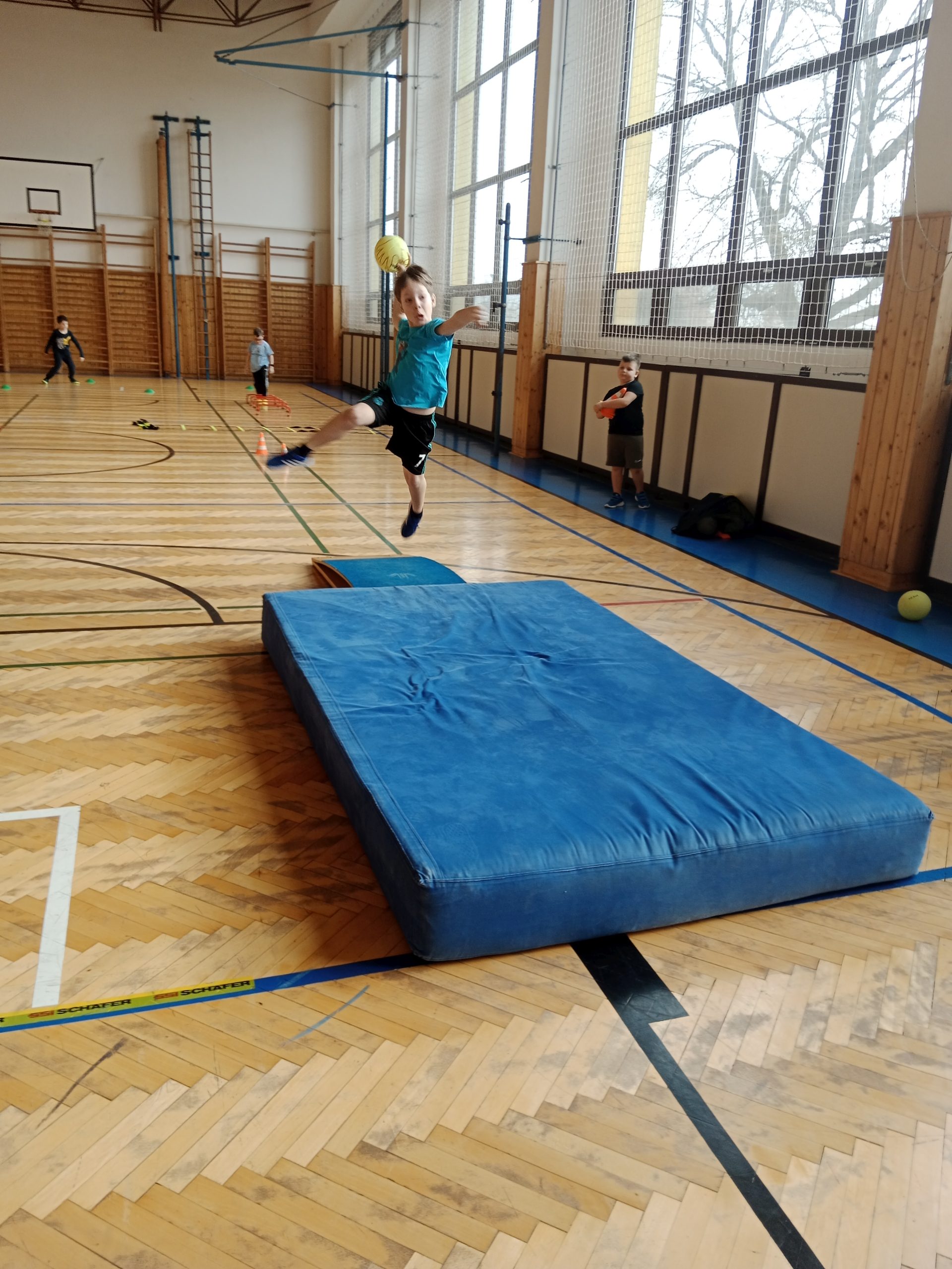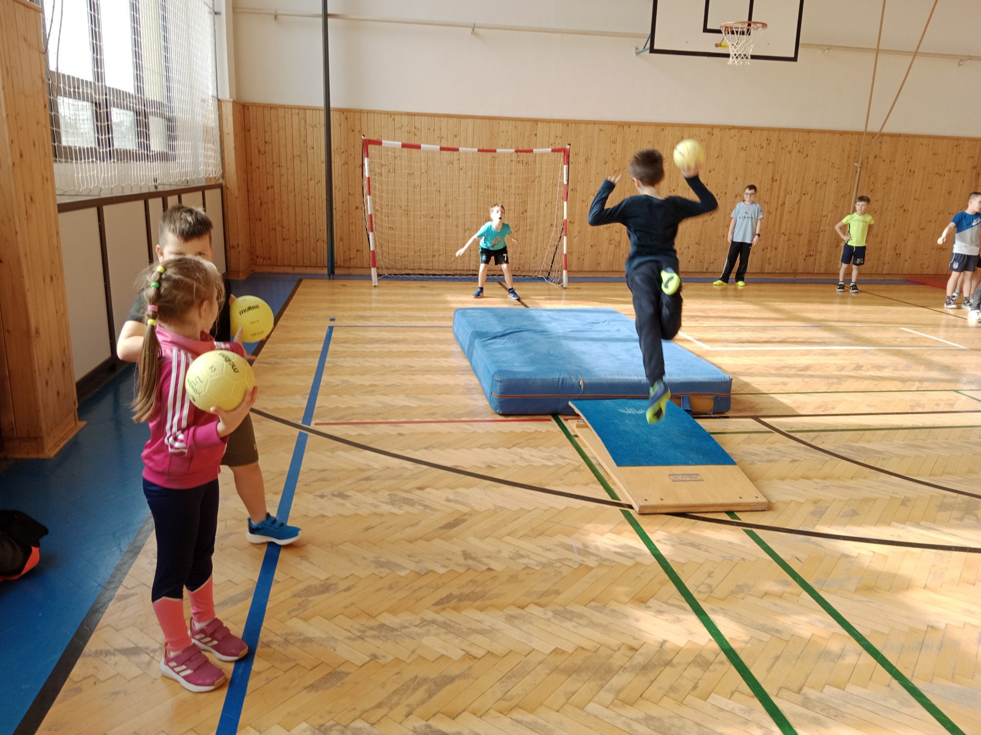 Ve čtvrtek se nám naskytla možnost zkusit si kolektivní míčovou hru házenou a společný trénink.