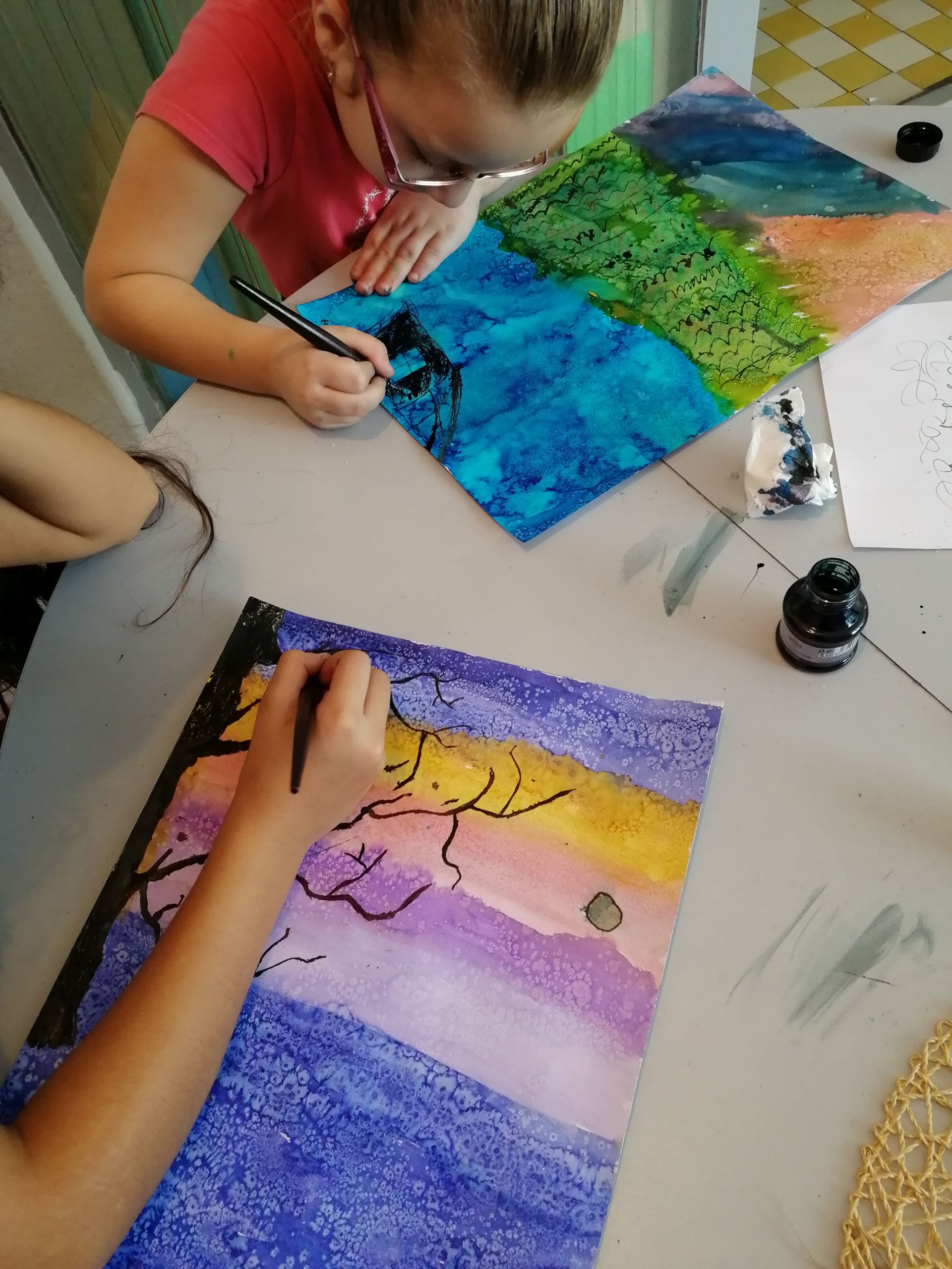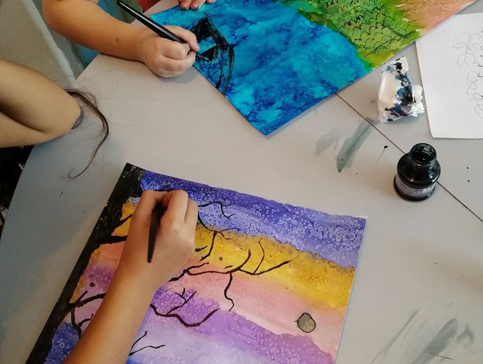 V zimním měsíci prosinci jsme si s dětmi povídali o původu Vánoc a vánočním stromečku. Jak se dříve zdobil, a proč máme zrovna na Vánoce jehličnatý strom. Vyzkoušeli jsme si práci s anilinovými barvami, inkoustem a solenou technikou.