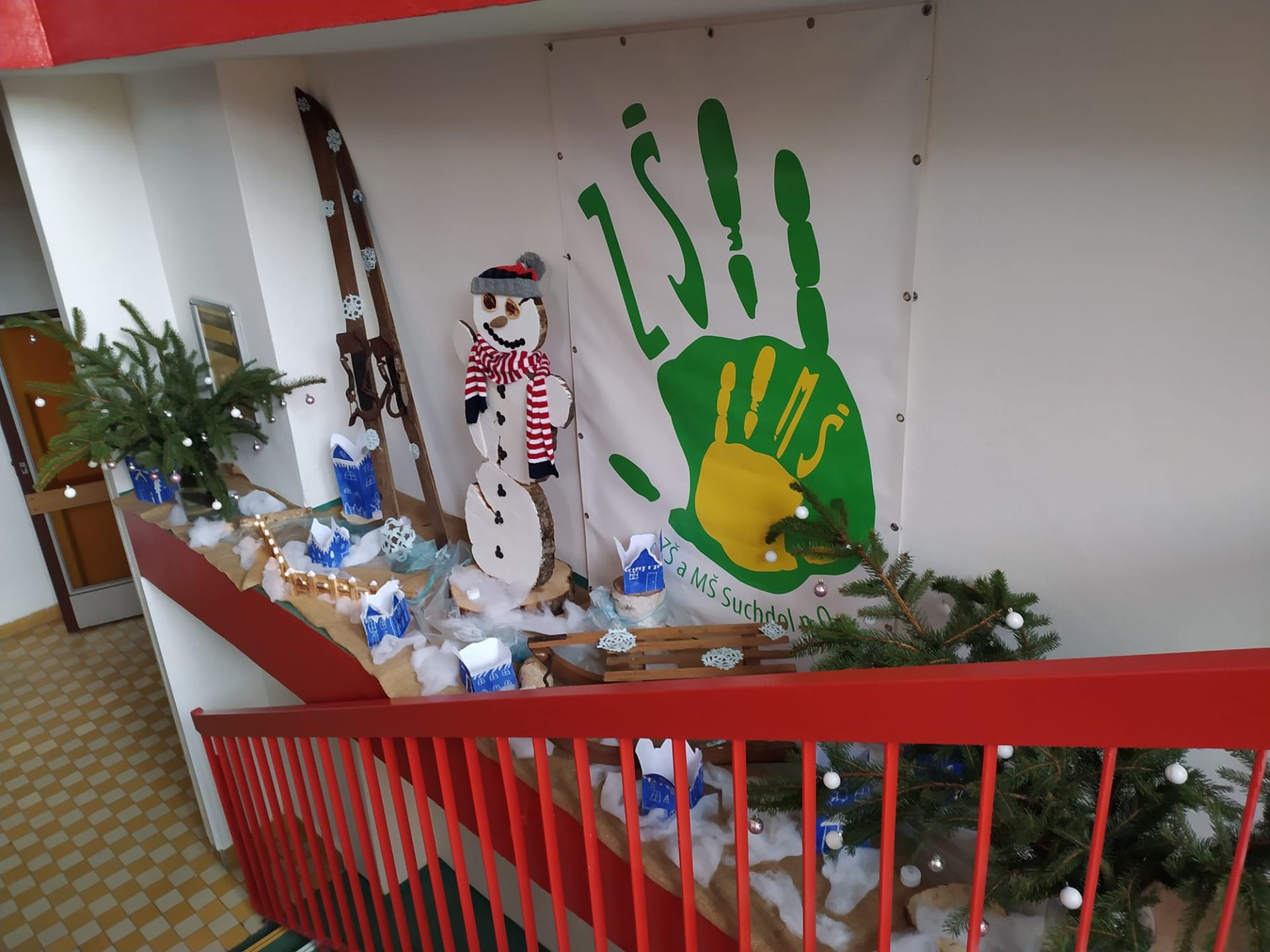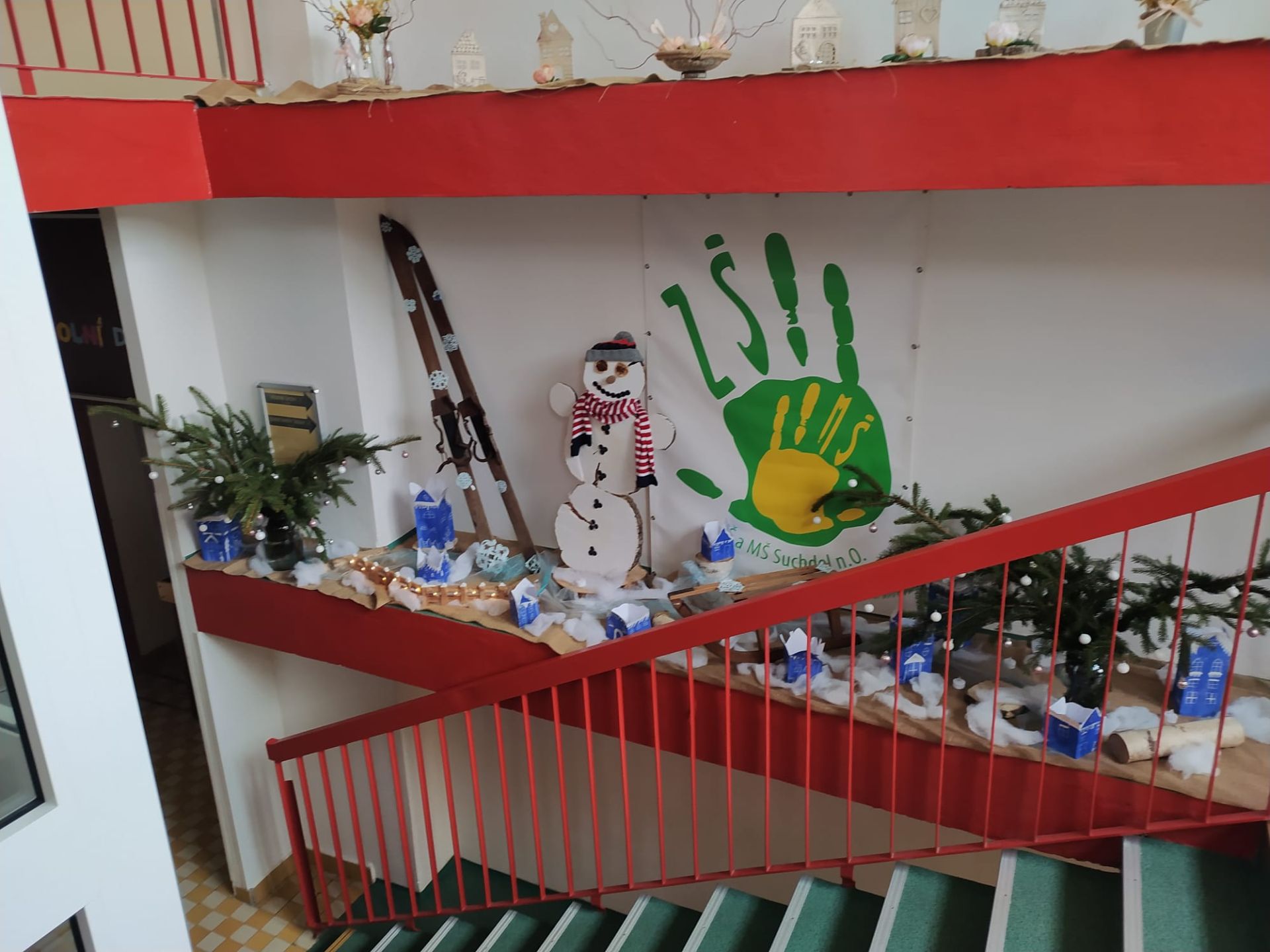 Začátkem prosince se školní družina III. vrhla do výzdoby schodiště na 1. patře na téma Zima.
