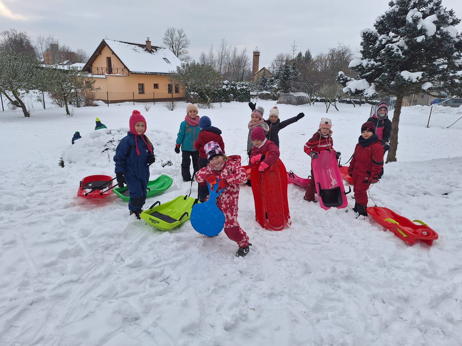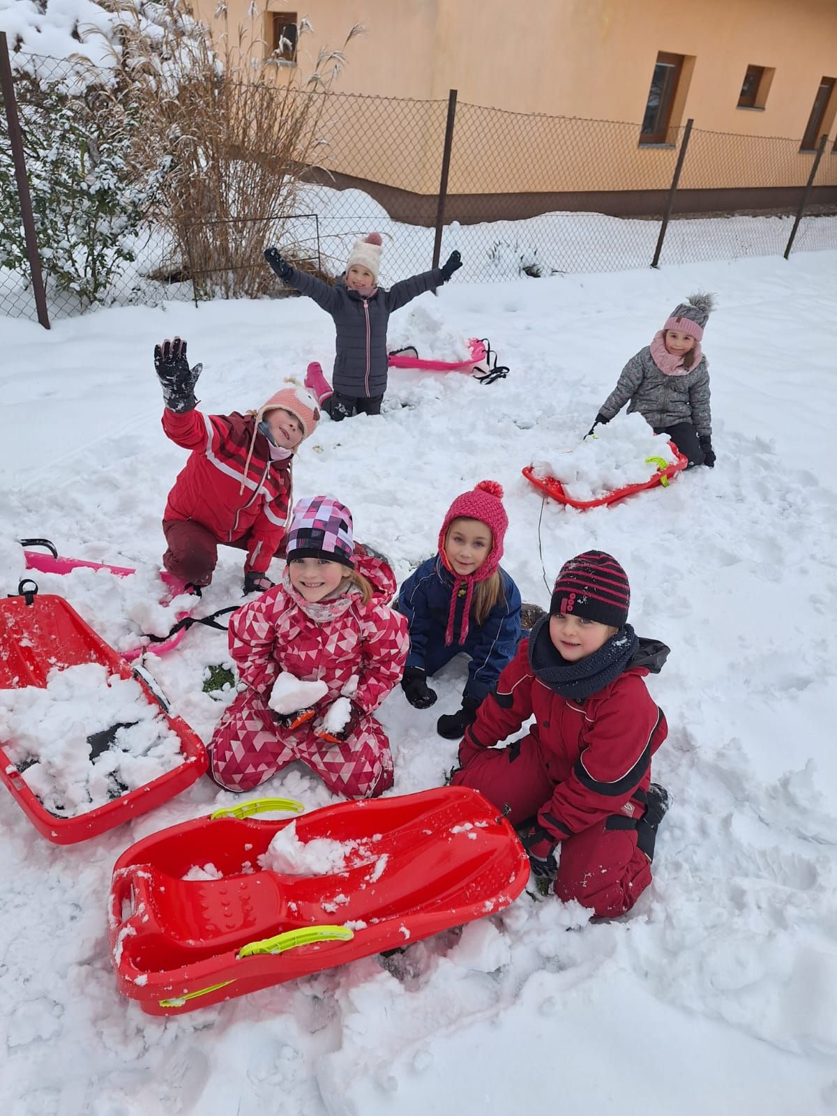 Počasí nám přálo, proto jsme využili část pátečního odpoledne k hrátkám ve sněhu.