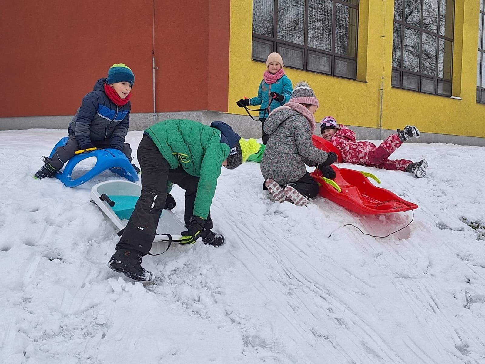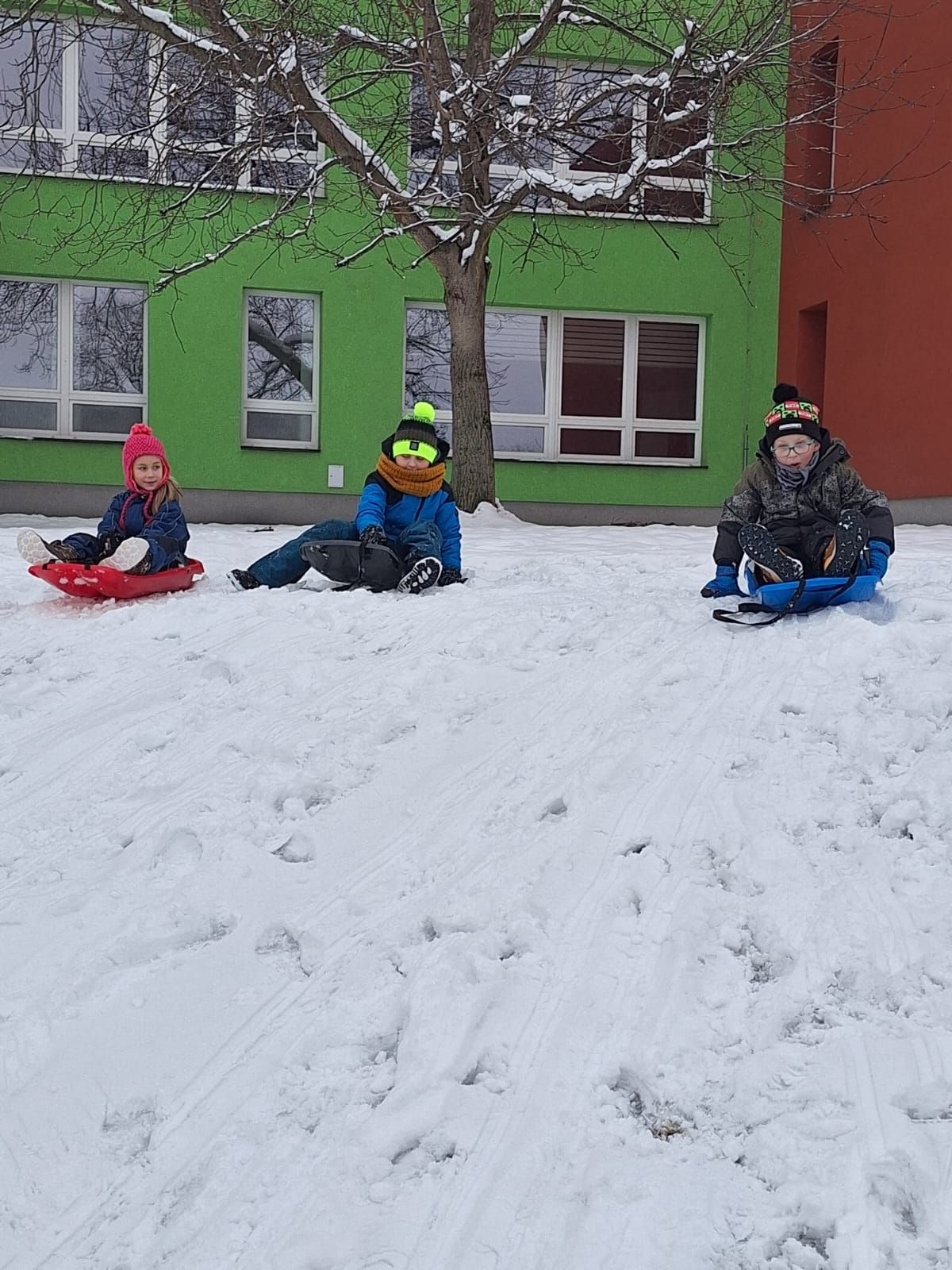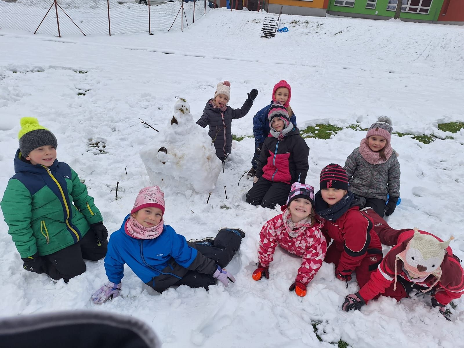 Počasí nám přálo, proto jsme využili část pátečního odpoledne k hrátkám ve sněhu. Děti si užily príma sněhovou nadílku. Některé si daly závody na bobech, soutěžily, kdo je rychlejší, kdo dojede dál. Jiné stavěly sněhuláka. Do školy jsme se vraceli celí mokří, ale šťastní, že jsme si sněhu užili!!!