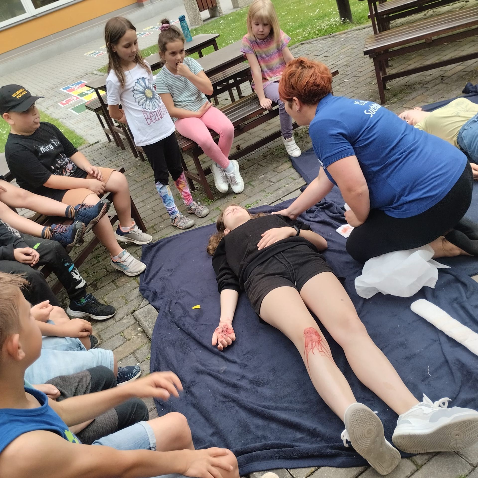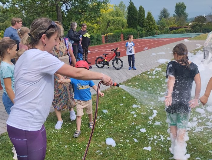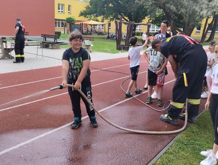 Hasiči, policie ale taky zdravotníci, ti všichni se sešli ve čtvrtek 3. května ve školním atriu u příležitosti oslav Dne dětí. Tam pro naše školáčky připravili a vytvořili celkem sedm stanovišť plných nejrůznějších úkolů. Děti si tak mohly nejen prohlédnout výzbroj, techniku, ale zkusily si i hašení práškovým přístrojem nebo detektivní práci v podobě daktyloskopických otisků, vyzkoušeli resuscitaci či ošetření některých úrazů, např. střepu v ruce. A nejen to… hasiči měli na závěr i překvapení - pěnu, ve které se všichni řádně a dosyta vyřádili.