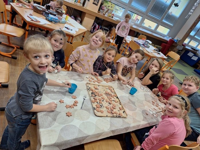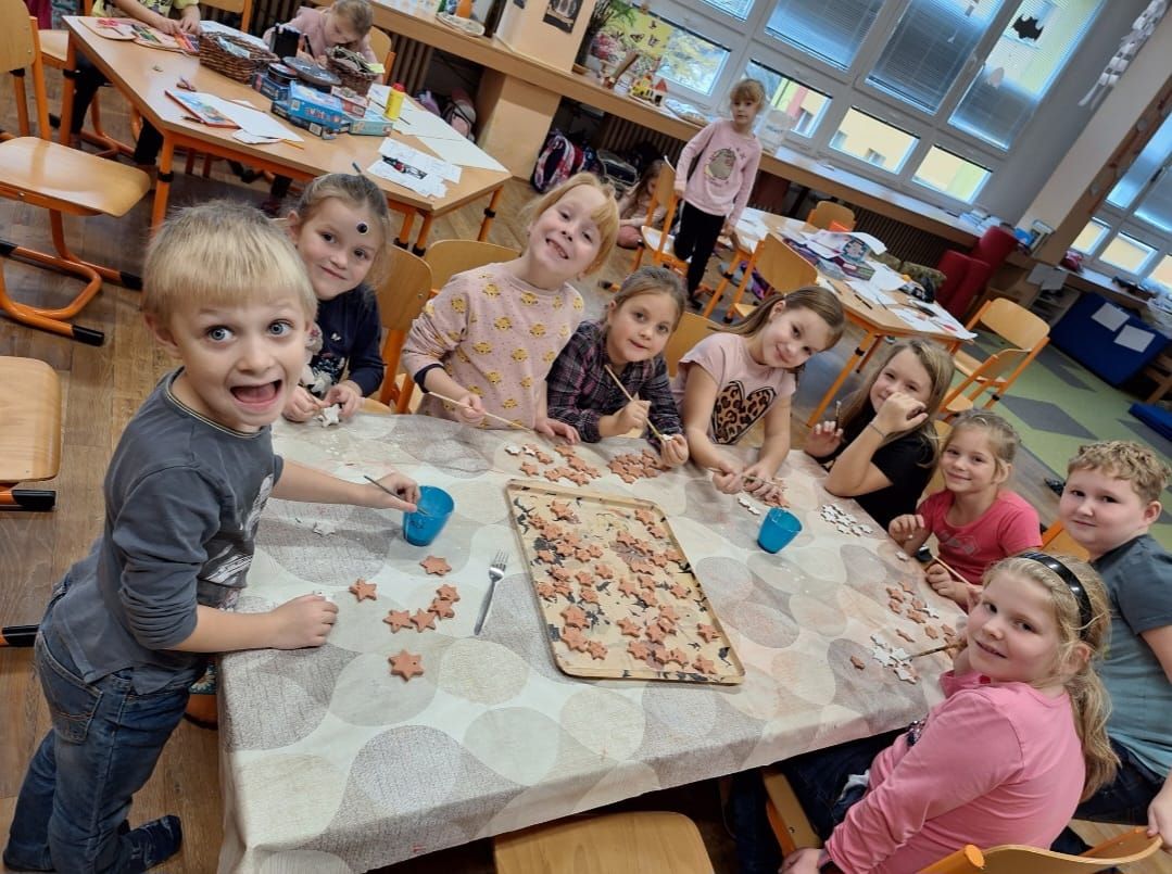 V tomto období jsme si nazdobili vánoční stromeček a tvořili výrobky se strašidelnou tématikou. Zúčastnili se vánočního jarmarku pořádaného ve venkovních prostorech naší školy. Rodiče si přišli užít atmosféru Vánoc a nakoupit výrobky, které jsme pro ně vytvořili. Děti se s chutí zapojily do vánočních příprav a začaly se těšit, co jim nachystá za adventní překvapení měsíc prosinec. I sport nás moc baví a nezapomínáme na zdokonalování fyzické zdatnosti.