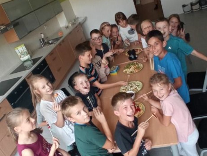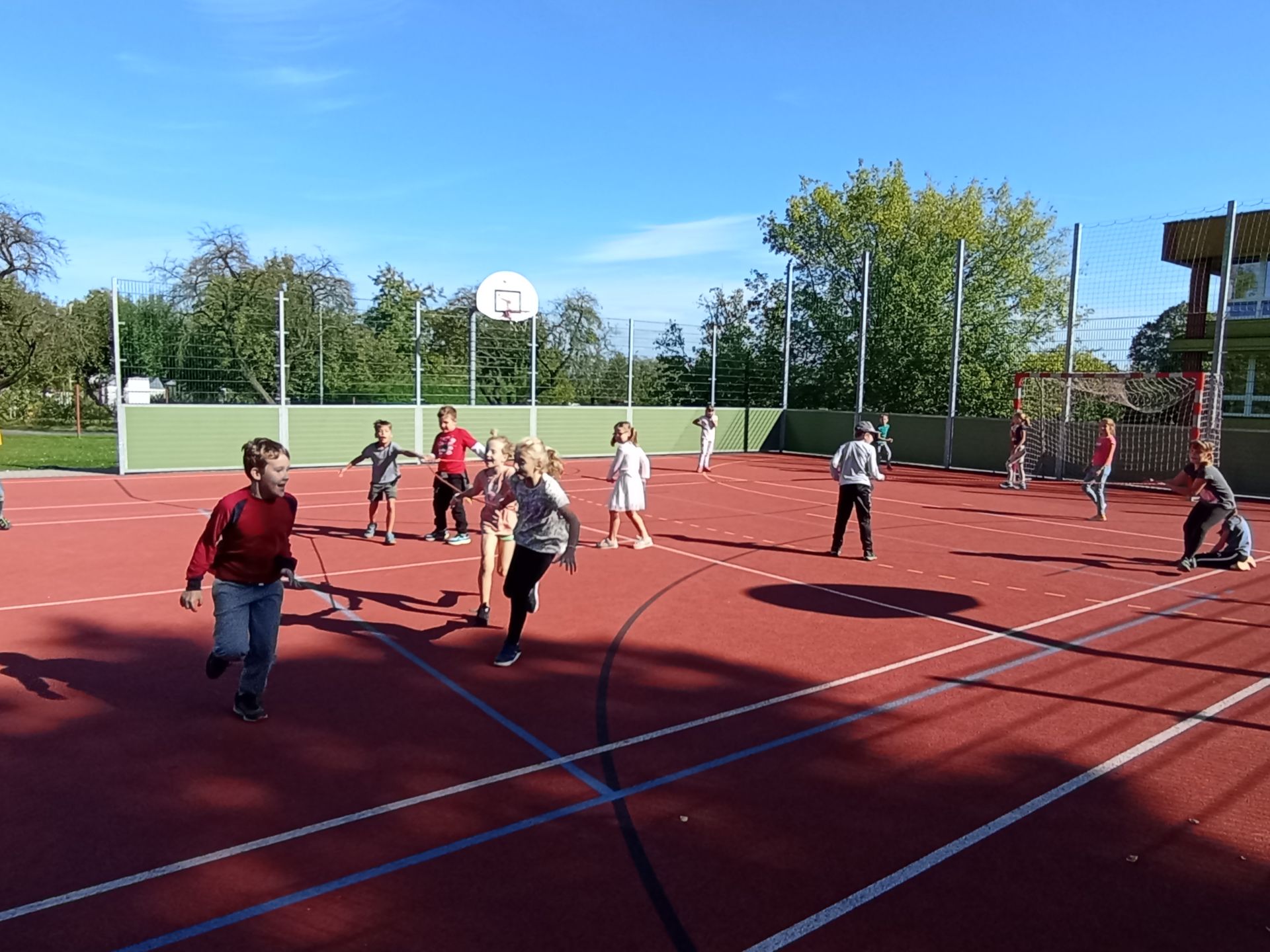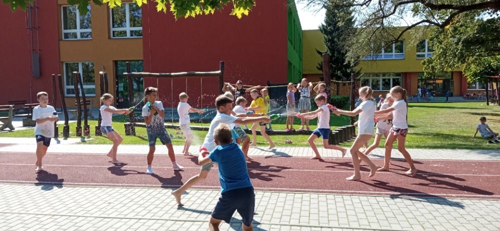Díky krásnému a skoro letnímu počasí jsme měli možnost přesunout spoustu aktivit s dětmi do prostředí venkovního atria i sportovního a dětského hřiště v areálu naší školy.
