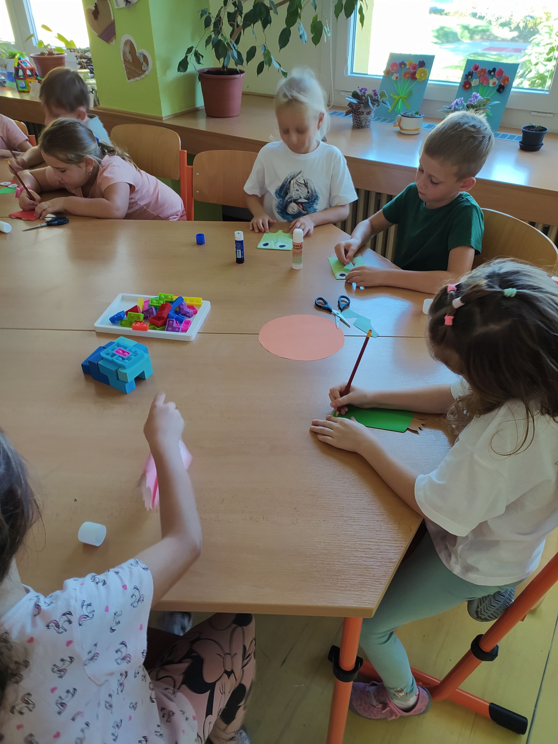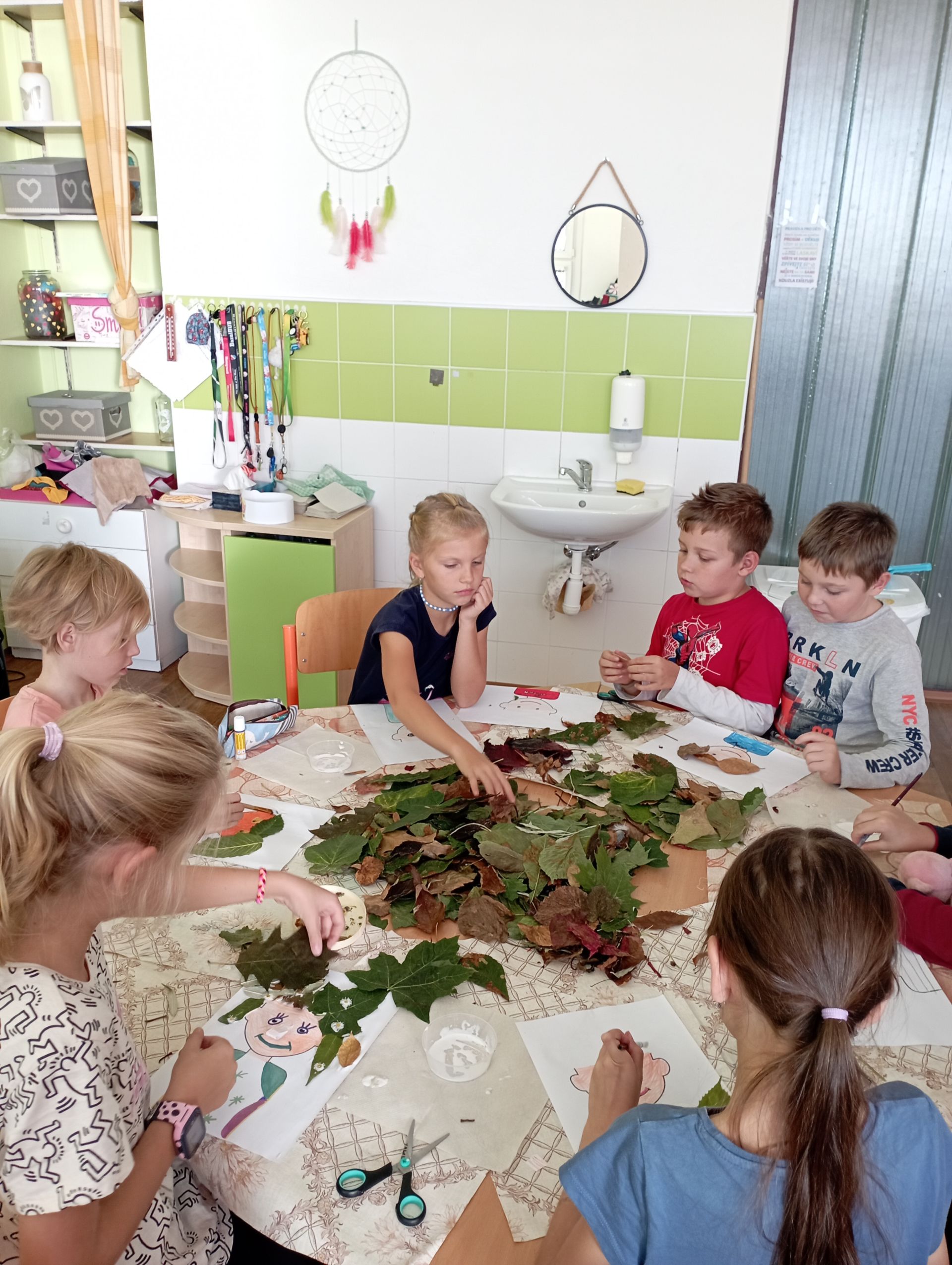 Díky krásnému a skoro letnímu počasí jsme měli možnost přesunout spoustu aktivit s dětmi do prostředí venkovního atria i sportovního a dětského hřiště v areálu naší školy. Děti tak mohly nejen sbírat a tvořit své výrobky z přírodnin přímo v terénu, ale užily si dostatek prostoru i čerstvého vzduchu při kolektivních, míčových i spontánních hrách.