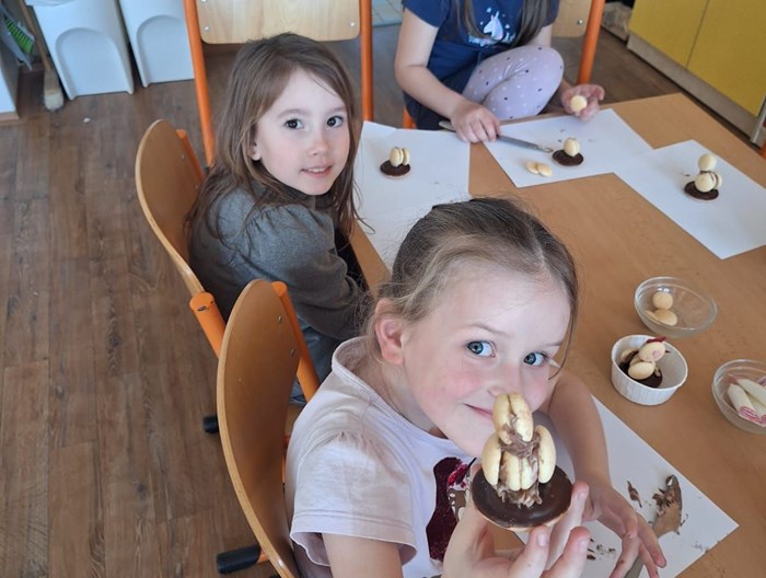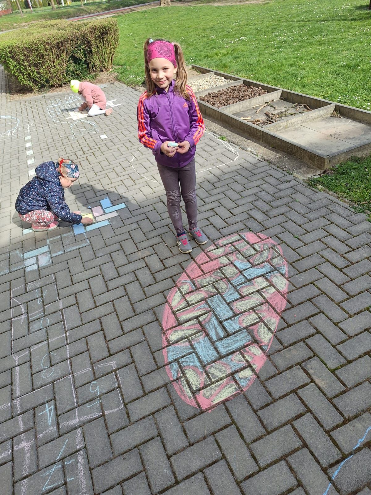 Děti byly skvělé! Všichni se bavili a zapojili se do tvůrčího procesu s velkým nadšením. Bylo vidět, jak si užívaly vytváření drobných dárků na Velikonoce. Dokonce i kluci, kteří obvykle dávají přednost jiným aktivitám, např. hraní deskových her, se tentokrát připojili ke stolům a s chutí tvořili nepečená kuřátka. Venku pak s radostí malovali křídami kraslice. Je skvělé vidět, jak děti rozvíjejí svou kreativitu a zároveň si užívají společný čas.
