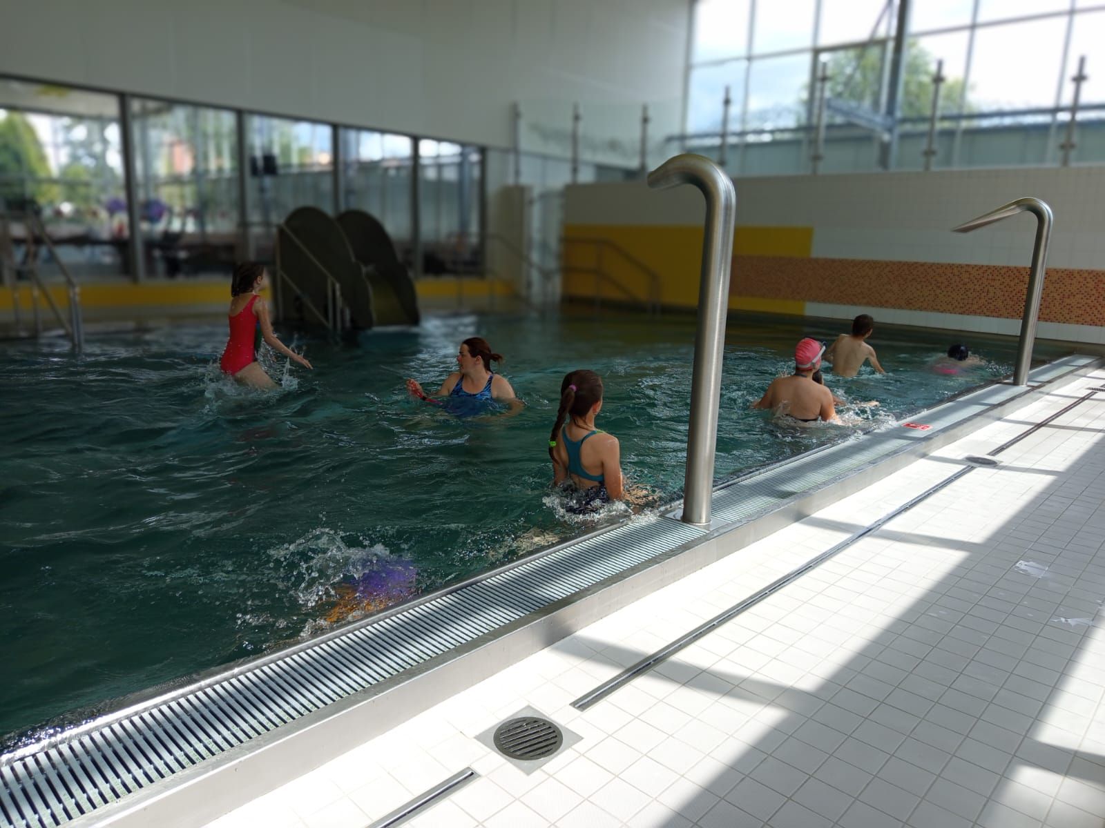 Čas ve školní družině je třeba si pořádně užít a někdy je fajn vyrazit i pryč ze školy. Jelikož nám počasí stále moc nepřeje a slunce moc nehřeje, rozhodli jsme se, že si vodní radovánky uděláme na bazéně. Pod dohledem zkušené plavčice, paní asistentky Míši Jezevcové jsme se vydali 11. 6. 2025 s družinou na bazén do Nového Jičína. Míša si pro nás přichystala pestrý program v podobě zvířatkové rozcvičky, závodních her a nakonec si to děti užily i po svém. Někteří relaxovali v bublinkách a protiproudech, někteří se potápěli, ale všichni jsme se náramně bavili!