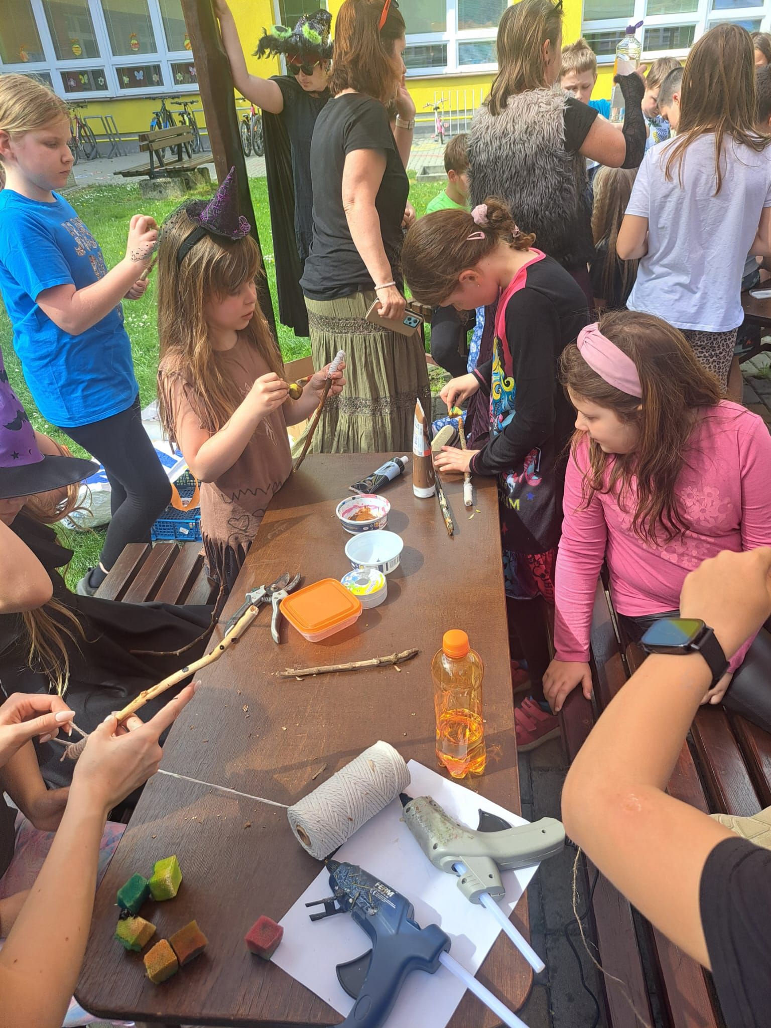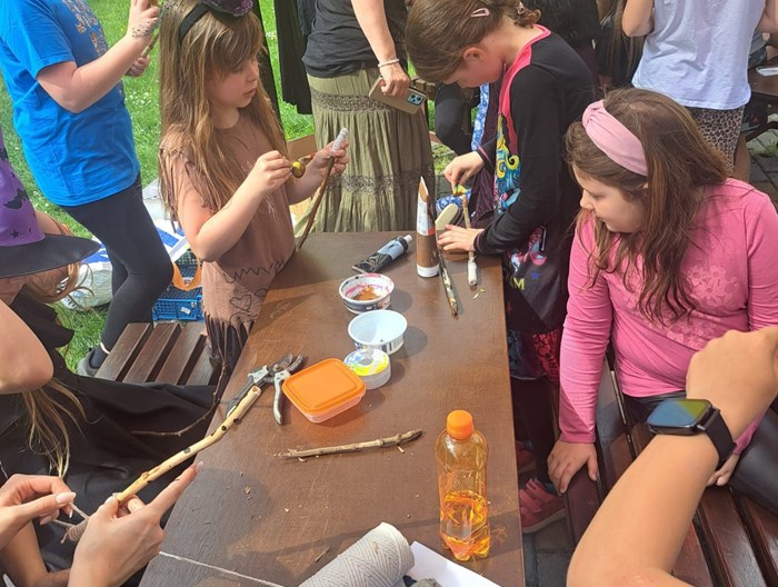 Poslední dubnový den je spojován s oslavami a pálením čarodějnic. No a vzhledem k tomu, že jsme už spálili Moranu, tak čarodějnice jsme se rozhodli pojmout jinak, a tak trochu netradičně. V družině jsme si udělali takovou malou školu čar a kouzel. Na děti jsme si připravily kouzelné disciplíny, jako běh po perníčcích, hopsání v kouzelném pytli, záchranu koblížka z okna čarodějnice atd. Děti si také vyrobily vlastní čarodějné hůlky a uvařily svůj kouzelný slizový lektvar.