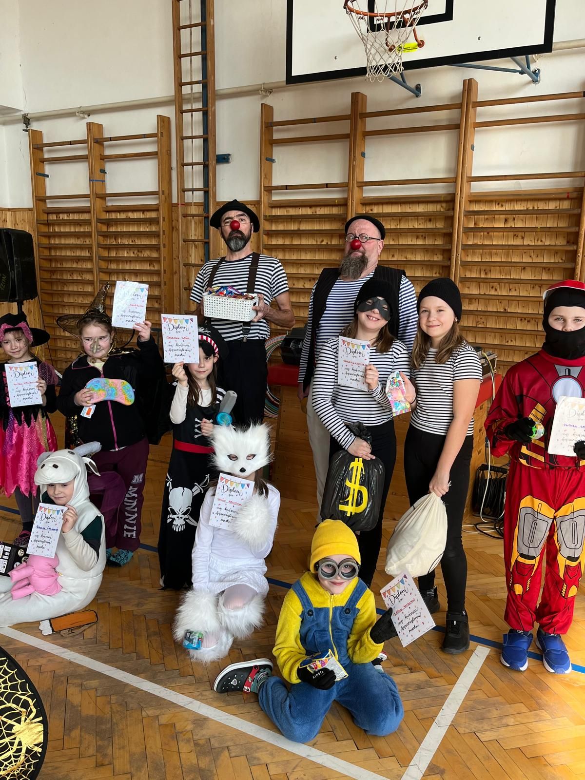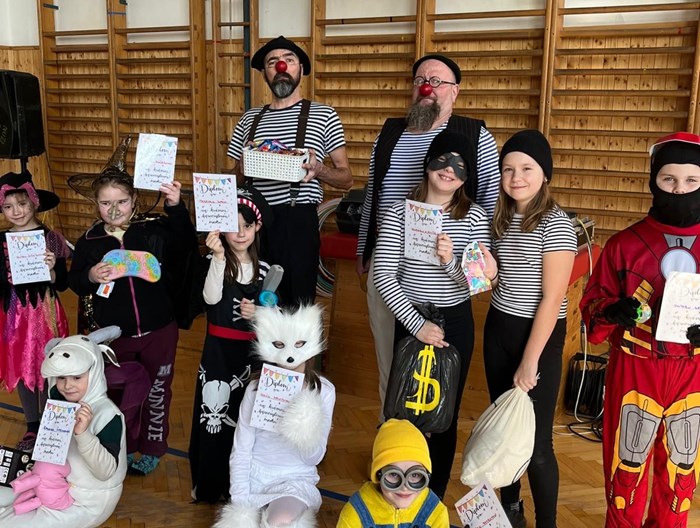 I letos jsme se v naší družince s kolegyněmi dohodly pozvat si na pomoc s programem v rámci maškarního karnevalu již osvědčenou dvojku Klaunů na volné noze. A ani tentokrát dva typově odlišní šašci nezklamali, vždyť jejich dvouhodinový program nabitý různorodými činnostmi doslova nedal dětem ani možnost se pořádně nadechnout. Posuďte sami - soutěže ve víru tance, zápolení mezi chlapci a děvčaty doprovázeno vtipnými mikrofony, společný pochod napříč školou, promenáda masek spojená s vyhlášením těch nejzajímavějších, řádění s padákem, mezi bublinkami a mnoho dalšího…Myslím, že spokojené a vysmáté tváře našich dětí na fotkách hovoří za vše 😊.