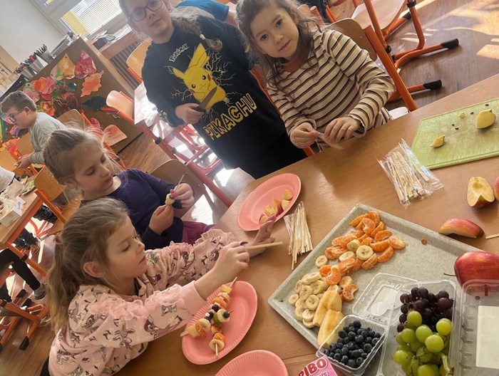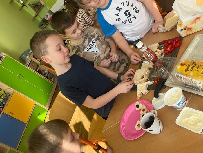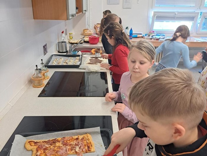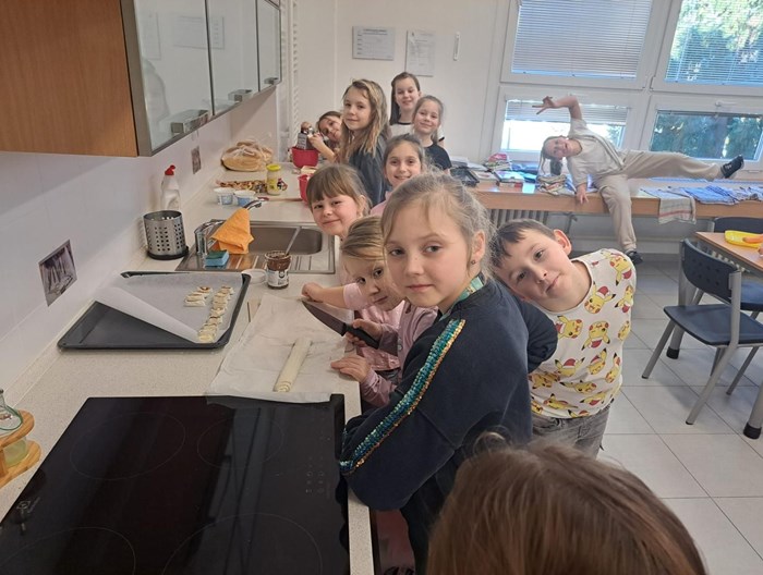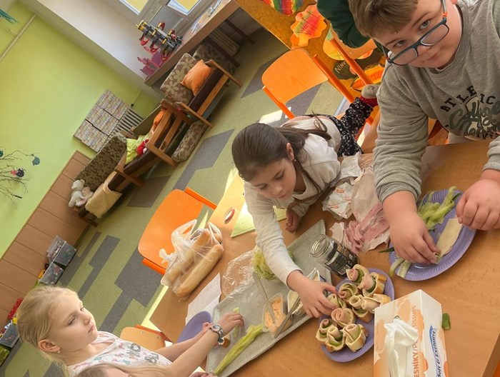 Čtvrtek 20. února nám přišel ideální den k uspořádání celodružinového zápolení o titul MasterChef - tedy soutěže mezi jednotlivými odděleními v přípravě zajímavých a netradičních pokrmů studené i teplé kuchyně. Po velkých nákupech nezbývalo než se s chutí pustit do samotného kulinářského procesu, a ať již ve školní kuchyňce nebo přímo u stolečků ve třídách se začínaly rodit dobrotky a delikatesy přímo pod rukama našich šikovných dětí - nadýchané sladké roládky, popletené jednohubky, ovocné špízy, tortilové jednohubky, šneky s nutelou či plněné masopustní koláčky.