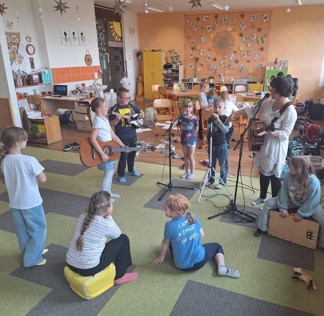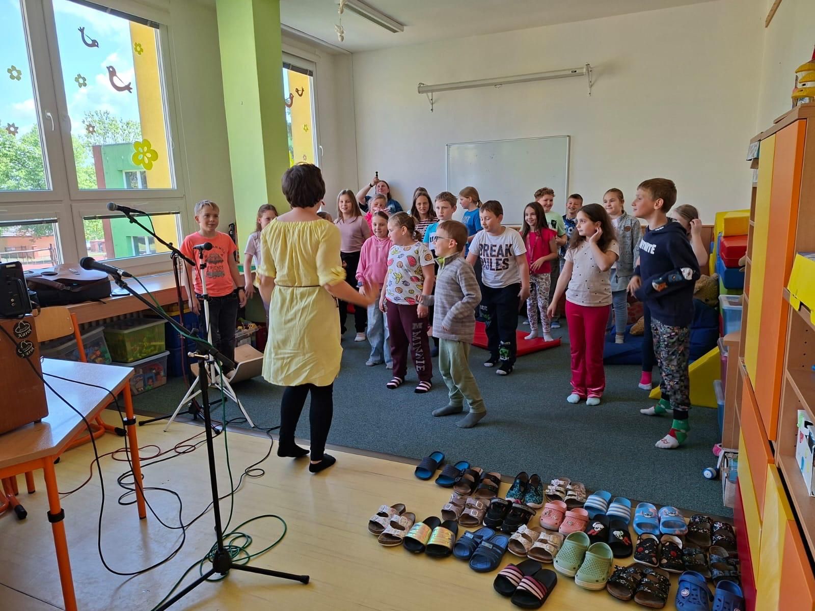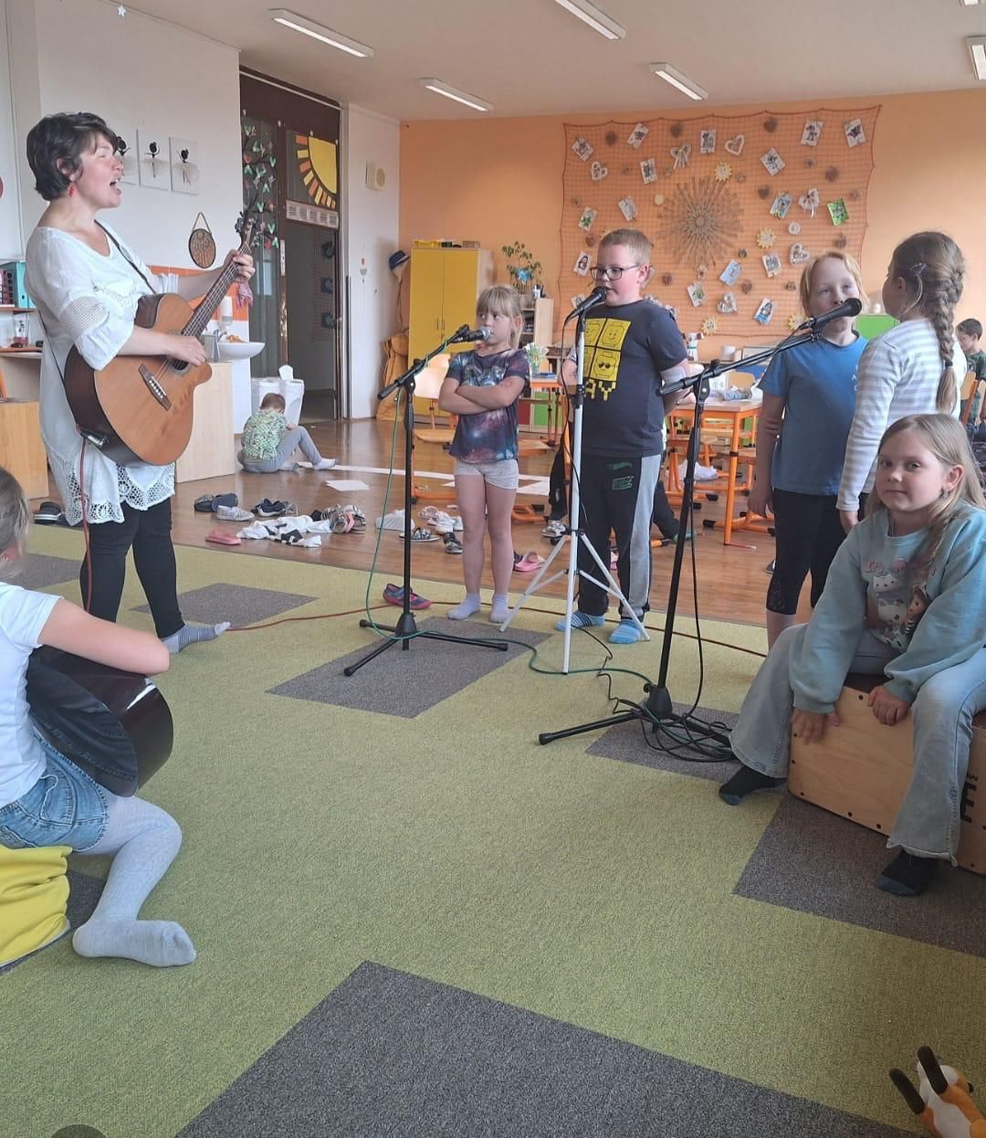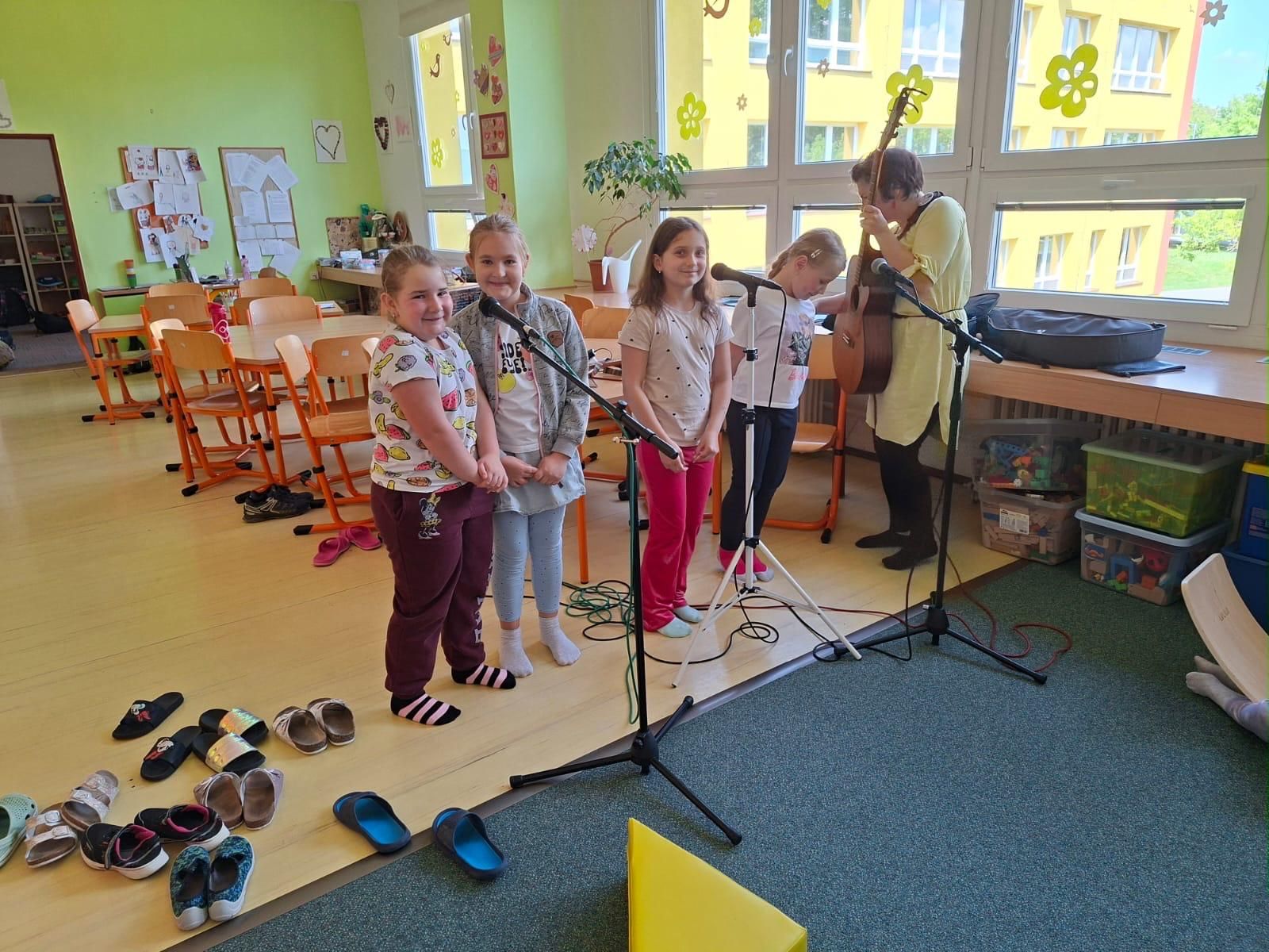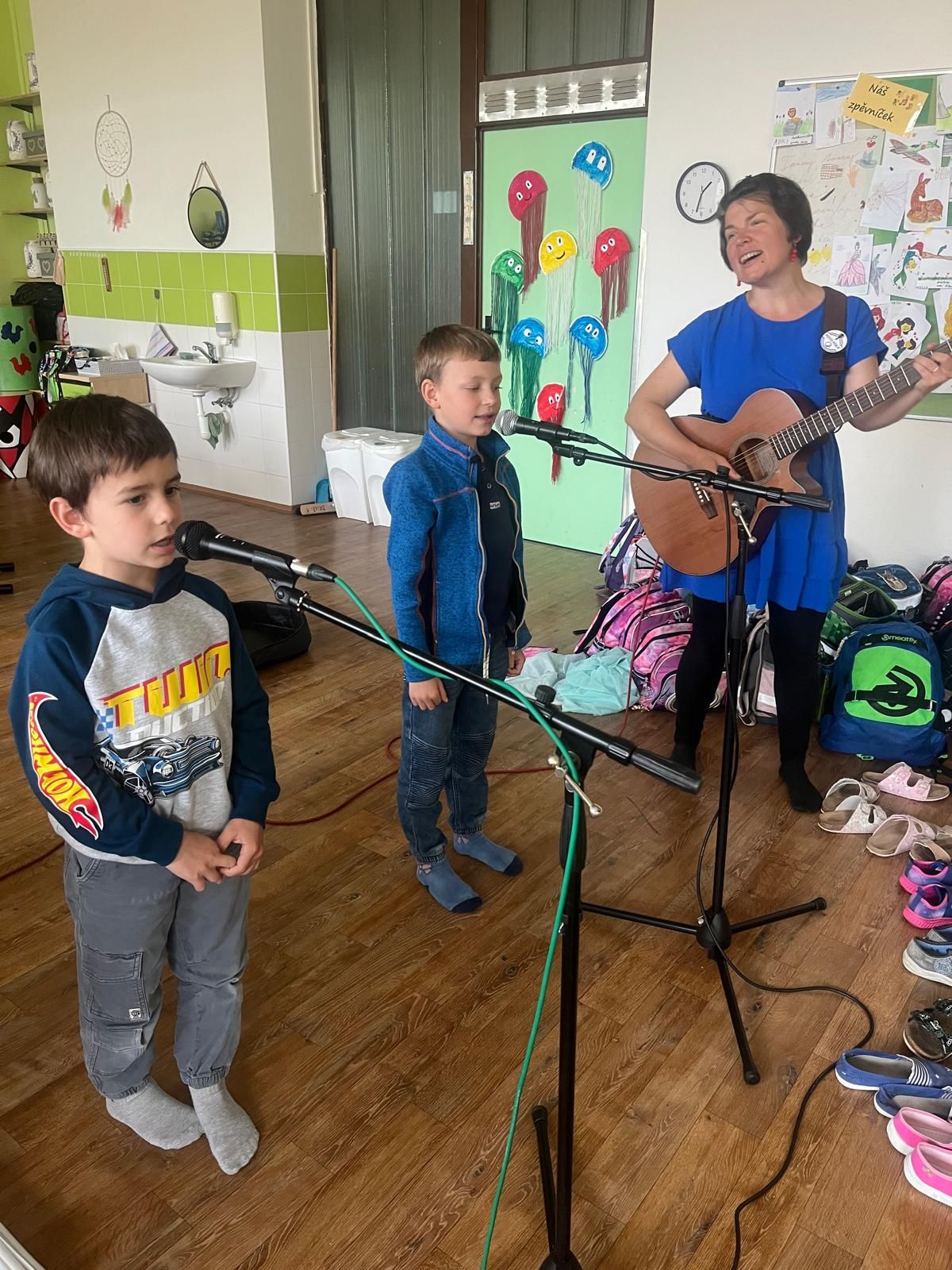 Naše děti tuto možnost dostaly a jedno hodně hudebně nalazené odpoledne tak strávily s paní Monikou Byrtusovou - profesionální zpěvačkou. Každý, kdo měl zájem, si tak mohl vyzkoušet svůj „malý koncert“ se zvolenou písničkou před publikem ve své družince a zakusit tak alespoň malý kousíček slávy po překonané trémě.
