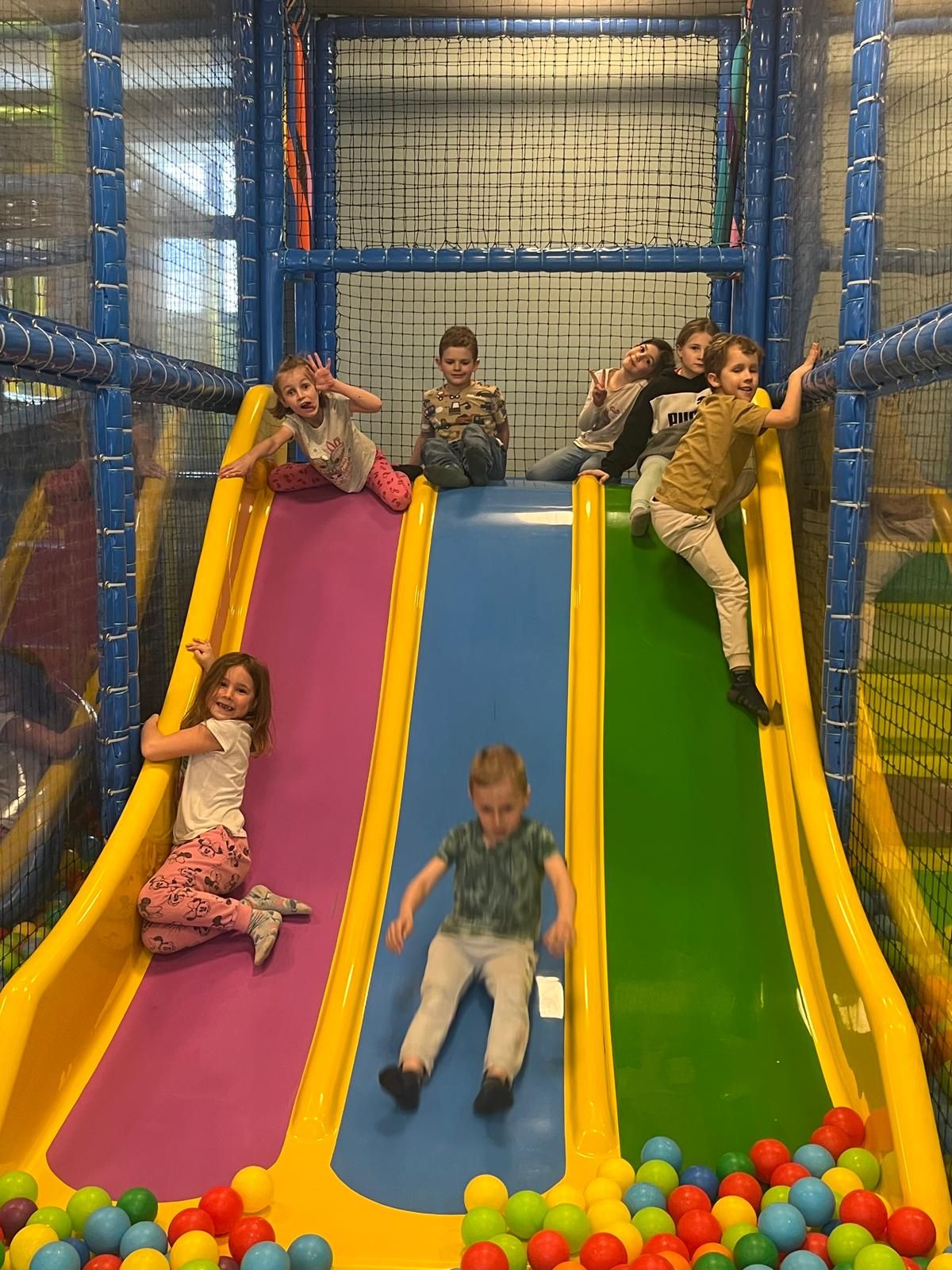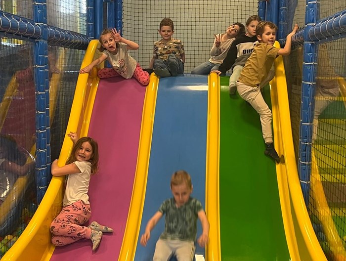 Příliv svěží jarní energie do těl našich nejmladších dětí jsme se rozhodly využít a snad trošku i vybít naplánováním zábavného odpoledne plného pohybu v Magic parku v Novém Jičíně. Dva předvelikonoční dny jsme tedy s oddělením 1 a 2 strávily v herně doslova nabité podněty k všemožným pohybovým aktivitám - vždyť skákání, běhání, klouzání, plížení, lezení a pak i padání, které k tomu patří, doslova nebralo konce. Chvilku klidu si děti našly snad jen při konzumaci zakoupených dobrotek - přesně tak jak to mají rády. Ve vlaku nám pak písničkami zpestřenou veselou cestu domů nepokazili ani dva všeteční revizoři😊.