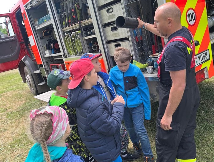 Slunečného počasí jsme s dětmi z družinky v pondělí 12. května využili k odpoledni stráveném venku v příjemné společnosti našich místních hasičů a policistů. Ti si pro děti připravili nejen ukázky, ale hlavně možnost v terénu si vyzkoušet mnoho aktivit a dovedností nezbytných pro výkon jejich práce.