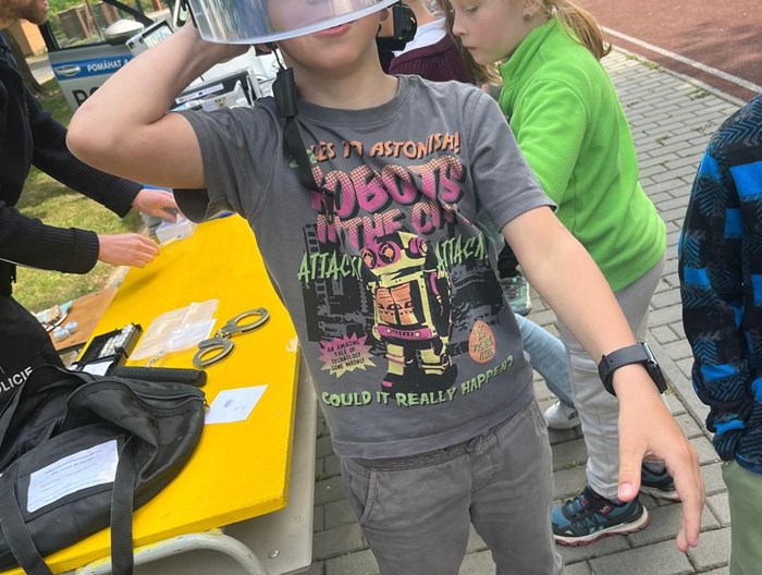 Děti tak v průběhu dvou hodin na šesti stanovištích měly možnost vlastnoručně uhasit vodou hořící dům, natrénovat způsob hašení i pěnovým hasicím přístrojem nebo podrobně prozkoumat i pro zraky veřejnosti ukrytá zákoutí hasičského vozu. Policisté si pak otestovali při člunkovém běhu jejich zdatnost, dali jim možnost sejmout sami sobě otisky prstů nebo i maličko nakouknout pod roušku problematiky drog. Největší ohlas však již tradičně vzbudily zvukové i zrakové efekty policejního vozu. A díky našim výborně proškoleným kolegyním došlo i na zdravovědu - nejen seznámení s prevencí a riziky úrazů, ale připraveny byly i velmi realistické ukázky zranění, které si mohly děti vyzkoušet ošetřit.