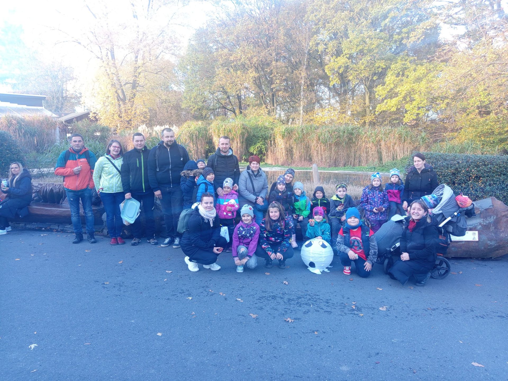 Během měsíce října jsme zjistili, že ZOO v Ostravě vyhlásila podzimní soutěž ve sběru lesních plodů. S dětmi jsme hned zavětřili šanci a neviděli jediný důvod, proč se nezapojit. V rámci 4. oddělení s převahou starších dětí jsme si udělali svou vlastní soutěž o nejlepšího sběrače, kterou s přehledem vyhrála Jolanka Tichá. A protože ve škole táhnou všichni za jeden provaz a tato soutěž je rovněž pro dobrou věc - pomoc ZOO vytvořit dostatečné zásoby pro zvířátka - spojili jsme síly i s třídní paní učitelkou Mgr. Katkou Krutílkovou. Děti sbíraly pilně ve škole, v družině i doma, tam s výraznou pomocí svých obětavých rodičů a za 14 dní nasbírali neuvěřitelných 228 kg žaludů! Tímto výkonem s přehledem vybojovali krásné 3. místo v kategorii kolektivů. Vyhlášení výsledků a předávání odměn se uskutečnilo v sobotu 2. listopadu přímo v areálu ZOO Ostrava, kde jsme se sešli v hojném počtu i za podpory rodičů a p. učitelky. Po předání diplomu i cen jsme si společně užili i lampiónový průvod zoologickou zahradou.
