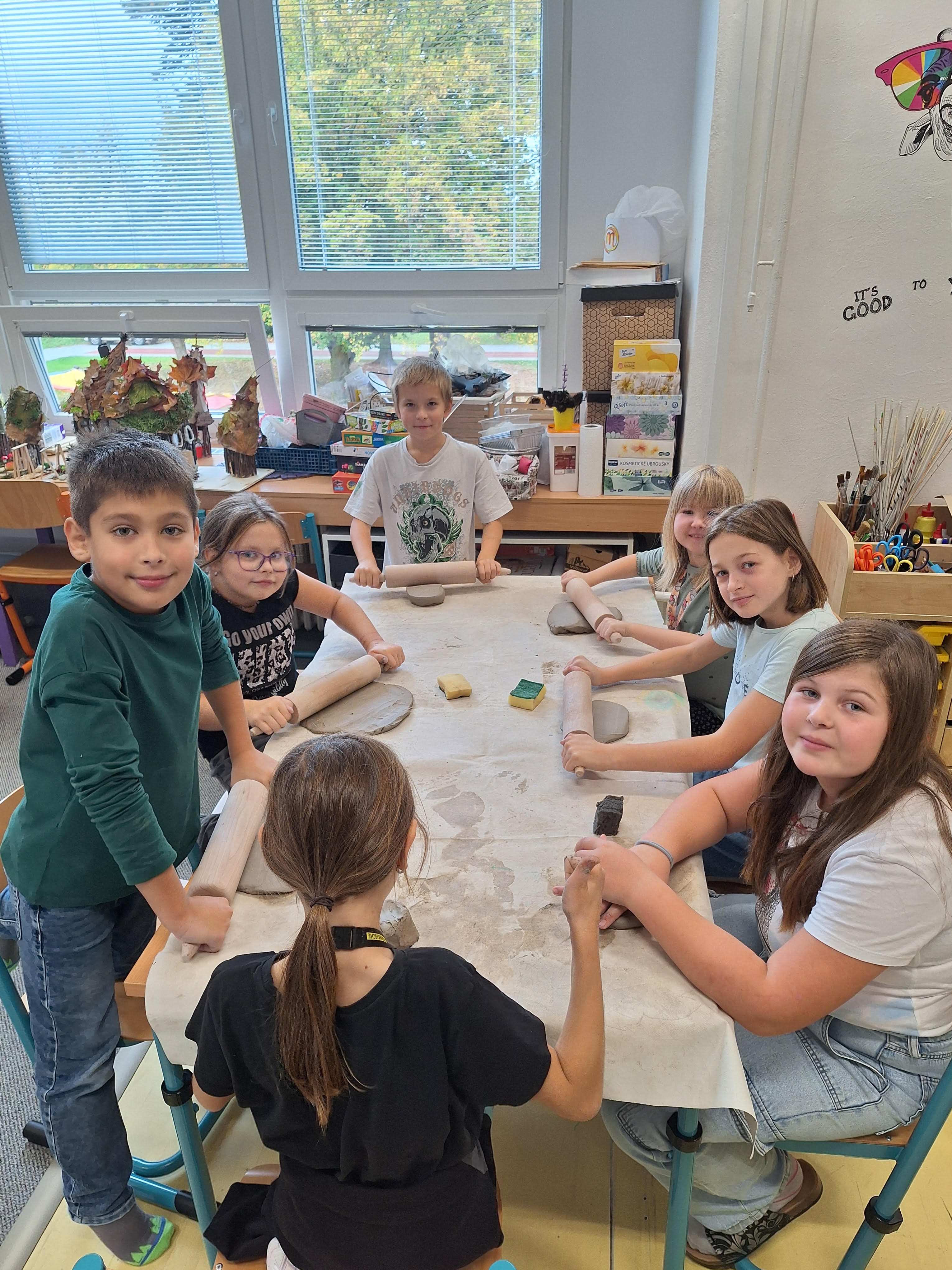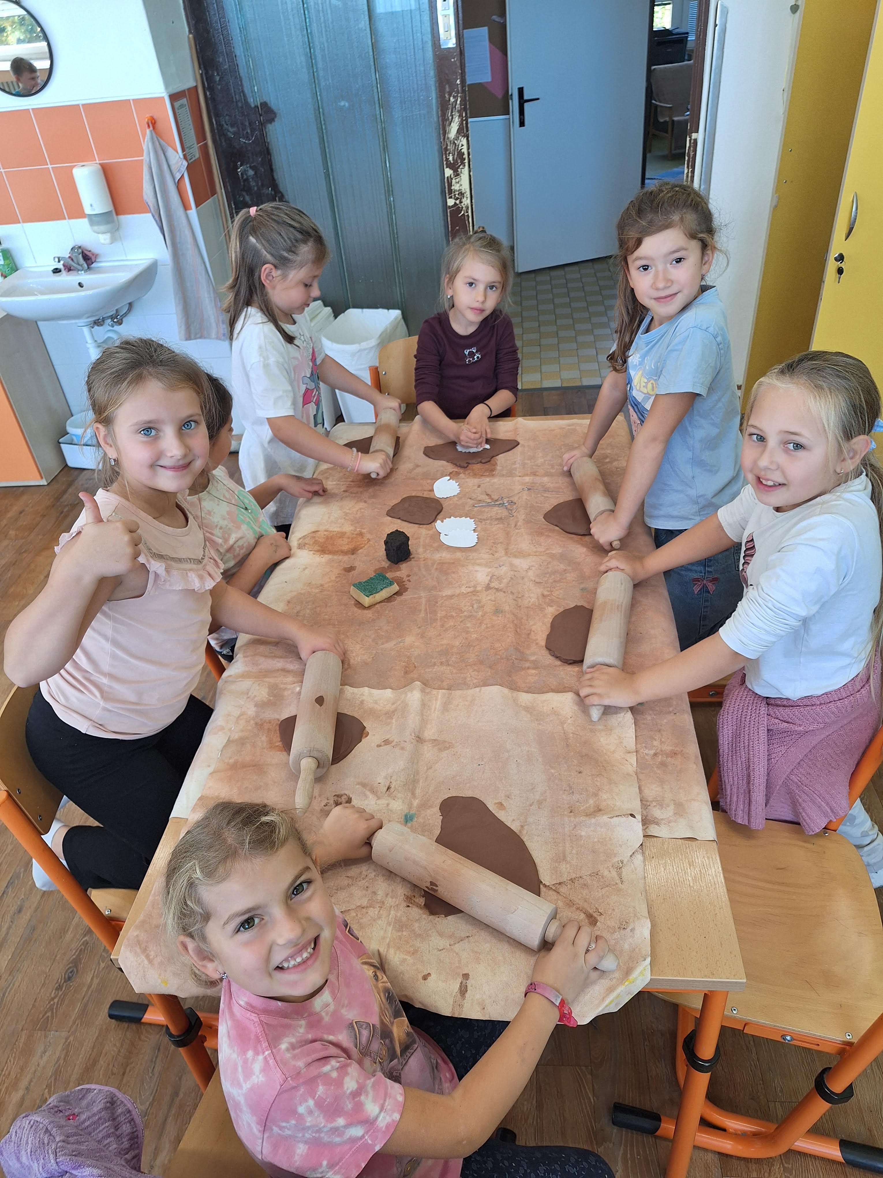- práce a tvoření z keramické hlíny MA, ze které pak vznikli roztomilí ježci, usměvavá sluníčka nebo svícny ve tvaru listů, které si po vypálení v keramické peci mohly děti odnést a použít jako originální dekoraci do svých pokojíčků. Metoda práce - válení z volné ruky a zaválení šablony