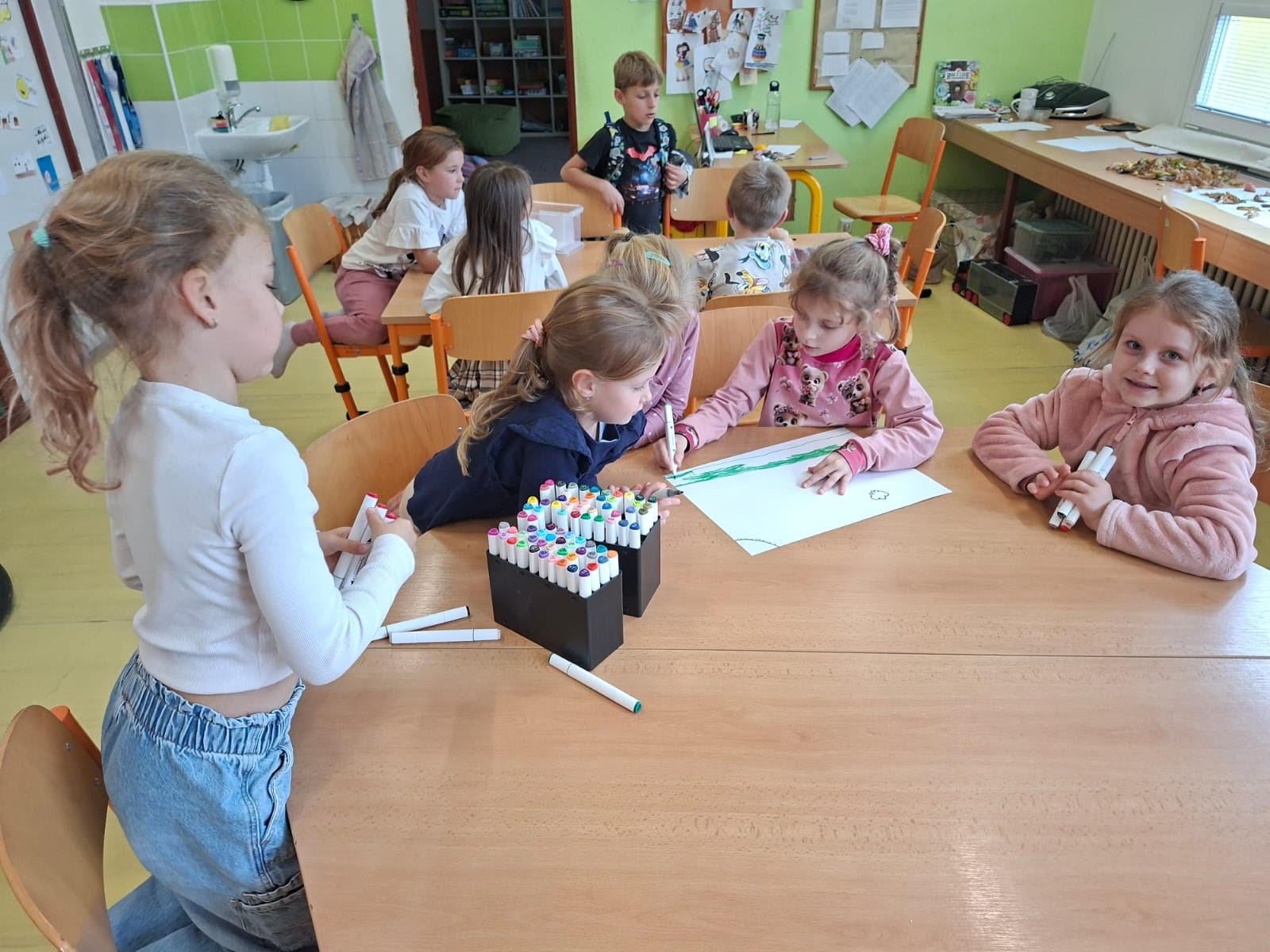 V průběhu jednoho říjnového týdne jsme se s kolegyněmi rozhodly dát dětem možnost ochutnat pestrost aktivit v jednotlivých odděleních a zažít či zakusit tak jedinečnost každé z nás. A jak to tedy vypadalo ve skutečnosti? Celý kolektiv dětí se od pondělí do středy stěhoval hned po vyučování postupně do všech sousedních oddělení, kde už na něj čekala p. vychovatelka s připravenou nabídkou různorodých aktivit.