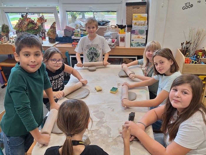 - práce a tvoření z keramické hlíny MA, ze které pak vznikli roztomilí ježci, usměvavá sluníčka nebo svícny ve tvaru listů, které si po vypálení v keramické peci mohly děti odnést a použít jako originální dekoraci do svých pokojíčků. Metoda práce - válení z volné ruky a zaválení šablony