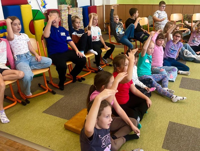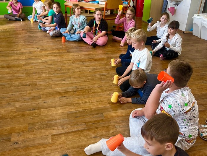 - čas strávený na vlnách hudby - hudba nás provázela v mnoha podobách - ať už živá, reprodukovaná, doprovázená hrou na kytaru, klavír nebo Orffovy nástroje. Pro zpestření jsme si vyzkoušeli i rytmický pohyb s kelímky v rytmu známého „Cup songu“ a nechyběly ani taneční prvky, které nám přinesly spoustu zábavy a radosti z pohybu.