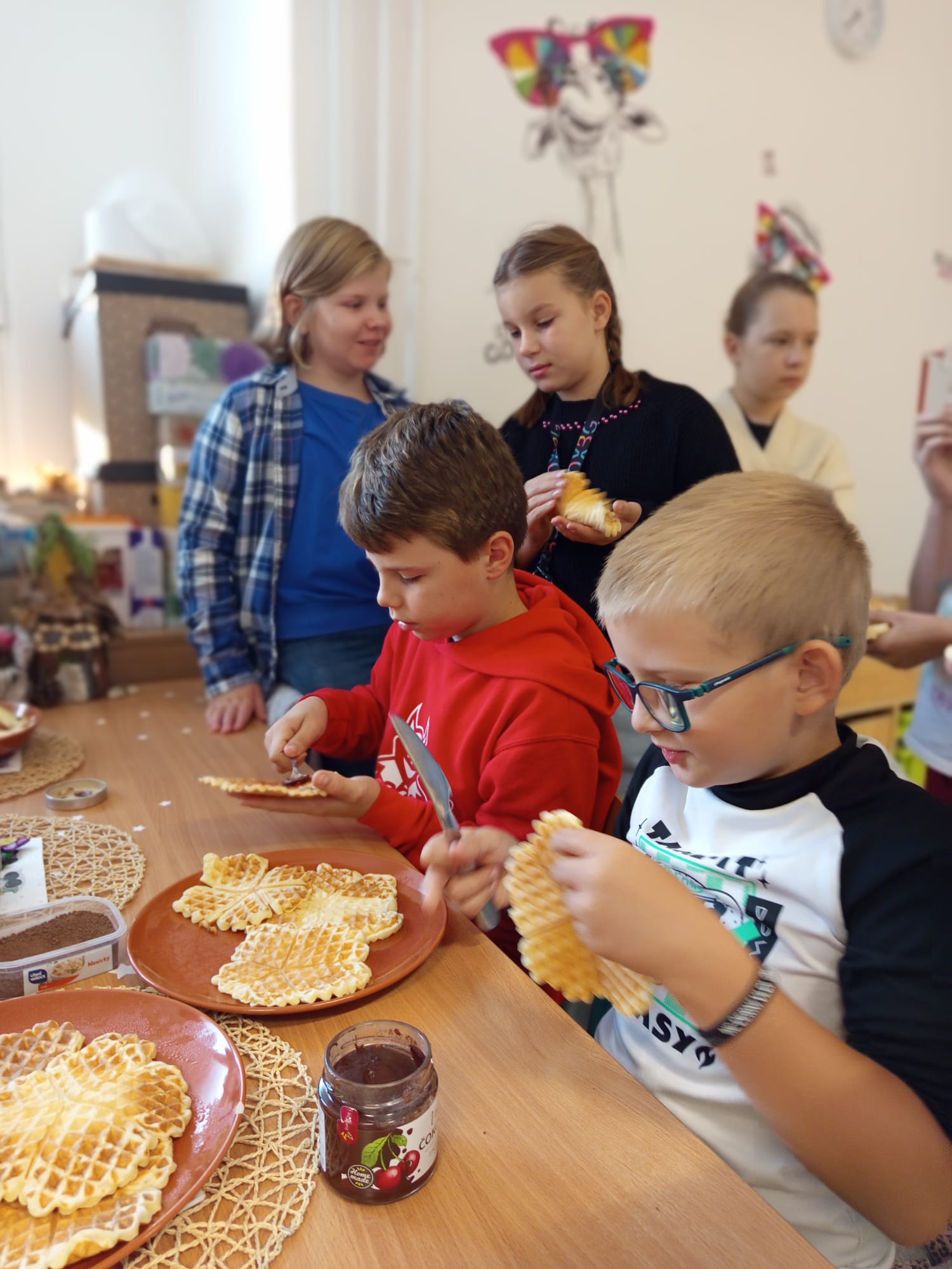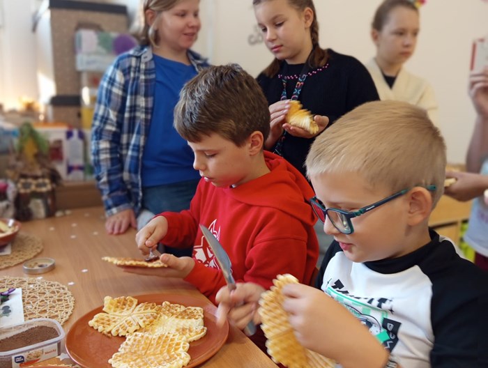 V naší družině č. 4 se snažíme začít den nejen s úsměvem, ale i s plným bříškem. Pravidelné páteční snídaně se už staly milou tradicí, na kterou se děti vždy těší. Tentokrát jsme ale zažili něco opravdu speciálního - ke spolupráci se přidala jedna nadšená maminka, která nám ukázala, jak se dělají pravé domácí wafle.