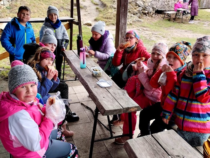 Další dny nás čekala turistická vycházka na Kletnou a ve středu jsme dobyli i zříceninu hradu Starý Jičín. Výlet vlakem jsme si udělali ve čtvrtek - do Zbrašovských aragonitových jeskyní v Hranicích na Moravě, kopu docela emotivních zážitků budeme mít ještě dlouho v paměti. Závěrečný den jsme si pak užili kreativně, něco si vyrobili a dokonce maličko nahlédli i pod pokličku do naší školní kuchyně.