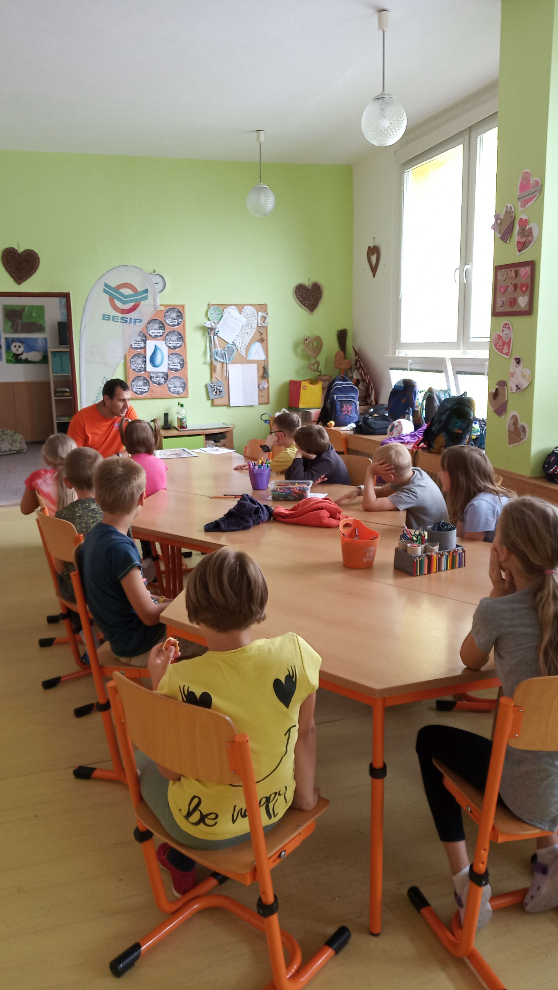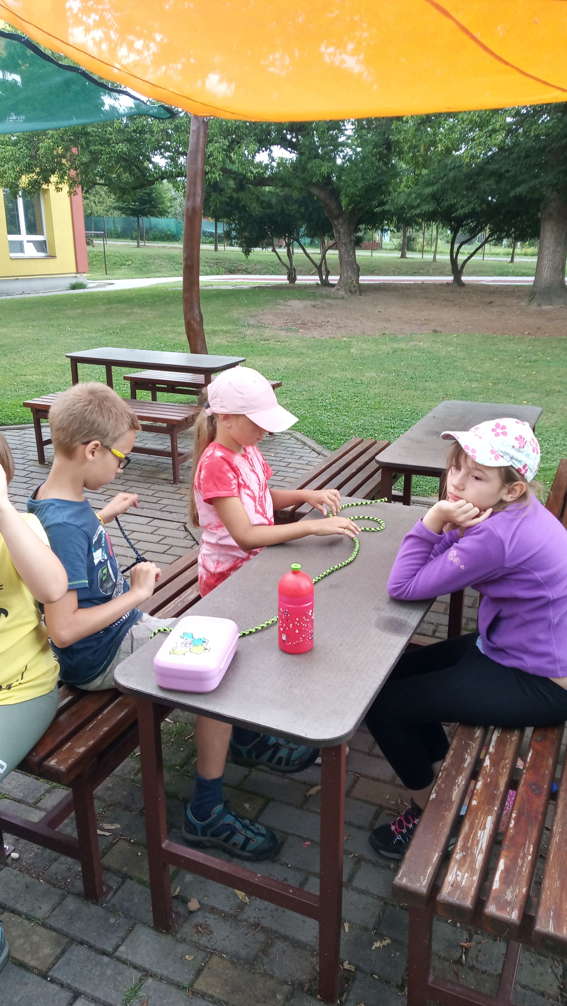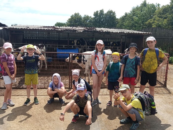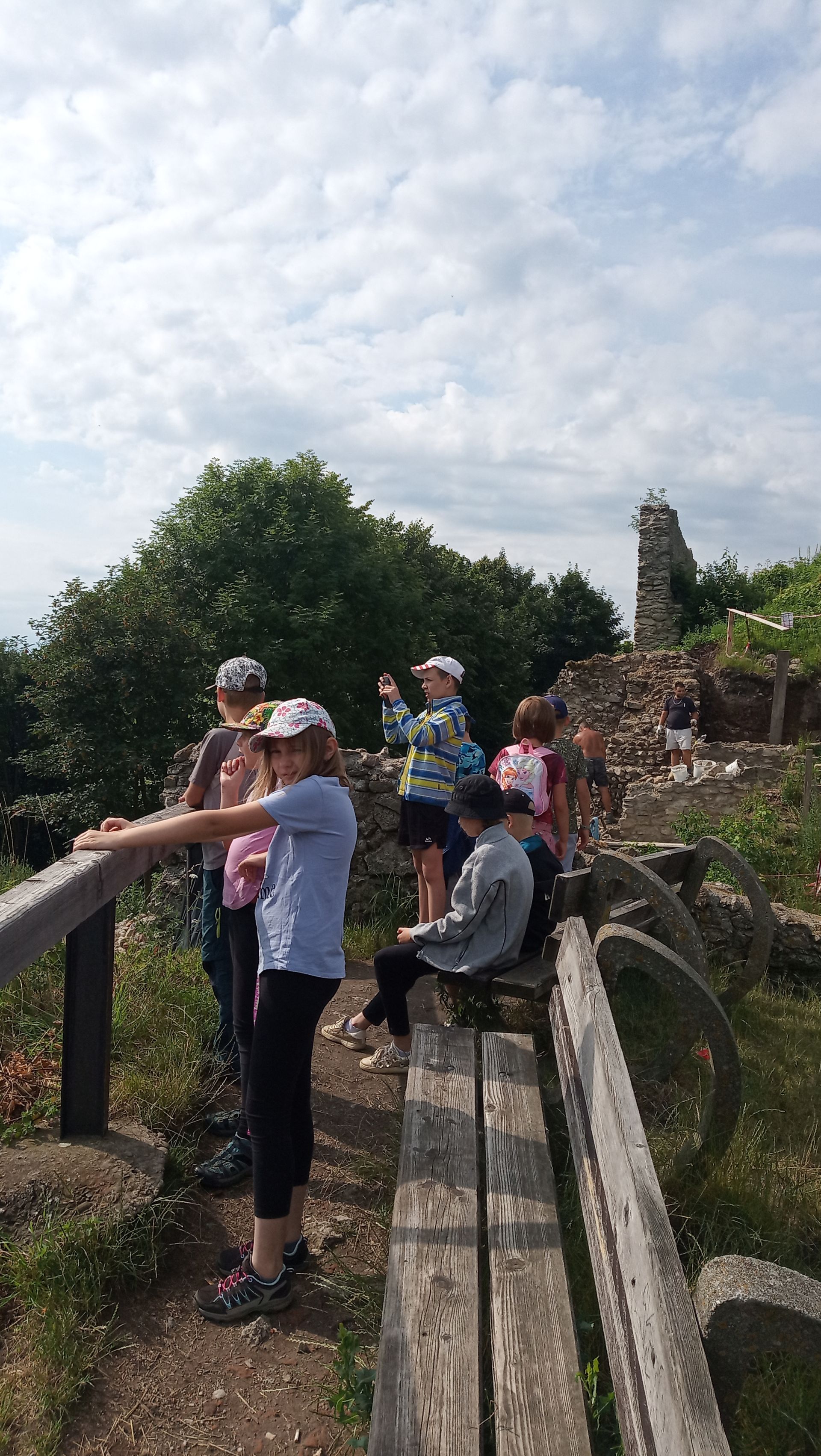 V pondělí jsme navštívili místní kravín, kde nám dělala průvodce paní zootechnička a ukázala nám telátka a vysvětlila kolik práce kolem kraviček a telátek je. Ve čtvrtek jsme se vydali autobusem na hrad Starý Jičín. Počasí nám přálo, tak jsme si výlet a zmrzlinu v Novém Jičíně užili. Poslední den v pátek si za námi udělal výlet pán Blahut z BESIPU. Připomněl nám zásady bezpečné jízdy na kole, chůze po chodníku, ale i bezpečnost v autě. Celý týden děti hrály spousty her a soutěží a za ty byly na konci tábora odměněné.
