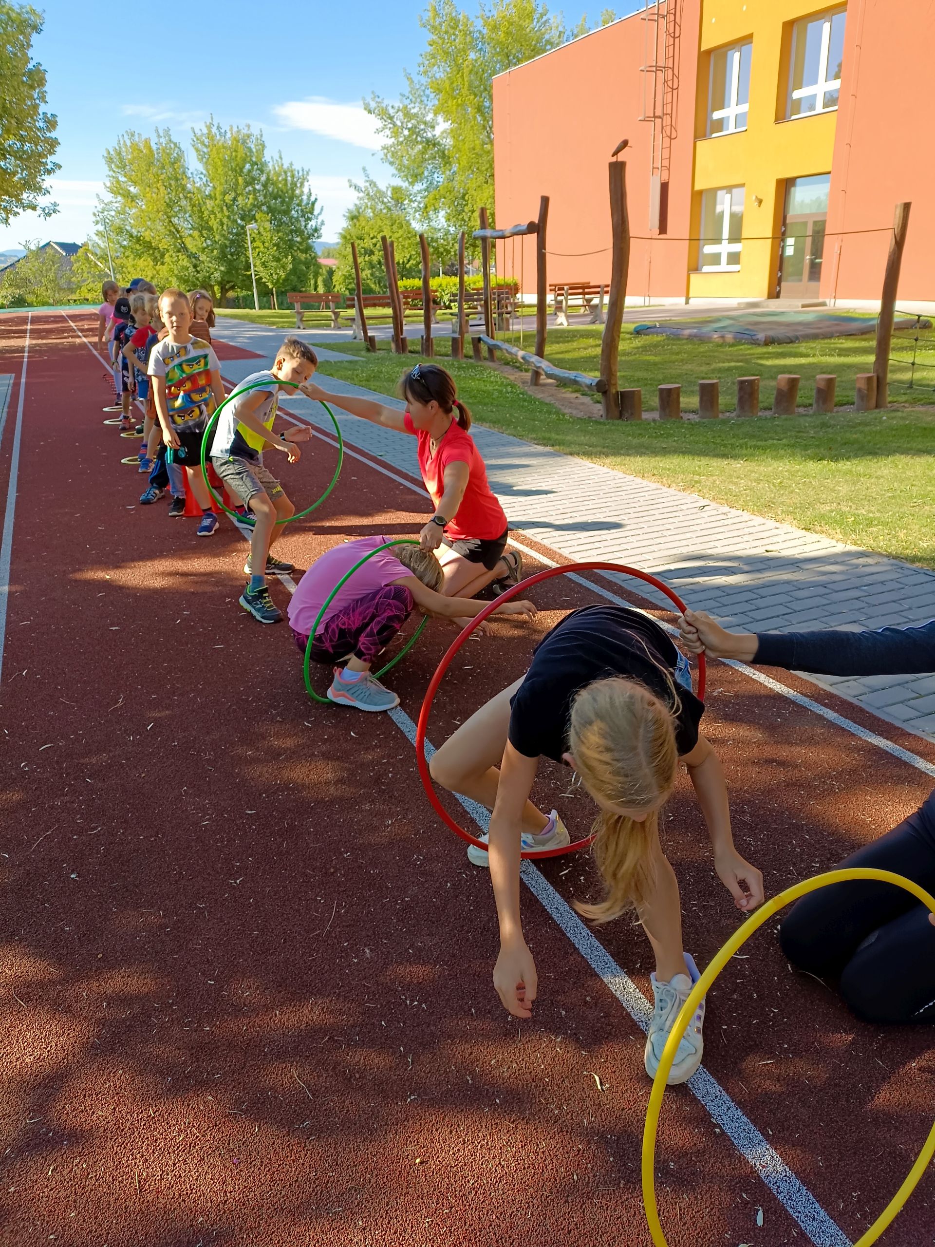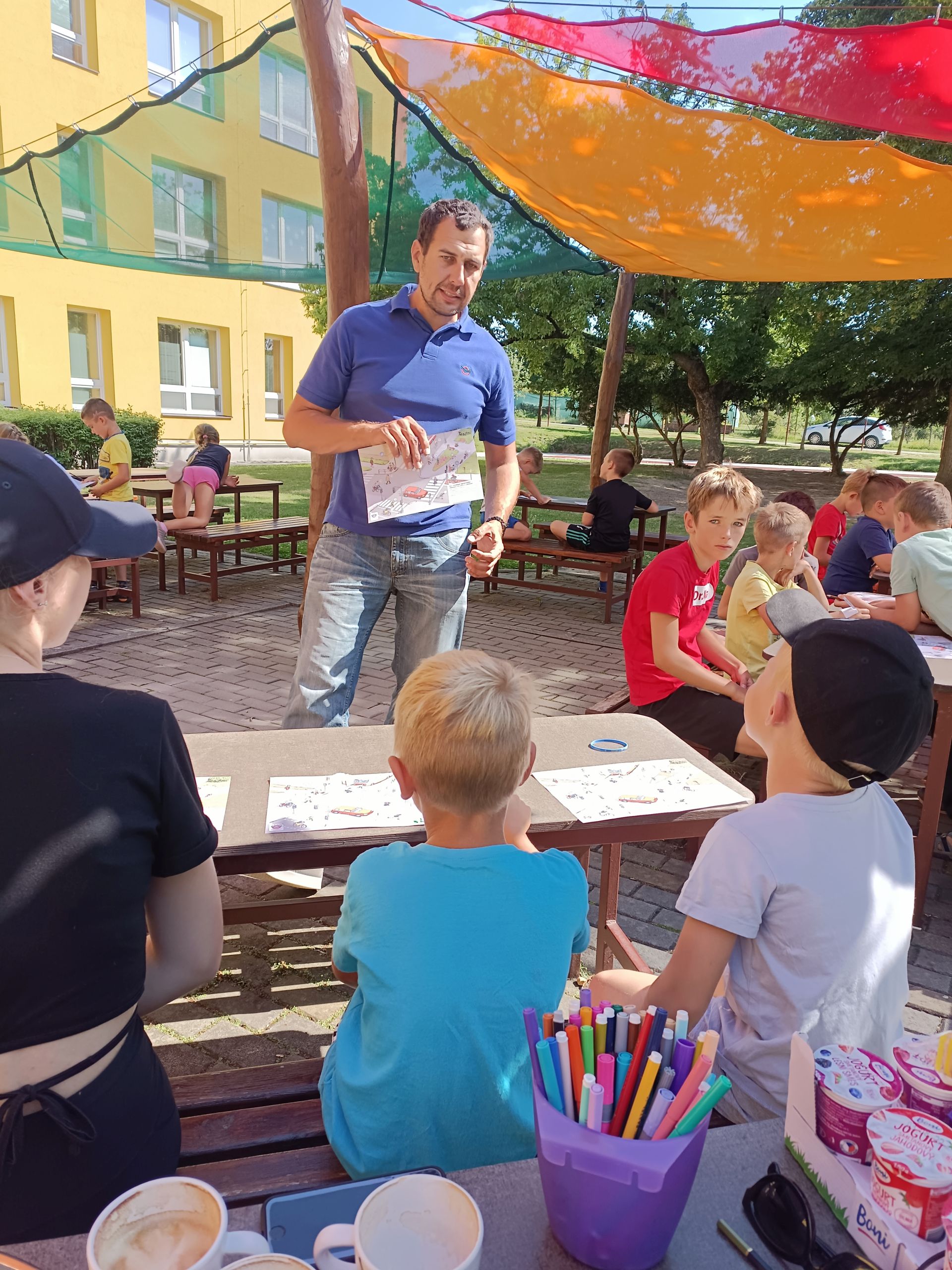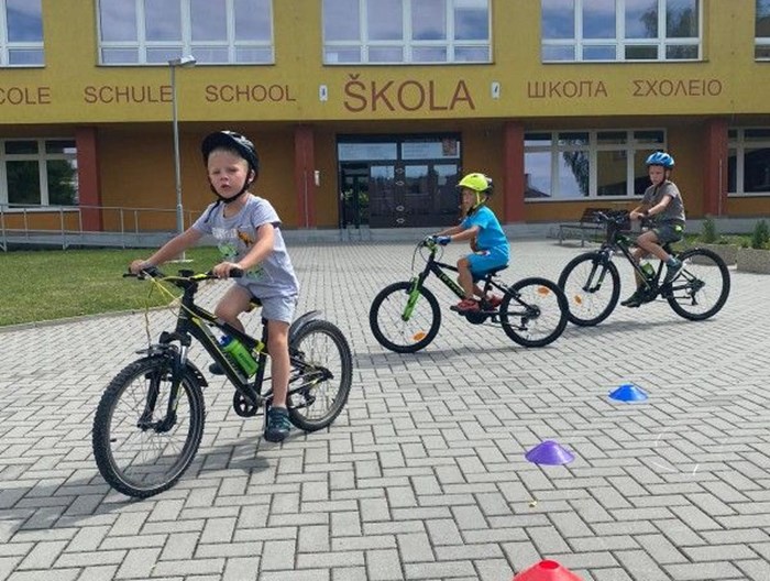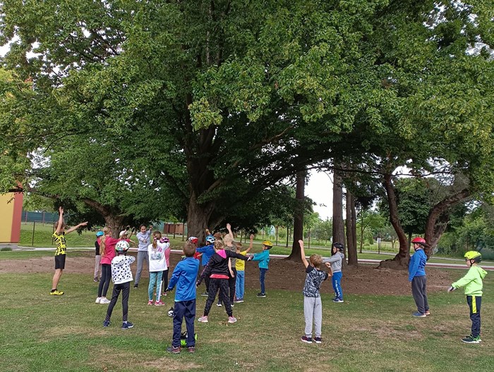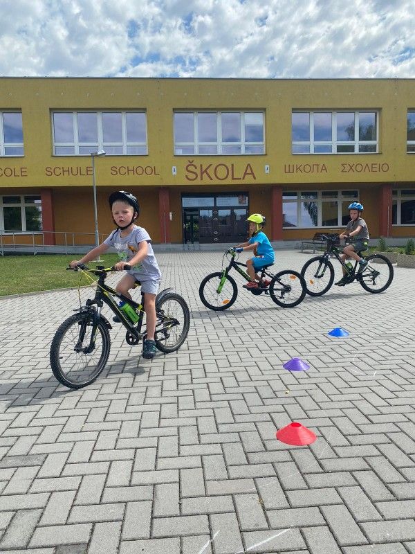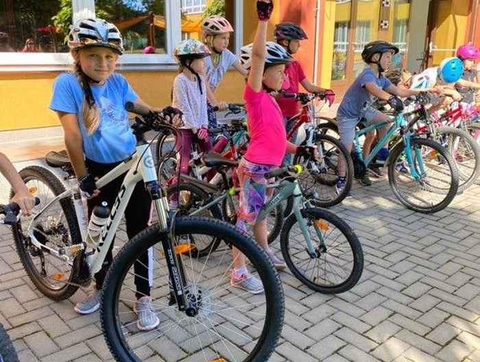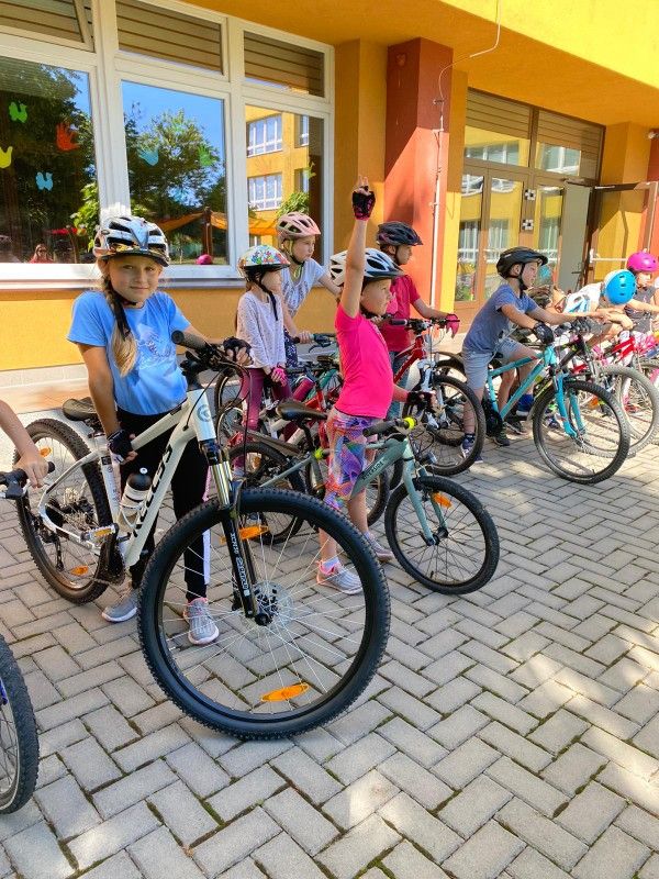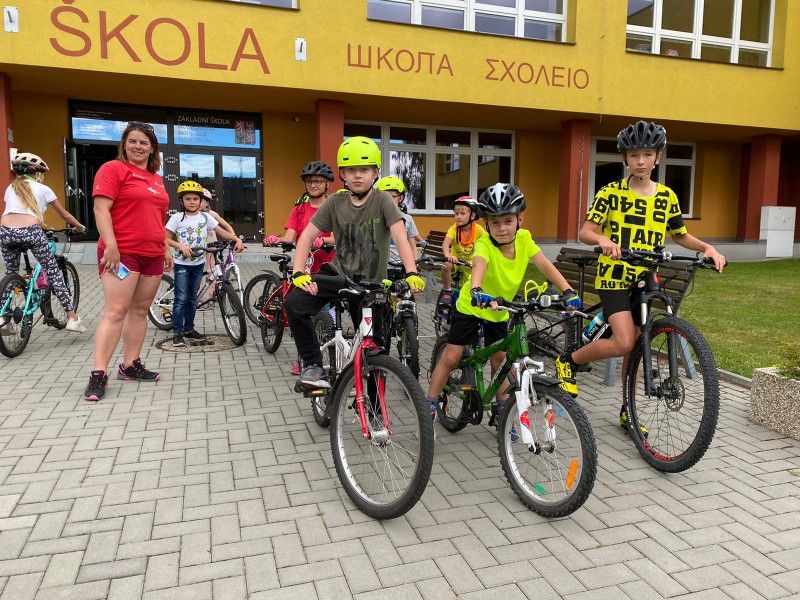 Cílem tohoto tábora byla zábava, dovednosti na kole a jízda křížem krážem přírodou. Děti byly velmi šikovné, zvládaly jízdu zručnosti v podobě okruhu kolem naší školy. Zkouška dovednosti zahrnovala stabilitu jízdy na kole, prokličkování kužely, zastavení na čáře STOP a projetí osmičky s přesností. Průpravou byla hra "Zastavení na písknutí", jejím cílem bylo udržet rovnováhu na pedálech. Další část zkoušky byla jízda na přehradu Kletné. Po splnění zkoušky mohly děti vyrazit na výlet do Jeseníku nad Odrou. Počasí nám přálo. Výlet si užilo všech 24 dětí s úsměvem. Za týden měly v nohách 70 km na kole. Klobouk dolů a budeme se těšit na další pokračování.