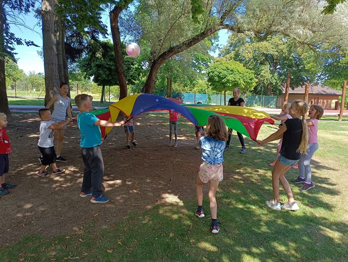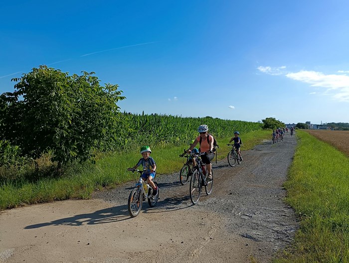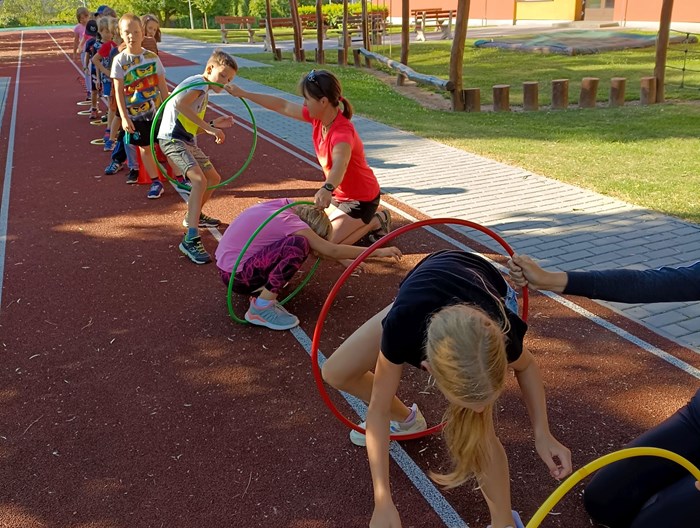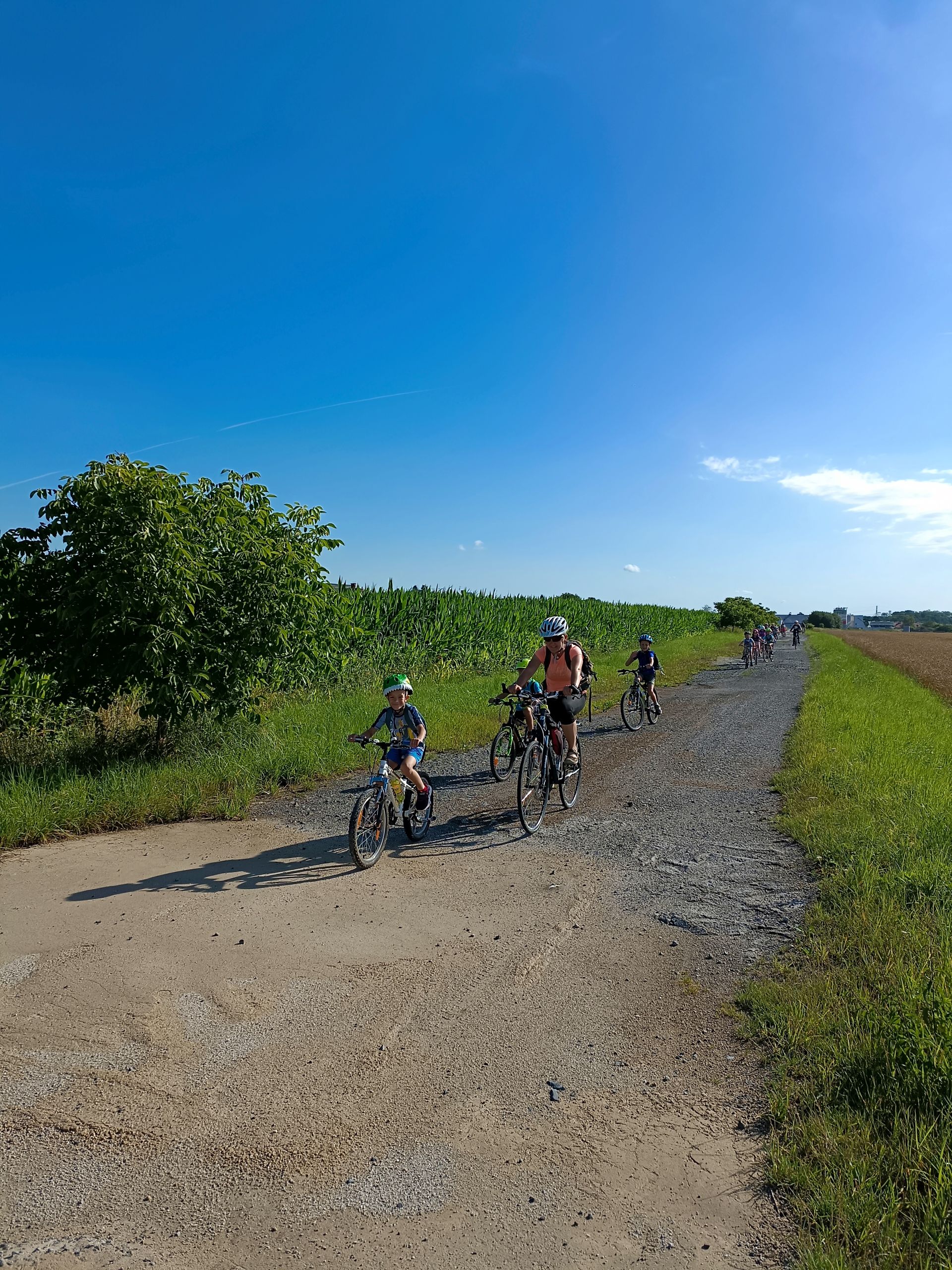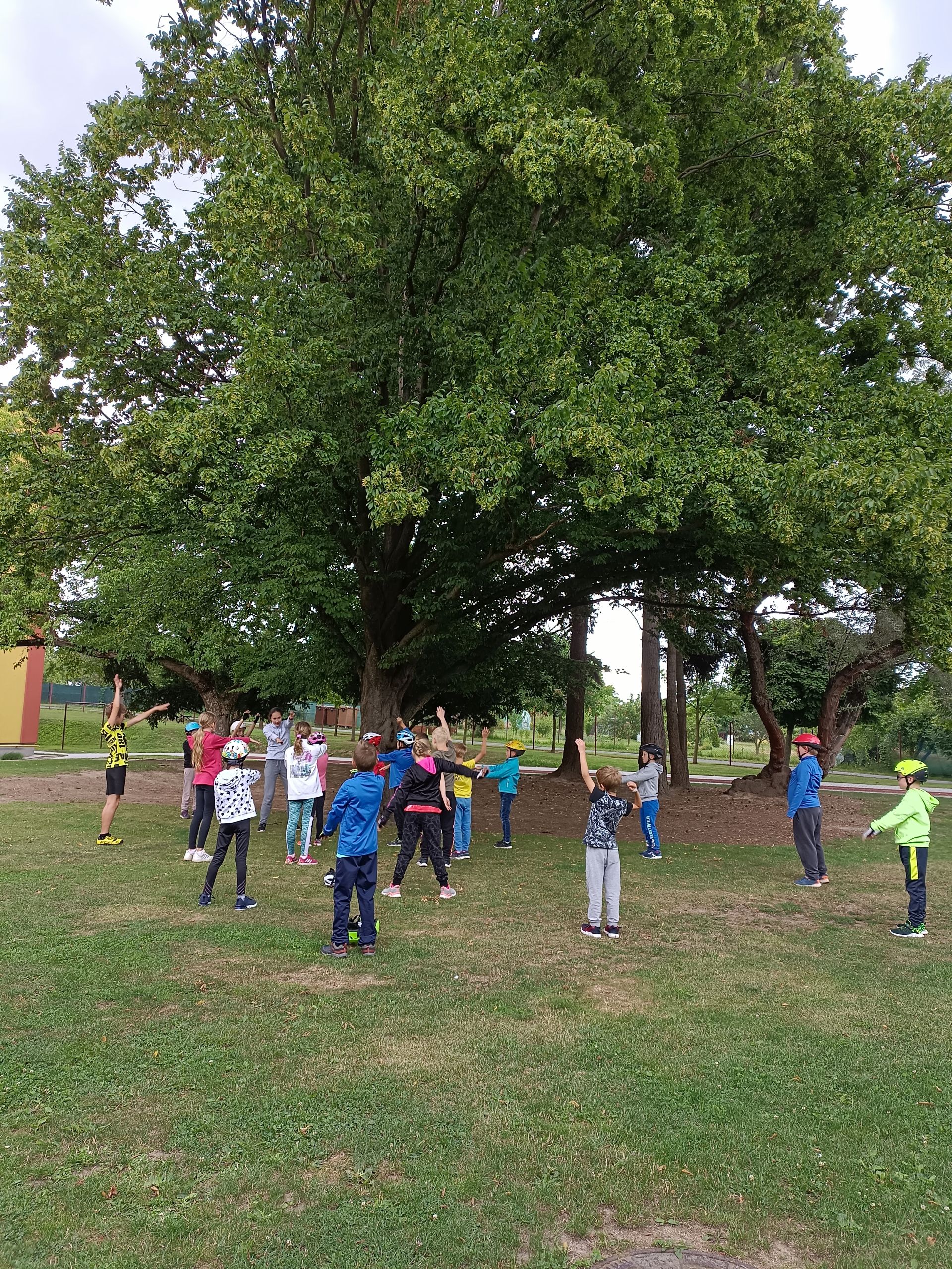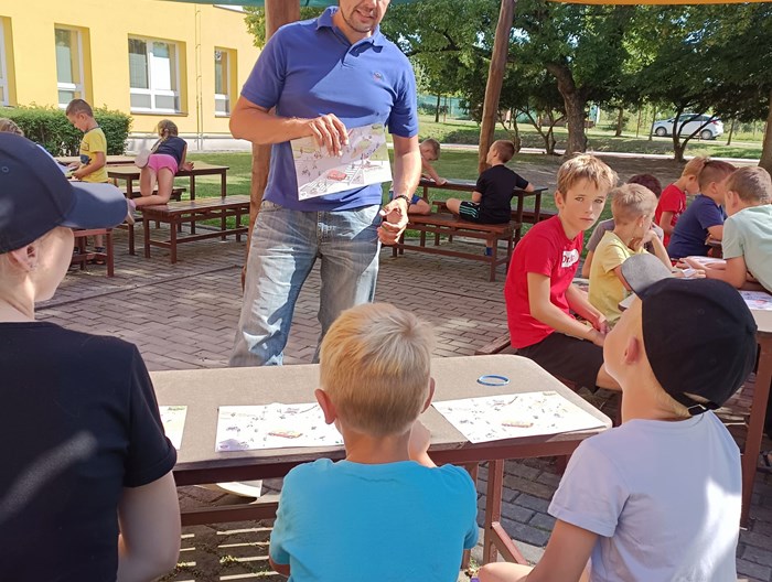 Cílem tohoto tábora byla zábava, dovednosti na kole a jízda křížem krážem přírodou. Děti byly velmi šikovné, zvládaly jízdu zručnosti v podobě okruhu kolem naší školy. Zkouška dovednosti zahrnovala stabilitu jízdy na kole, prokličkování kužely, zastavení na čáře STOP a projetí osmičky s přesností. Průpravou byla hra "Zastavení na písknutí", jejím cílem bylo udržet rovnováhu na pedálech. Další část zkoušky byla jízda na přehradu Kletné. Po splnění zkoušky mohly děti vyrazit na výlet do Jeseníku nad Odrou. Počasí nám přálo. Výlet si užilo všech 24 dětí s úsměvem. Za týden měly v nohách 70 km na kole. Klobouk dolů a budeme se těšit na další pokračování.